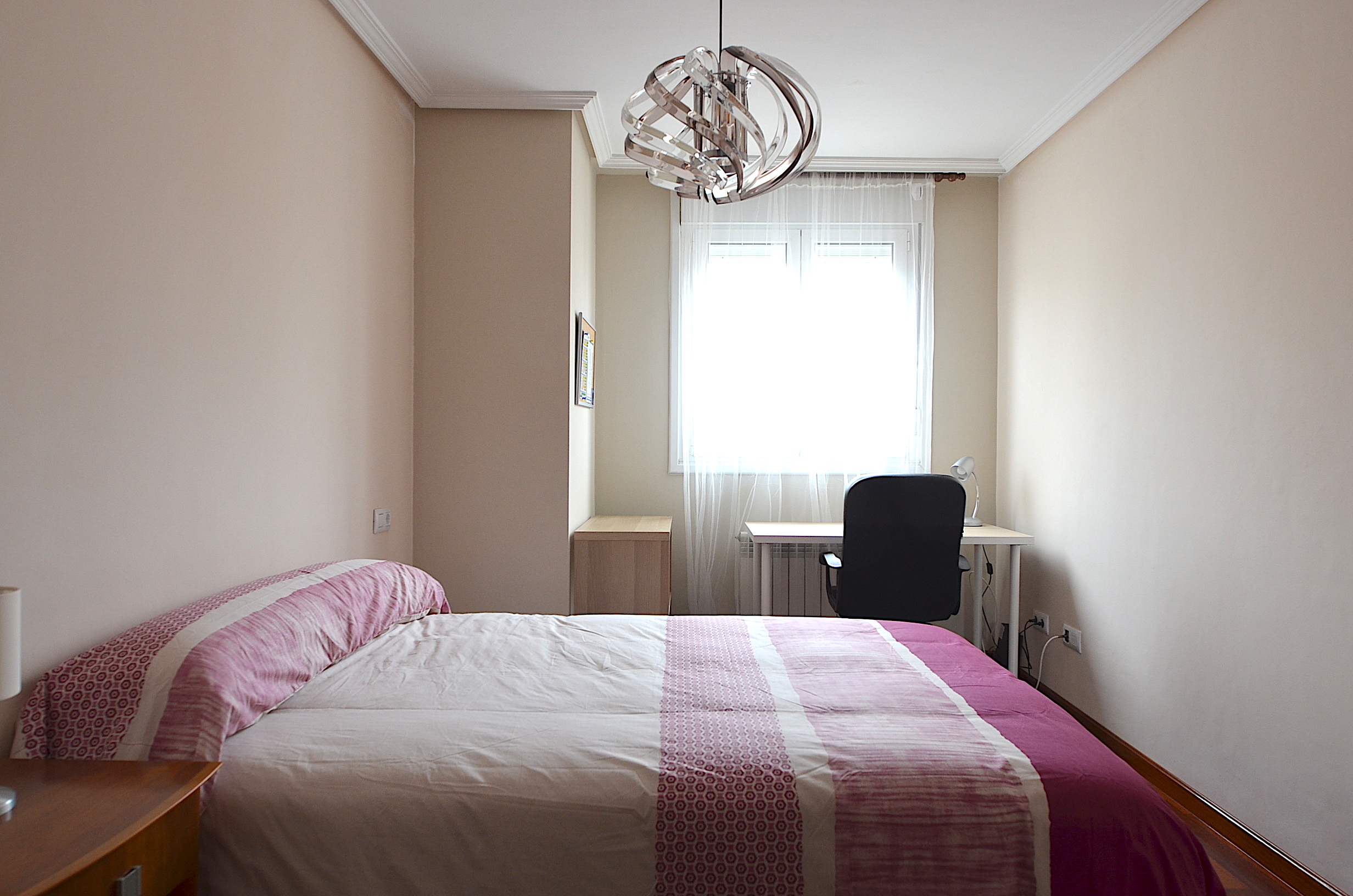 Las dos habitaciones son exteriores, y especialmente silenciosas. La cocina está totalmente equipada. Ambas habitaciones disponen de zona de estudio con escritorio, silla ergonómica, corcho, flexo, etc…