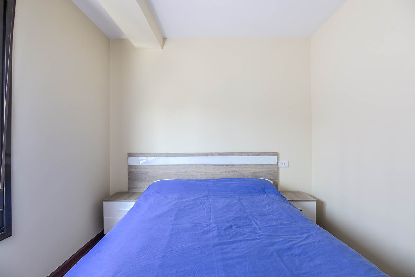 Dispone de un salón con cocina americana de 25m2, donde se situa la zona de estudio, con escritorio de 120 x 75 y silla ergonómica. La habitación tiene un amplio armario con cama doble. Tiene un baño completo con bañera.
