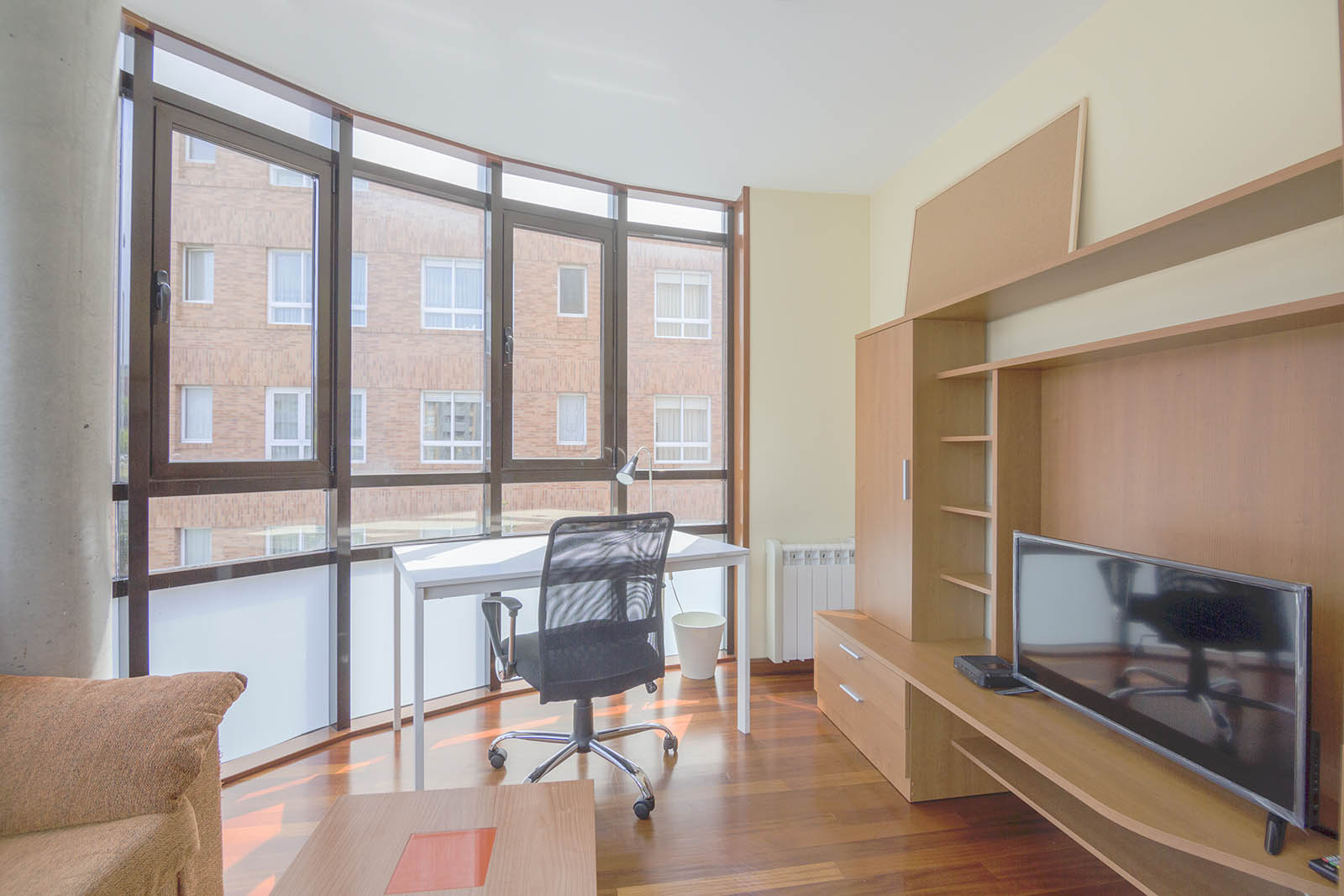 Coqueto apartamento que destaca por su luminosidad. Tiene un gran ventanal en el salón, perfecto para estudiar, con luz natural todo el día.