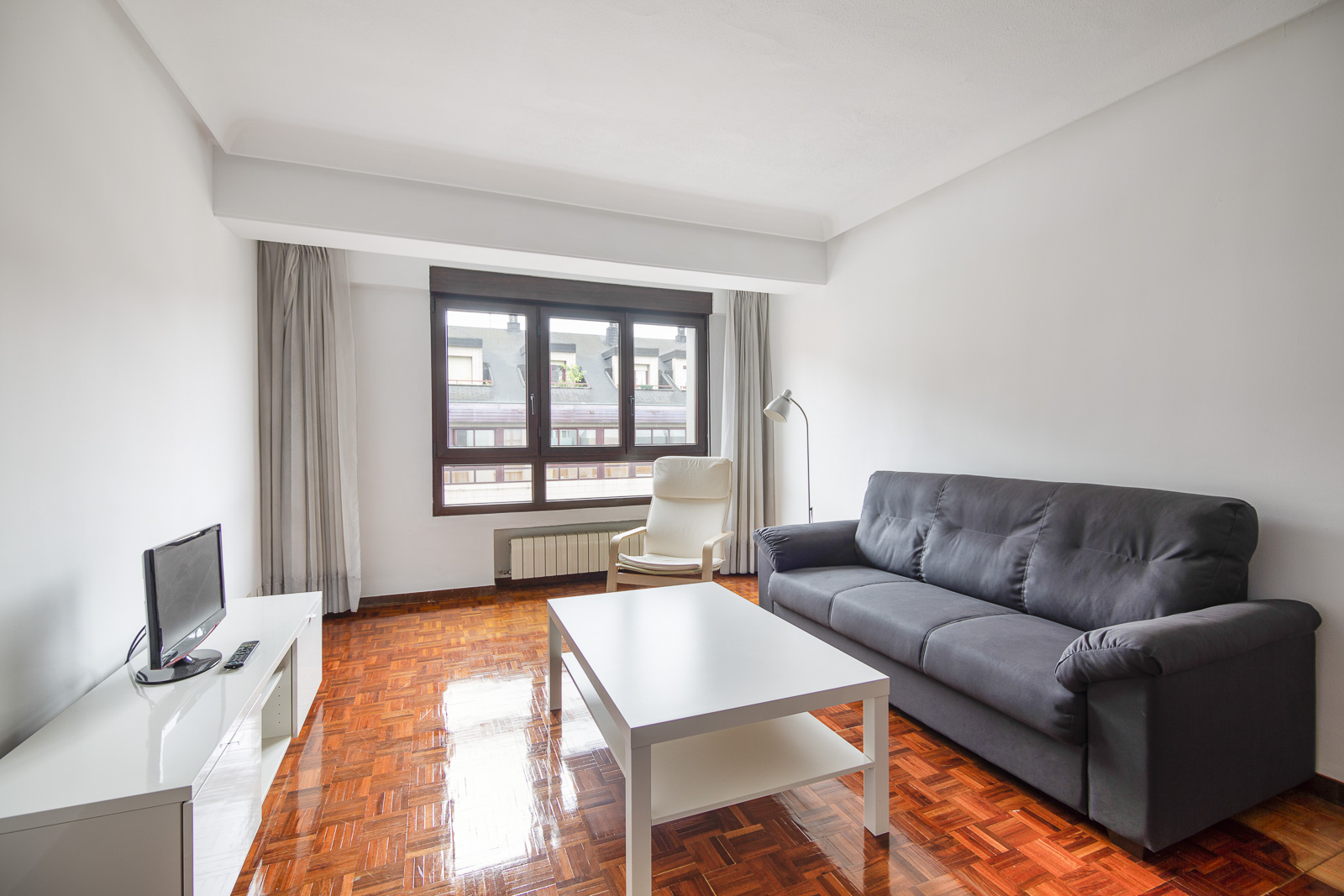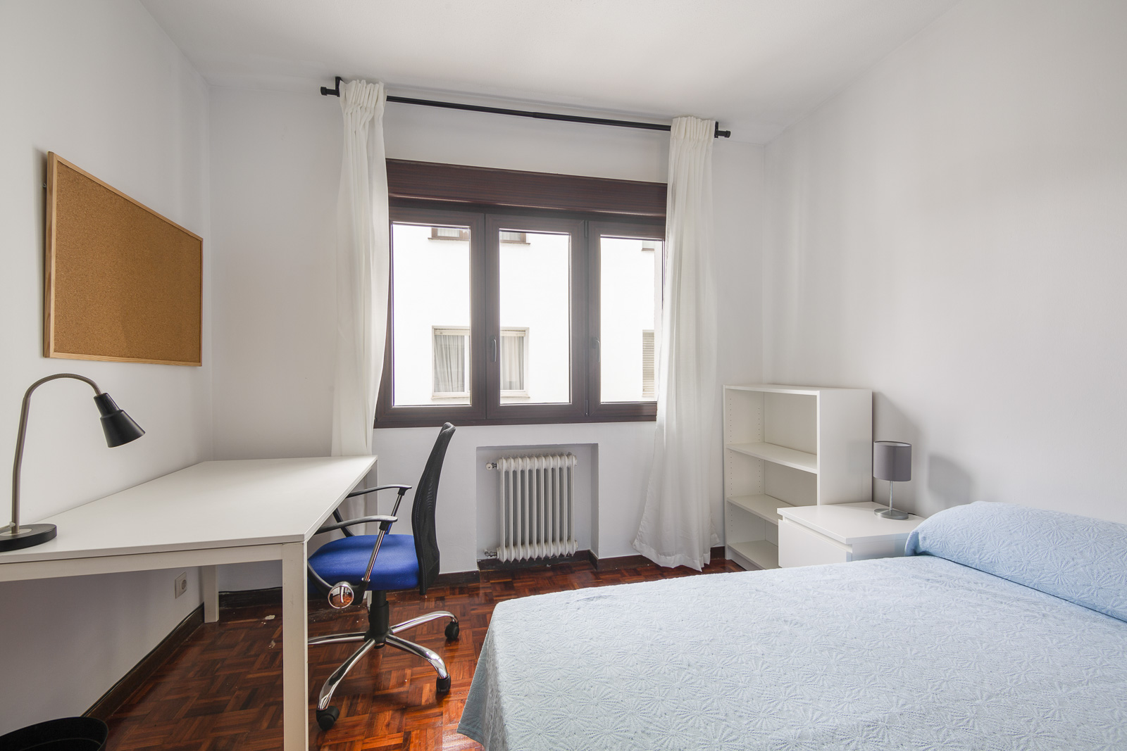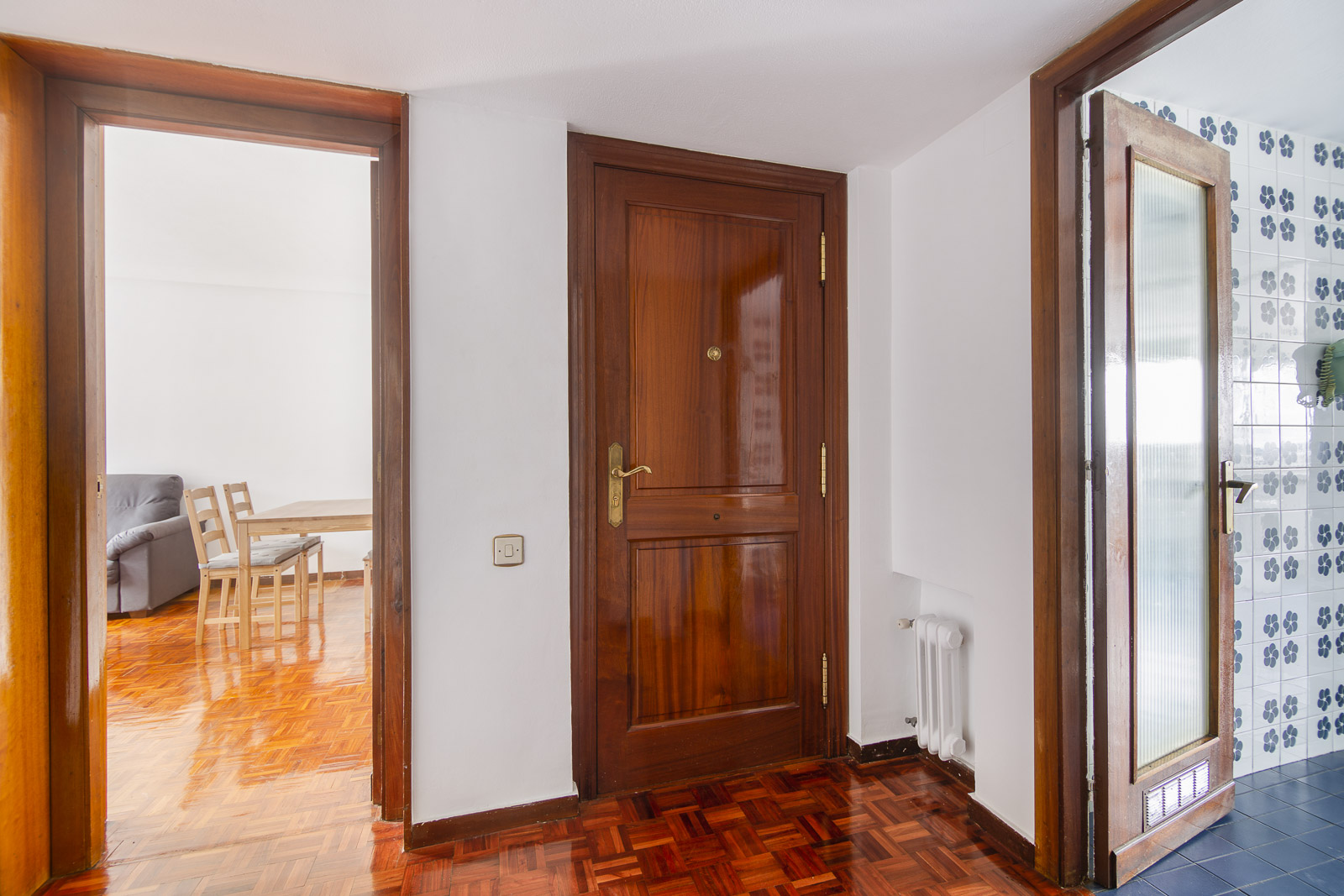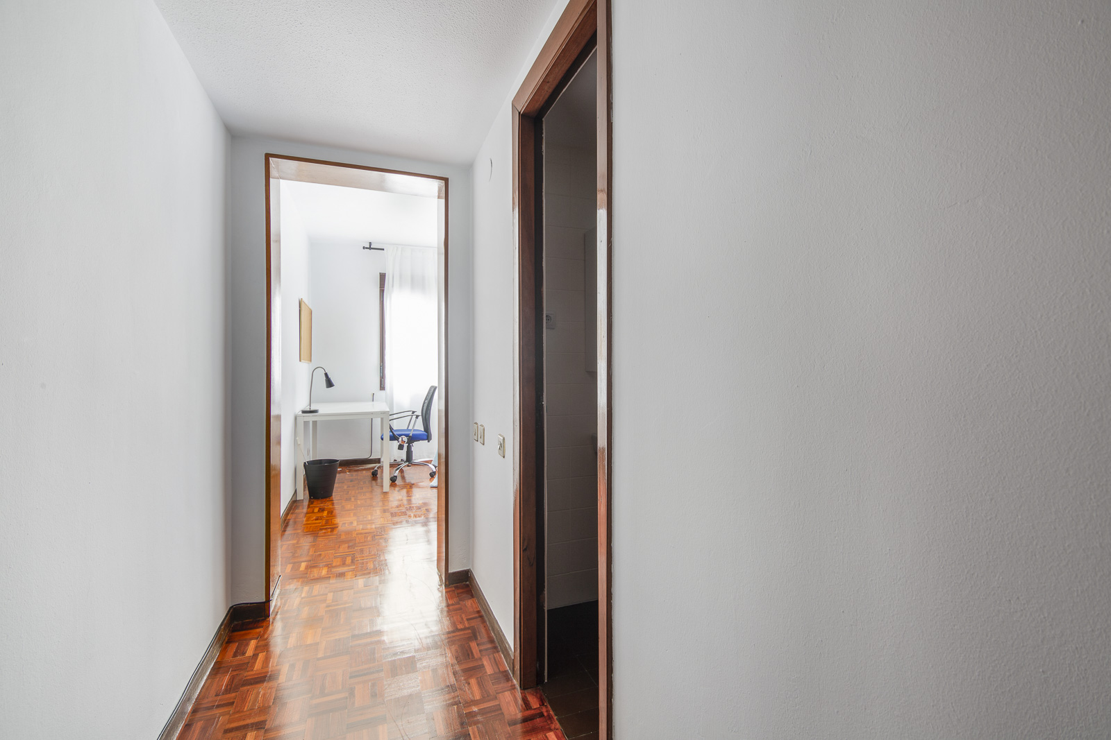 Piso recientemente renovado, muy luminoso, tres amplias habitaciones y dos cuartos de baño completos. Una de las habitaciones dispone de baño privado y otra tiene una pequeña terraza.