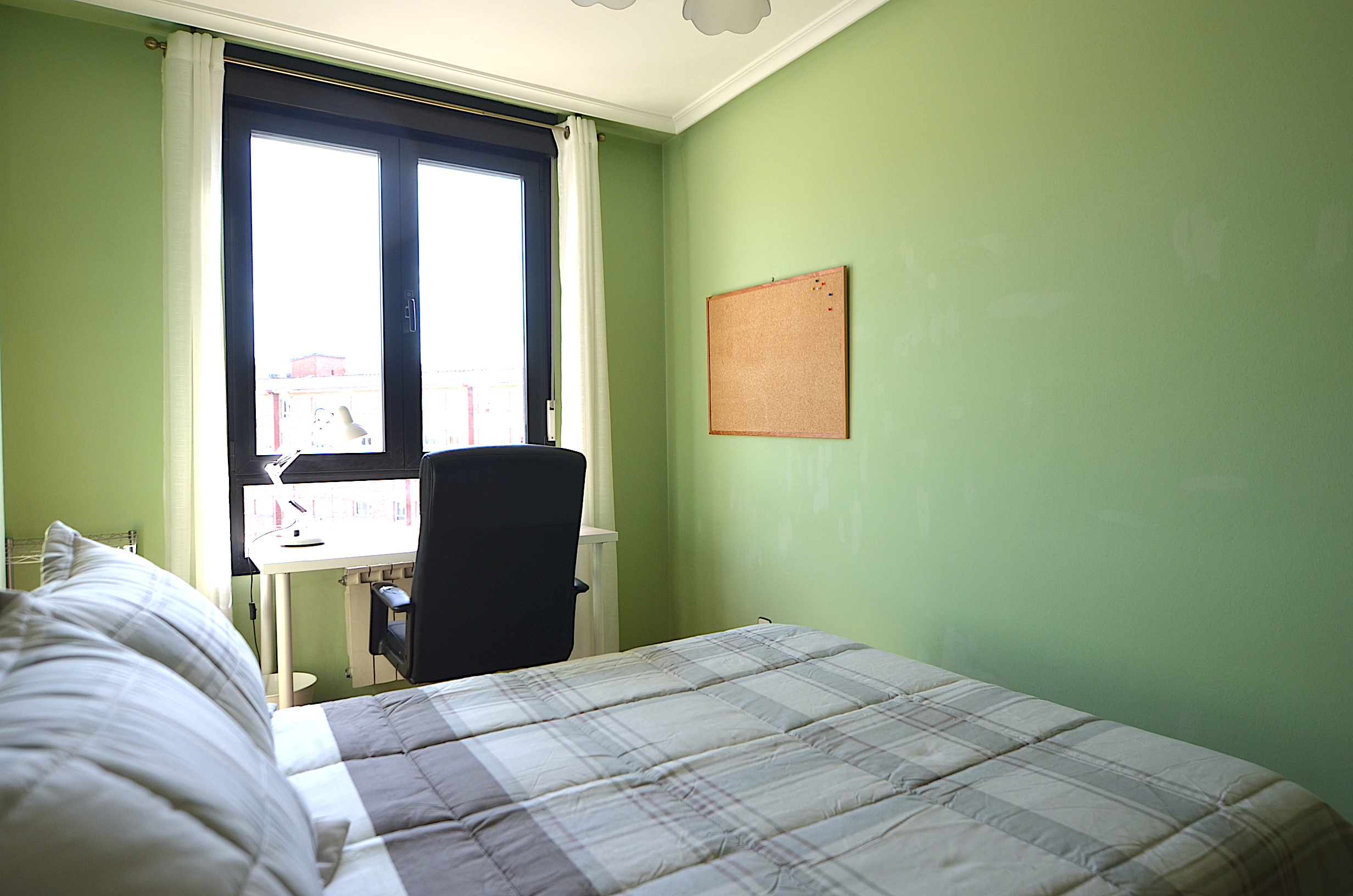 Las dos habitaciones y el salón son exteriores a la calle, con orientación sur. Disponen de mesa de estudia amplia, estanteria, silla ergonómica, corcho, flexo y papelera.