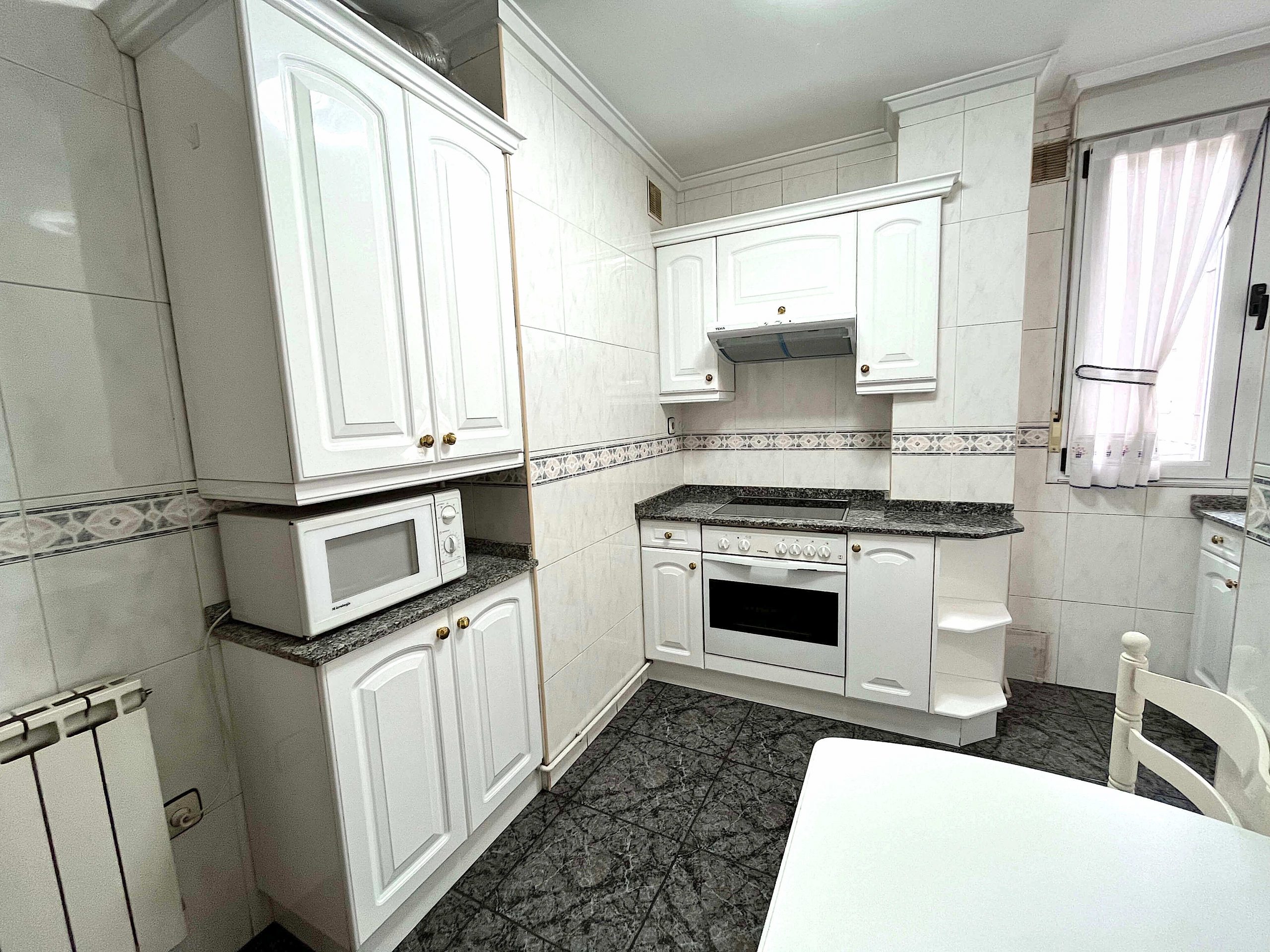 Cocina totalmente equipada con lavadora, horno, nevera, microondas, vitrocerámica, cafetera y tostador. Menaje basico de cocina.