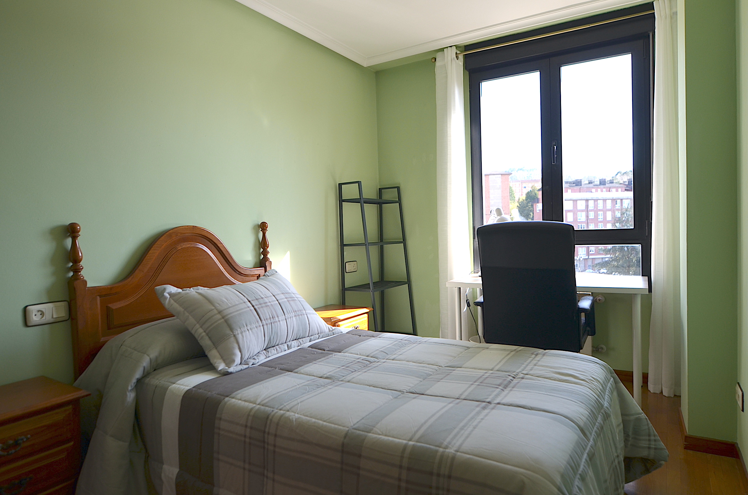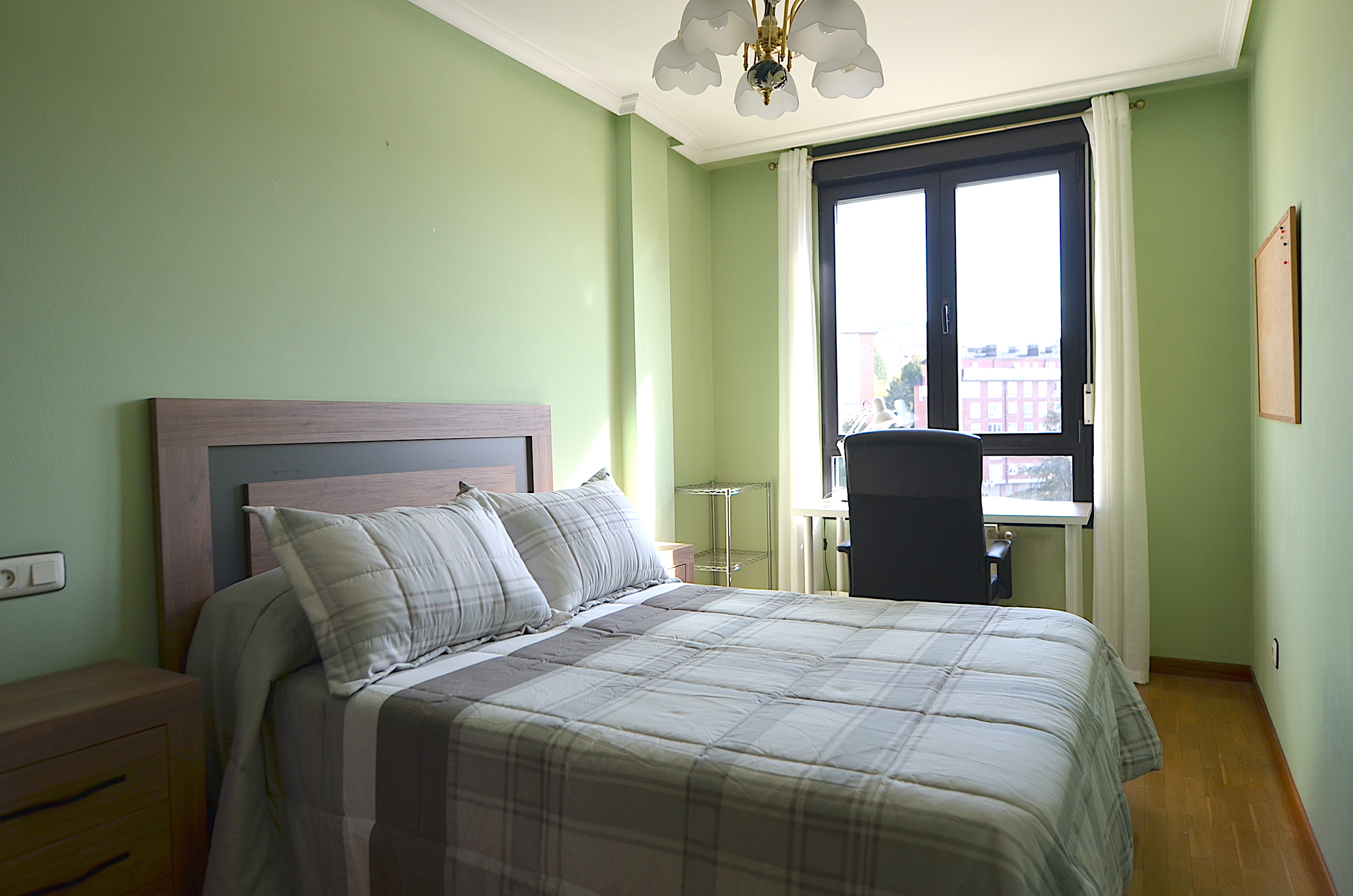 Las dos habitaciones y el salón son exteriores a la calle, con orientación sur. Disponen de mesa de estudia amplia, estanteria, silla ergonómica, corcho, flexo y papelera.