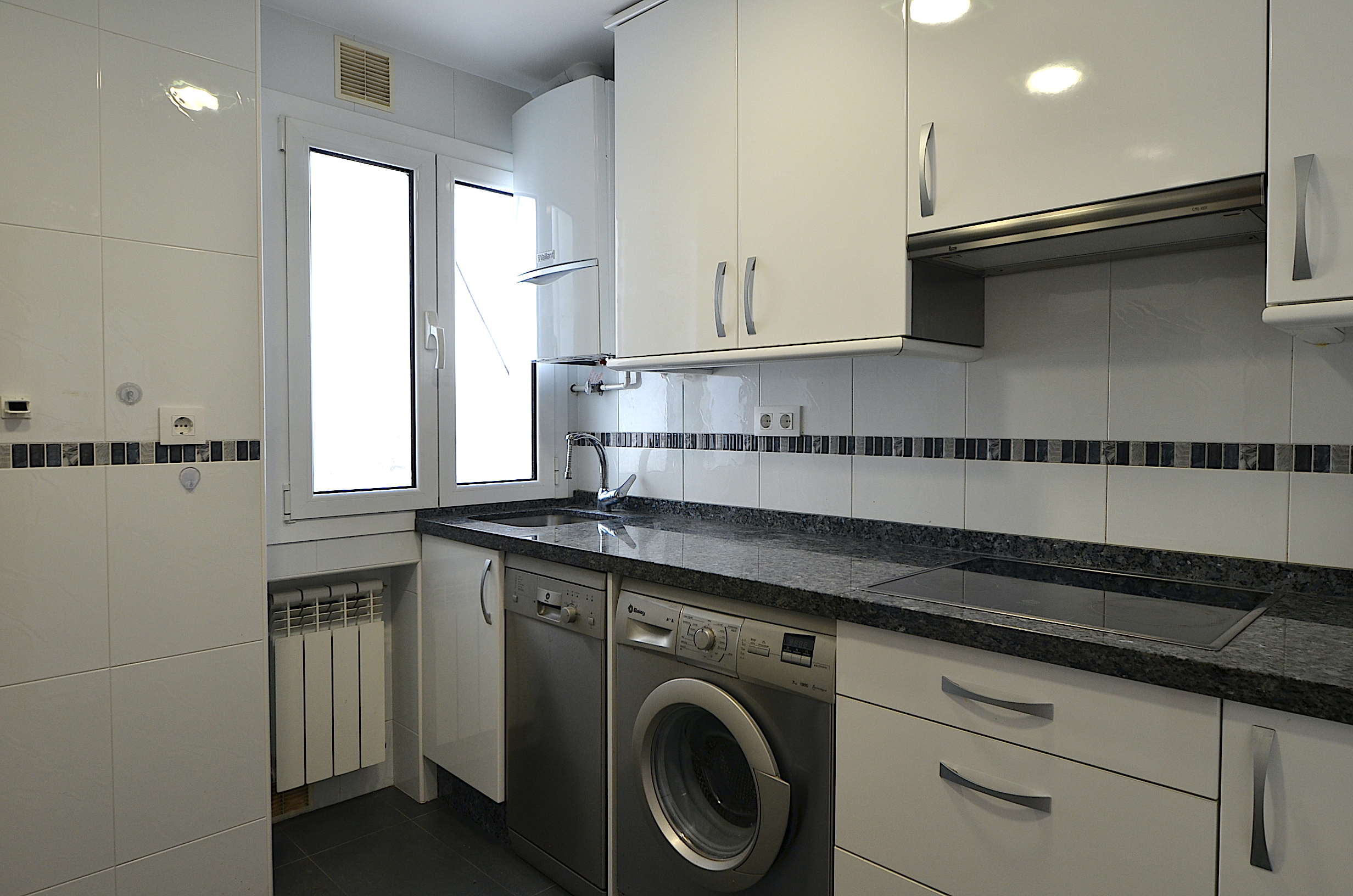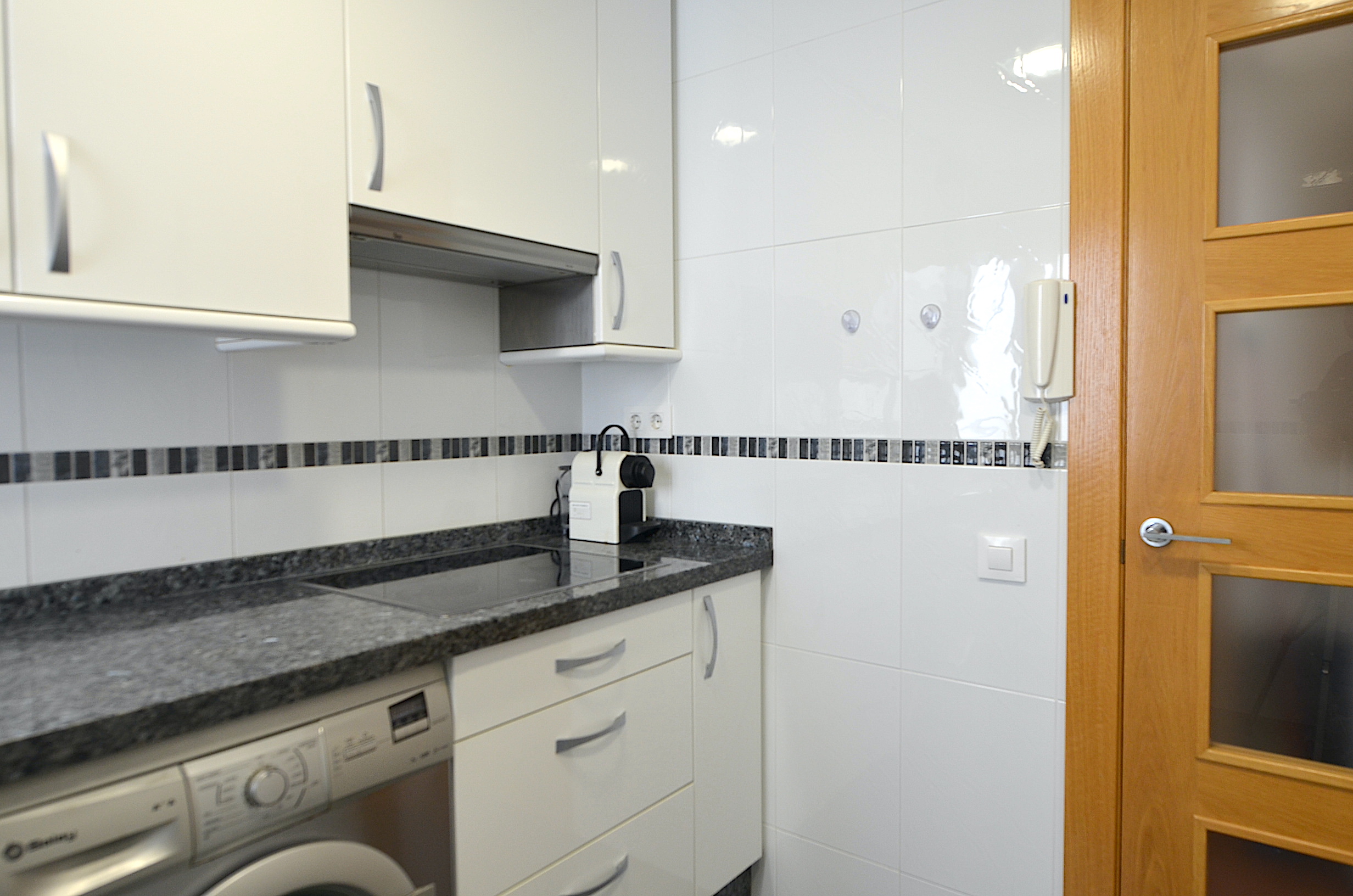 La cocina está totalmente equipada con lavadora y lavaplatos.