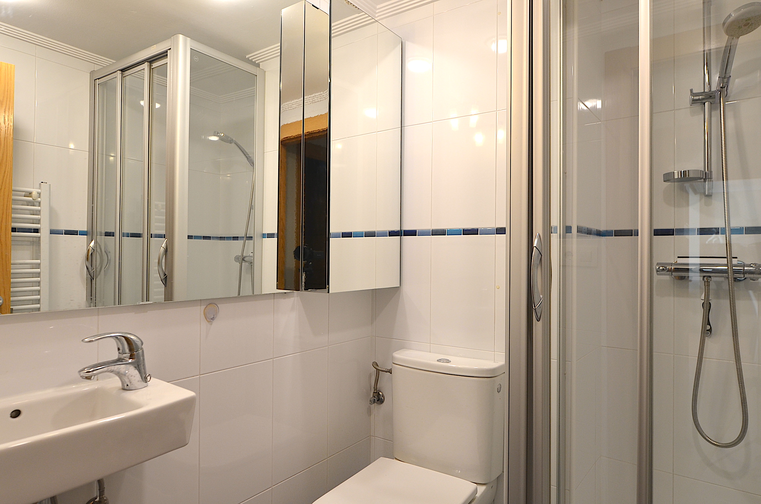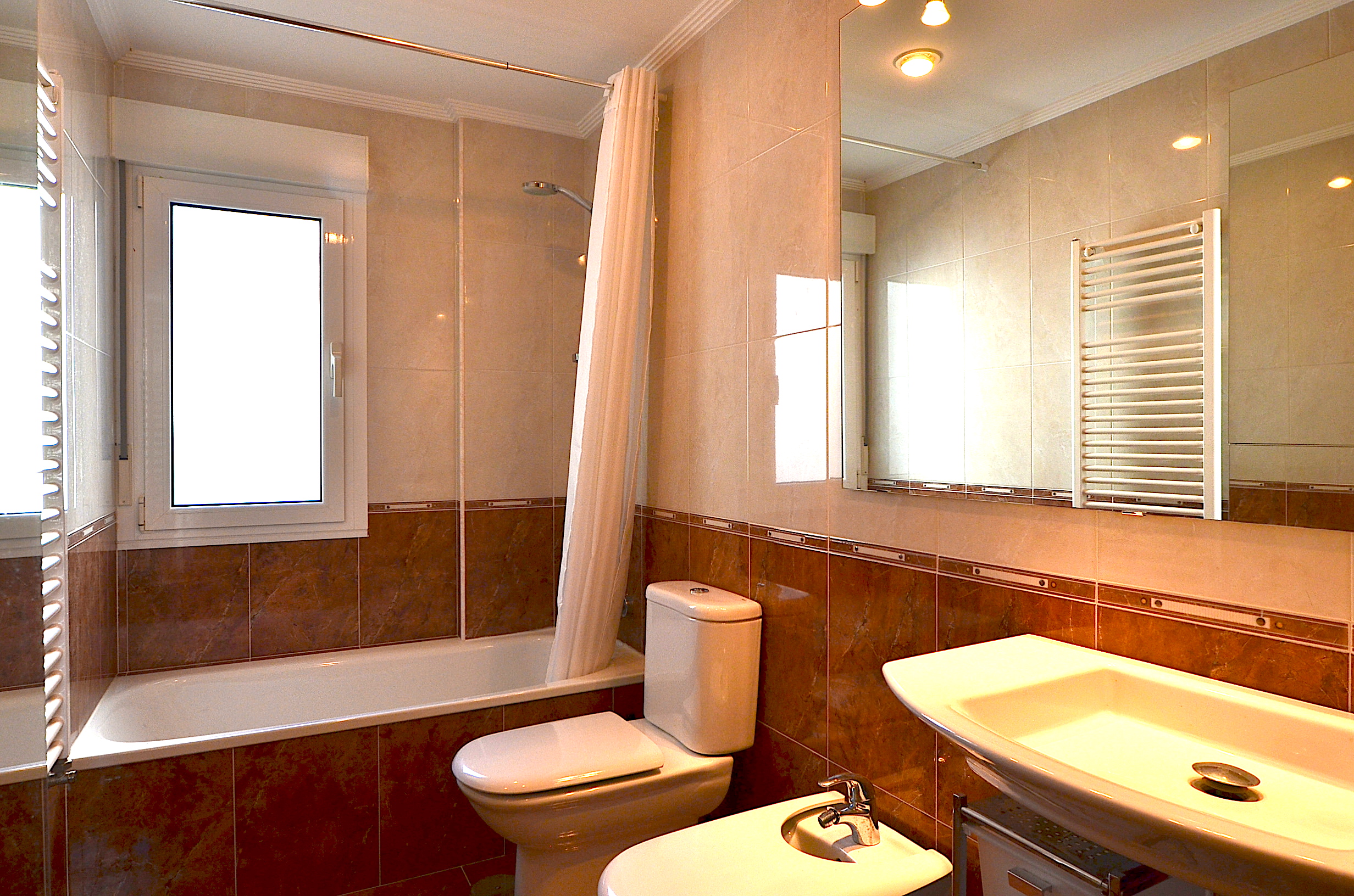 Dos cuartos de baño completos que se encuentran en el pasillo, uno de ellos para la habitación nº1 y el otro lo comparten las habitaciones n2 y nº3.