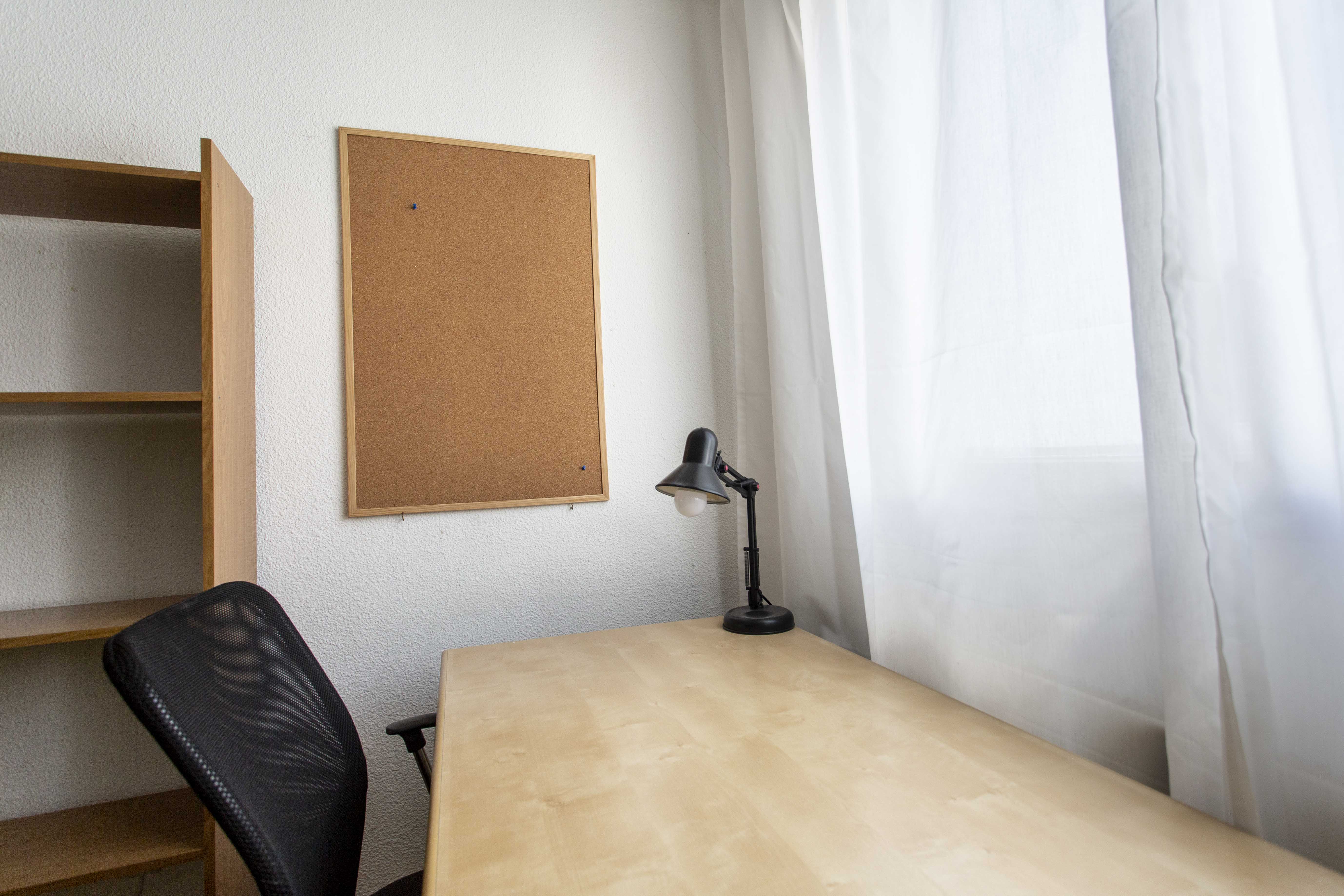 Todas las habitaciones están equipadas con mesa de estudio, silla ergonomica, estamteria, flexo, papelera y corcho para los apuntes.