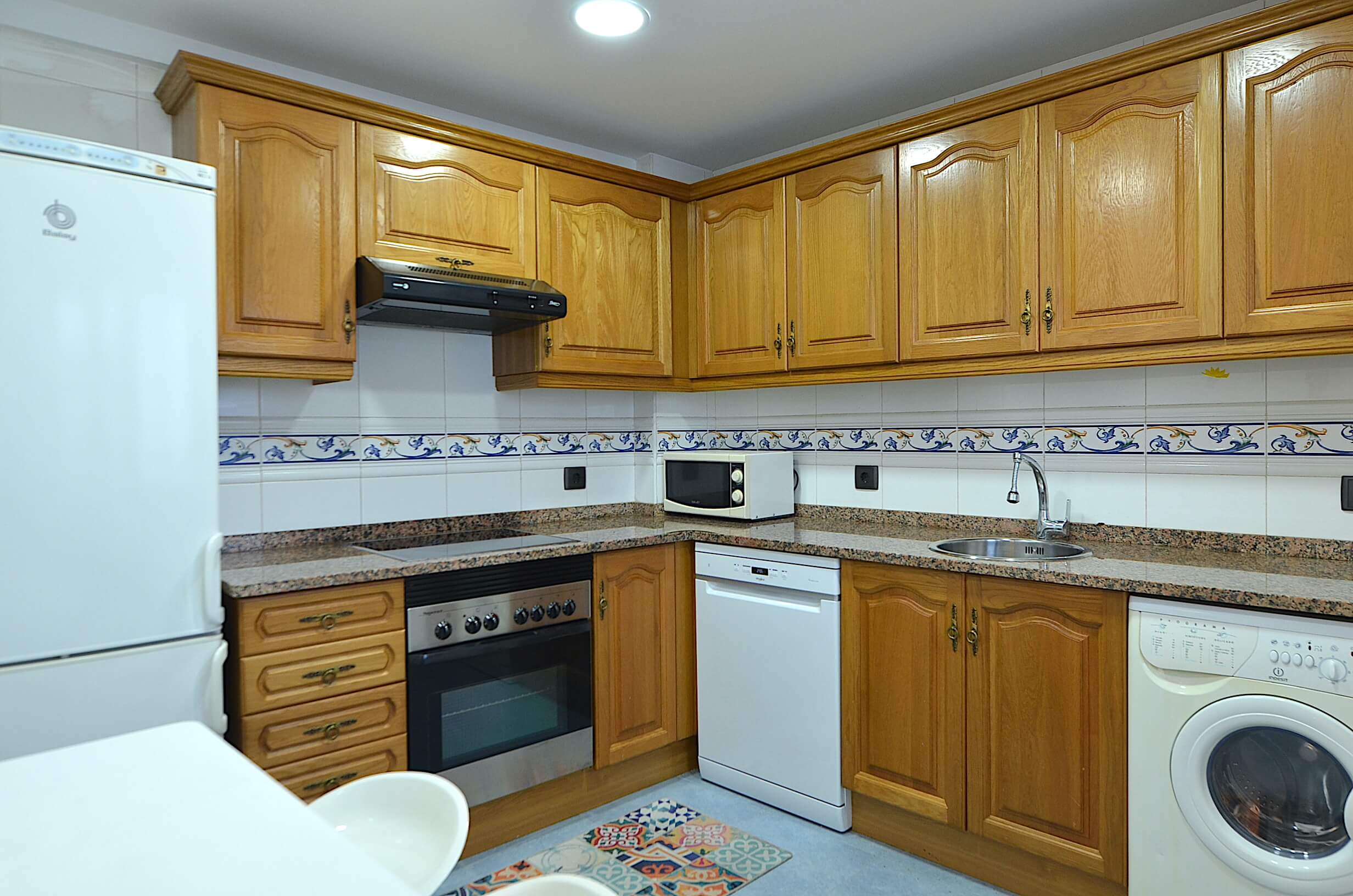 Cocina totalmente equipada con lavaplatos y lavadora.