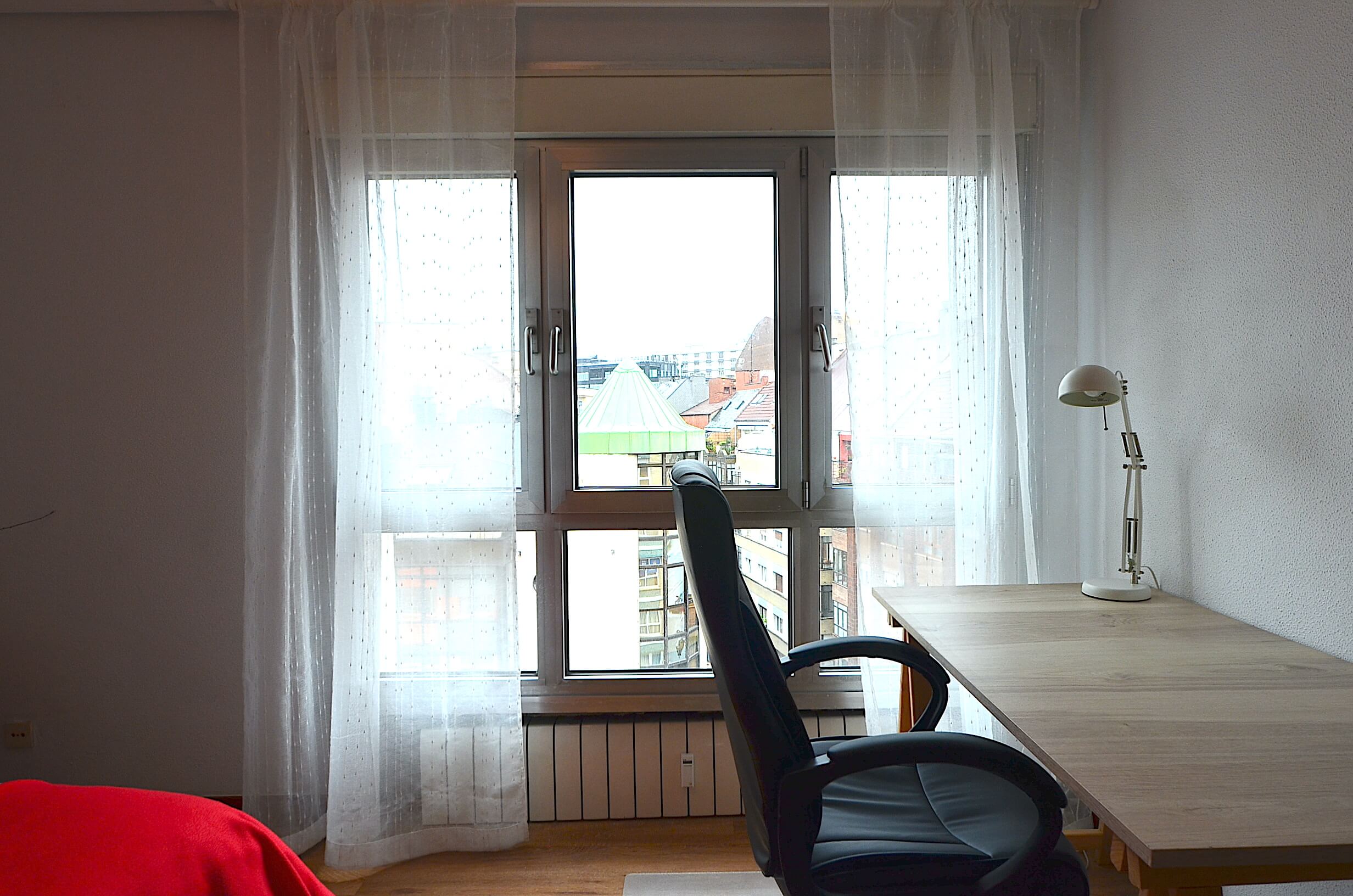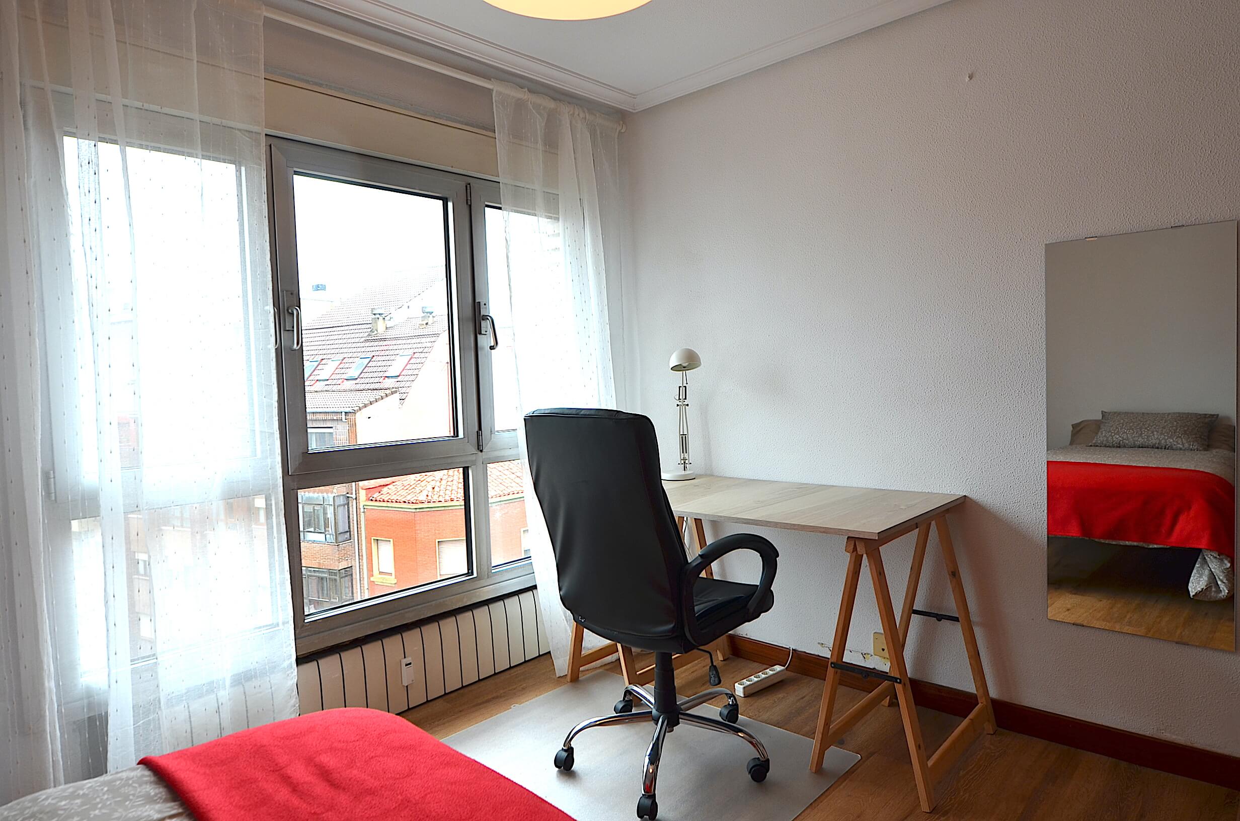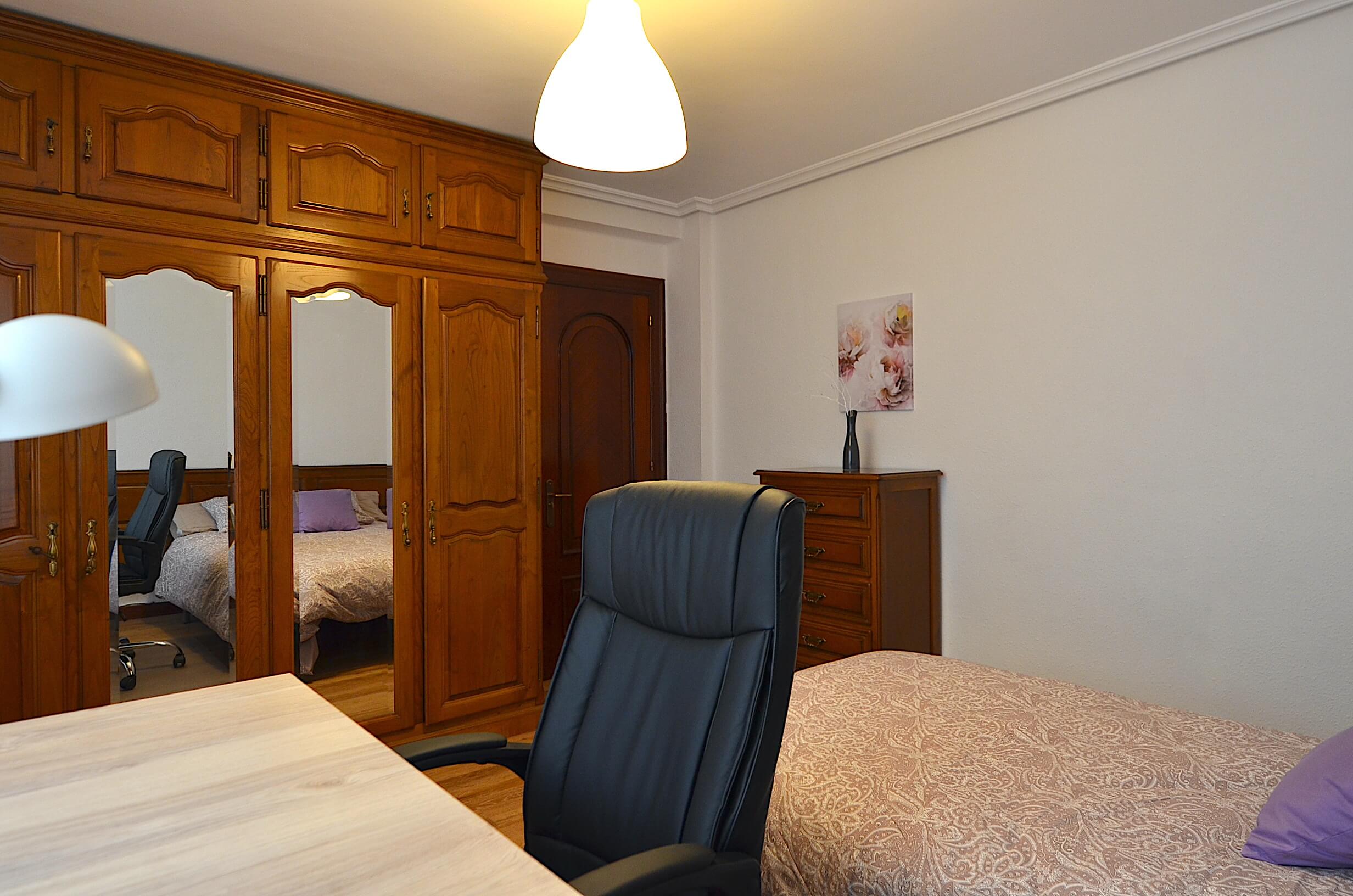 El salón y una de las habitaciones es exterior a la calle. Todas las habitaciones están equipadas con mesa de estudio, silla ergonomica, estanteria, flexo, corcho, papelera, etc…