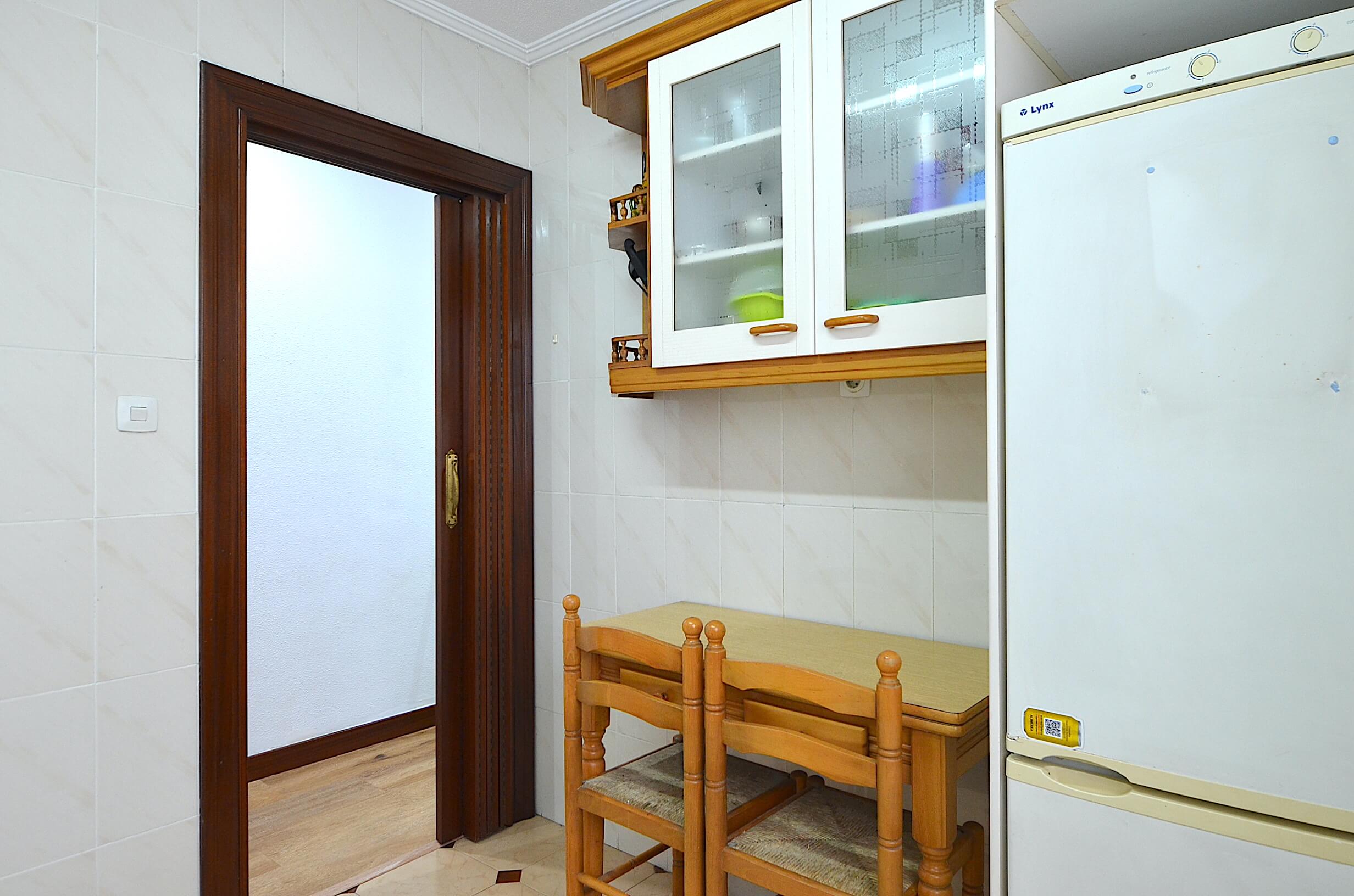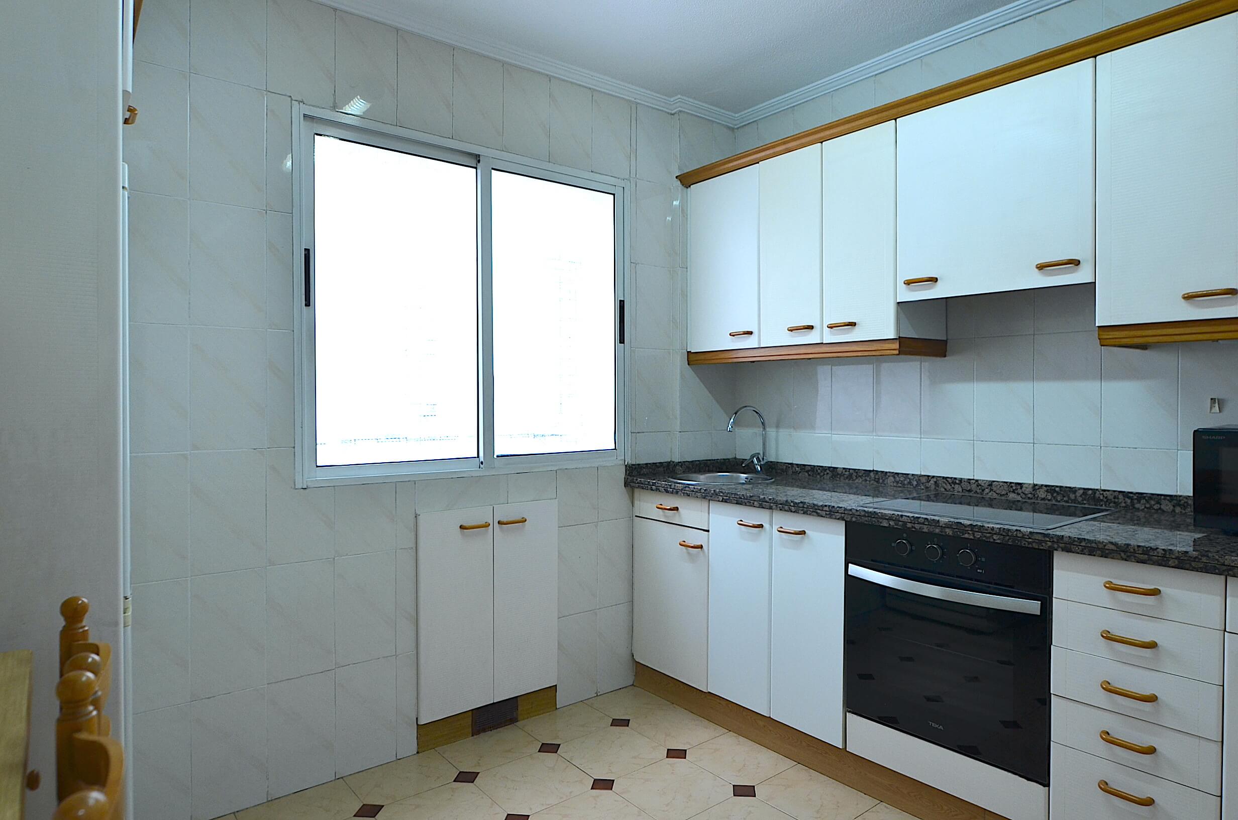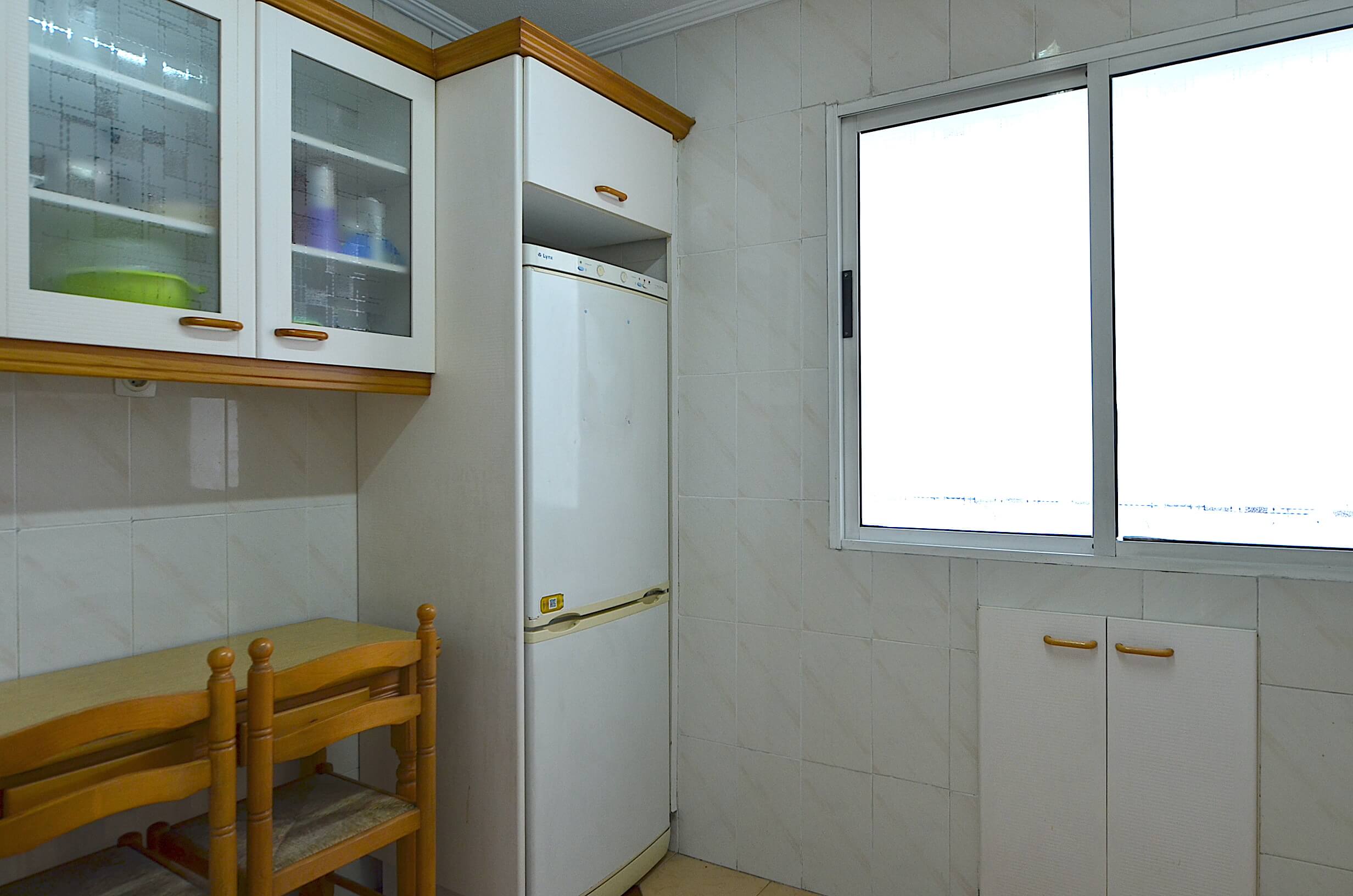 Cocina equipada con horno, vitro-ceramica, microondas, nevera, cafetera y tostador. Un cuarto de baño completo con bañera y un aseo con lavadora.