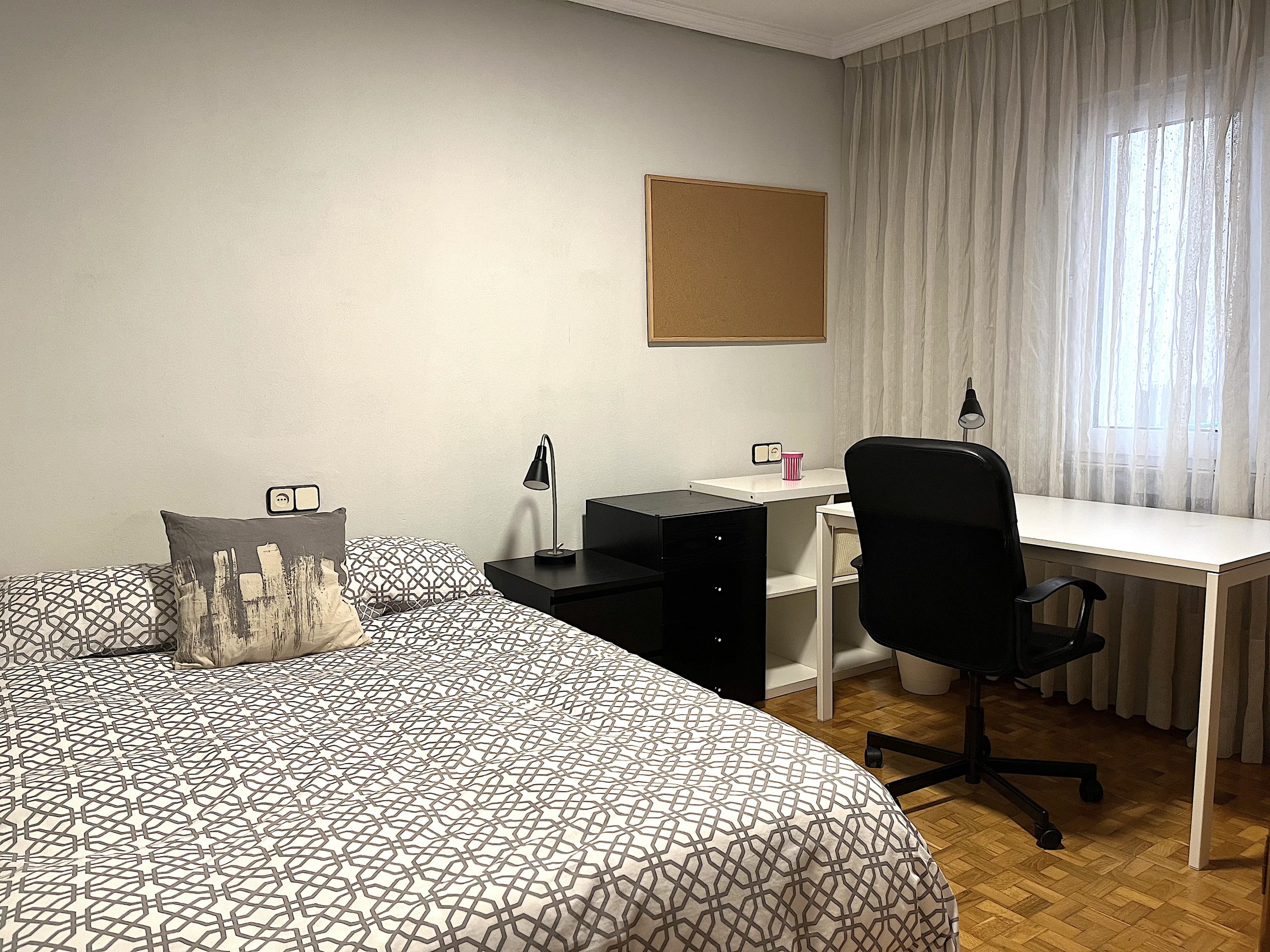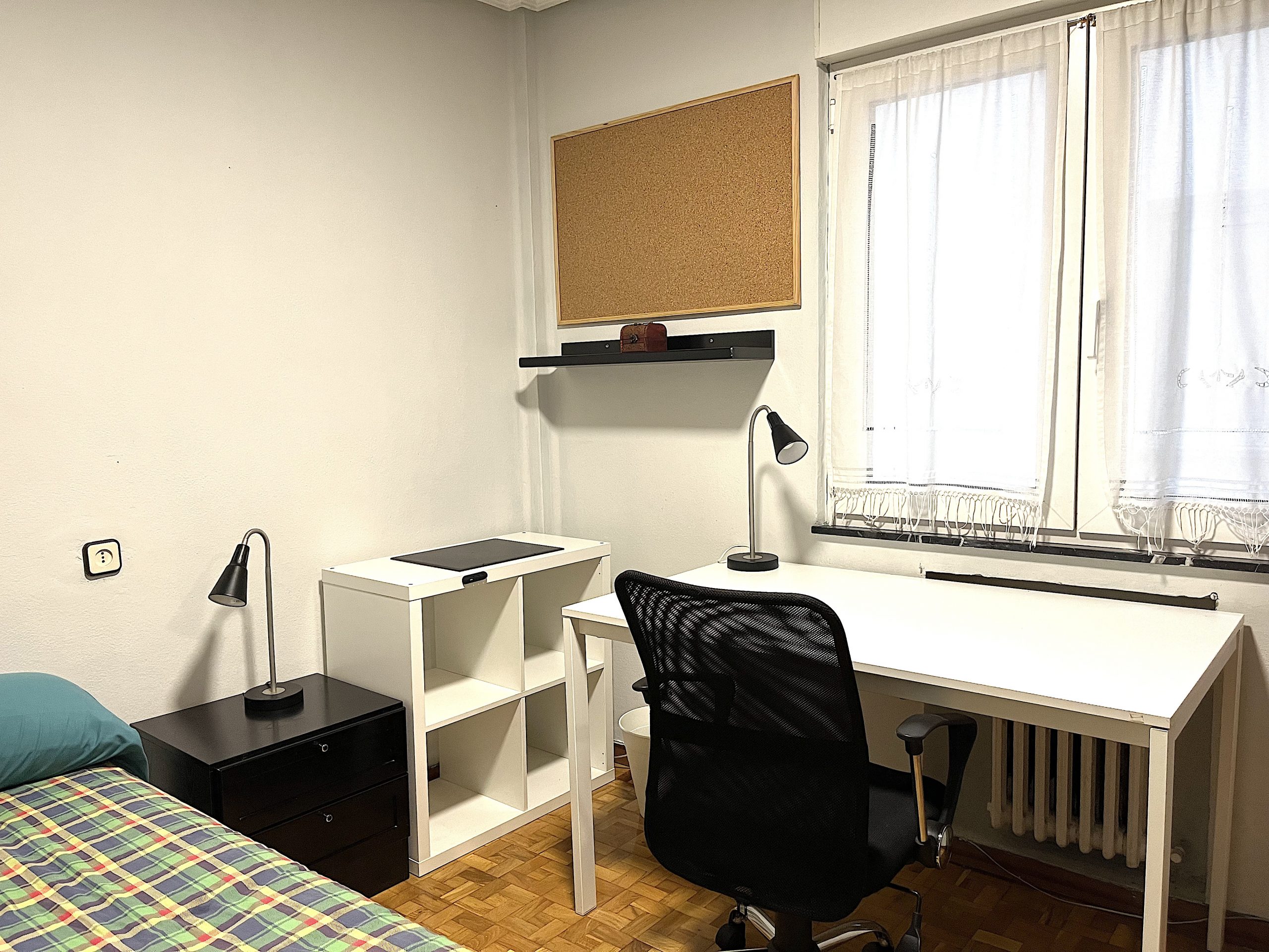 Cada habitación dispone de mesa de estudio de 120 x 75, silla ergonómica, corcho, flexo y estantería. Todas las camas cuentan con un juego de sábanas y toallas.