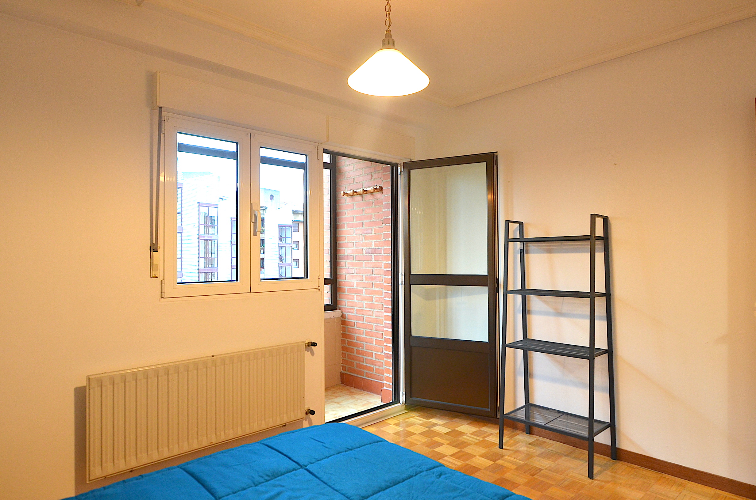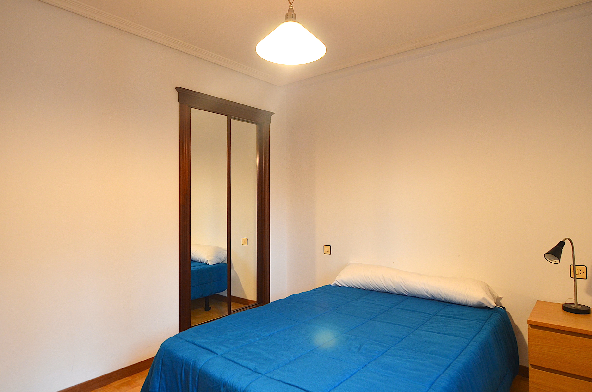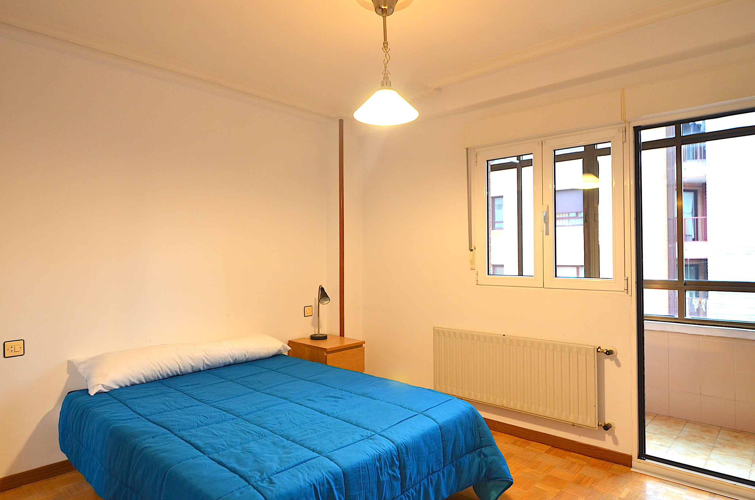 Habitación principal con terraza, tambien exterior y orientada al suroeste, con cama doble matrimonial de 135cm, y armario empotrado.