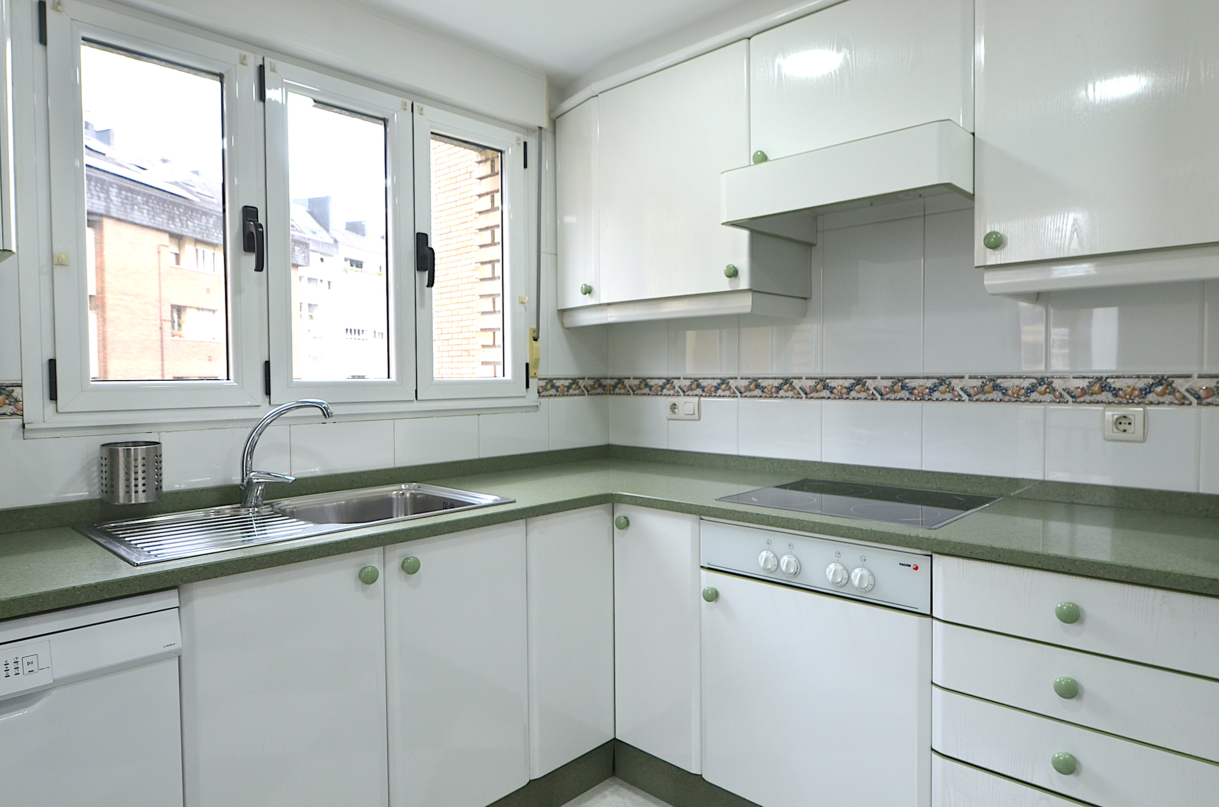 Amplio alojamiento totalmente exterior, orientación sur-oeste, con cuatro habitaciones, dos cuartos de baño completos, y cocina independiente.