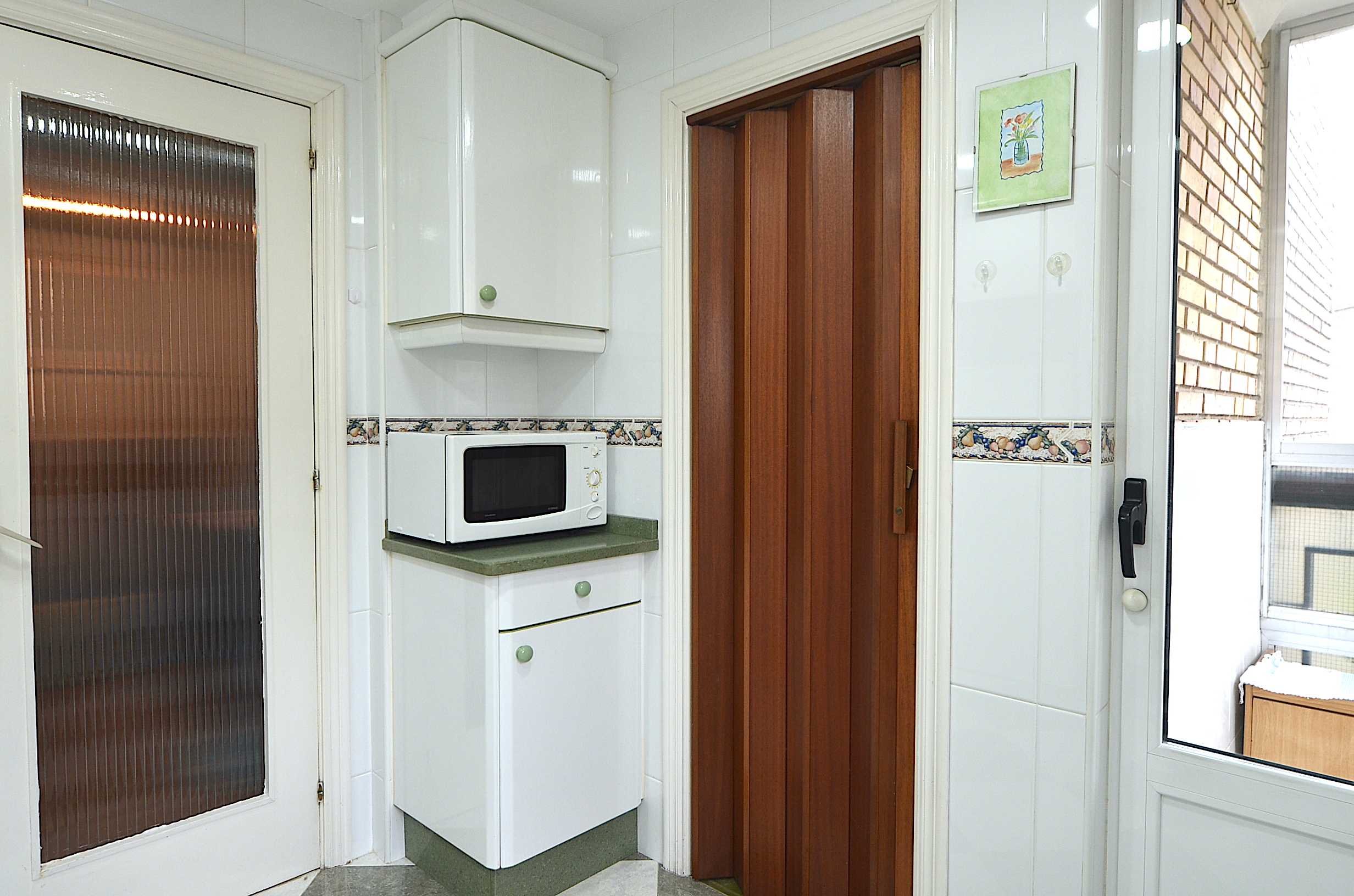 Salón comedor con terraza y televisión plana. Cocina totalmente equipada con lavaplatos, lavadora, vitroceramica, horno, nevera, microondas, cafetera y tostador. Menaje básico para cocinar.