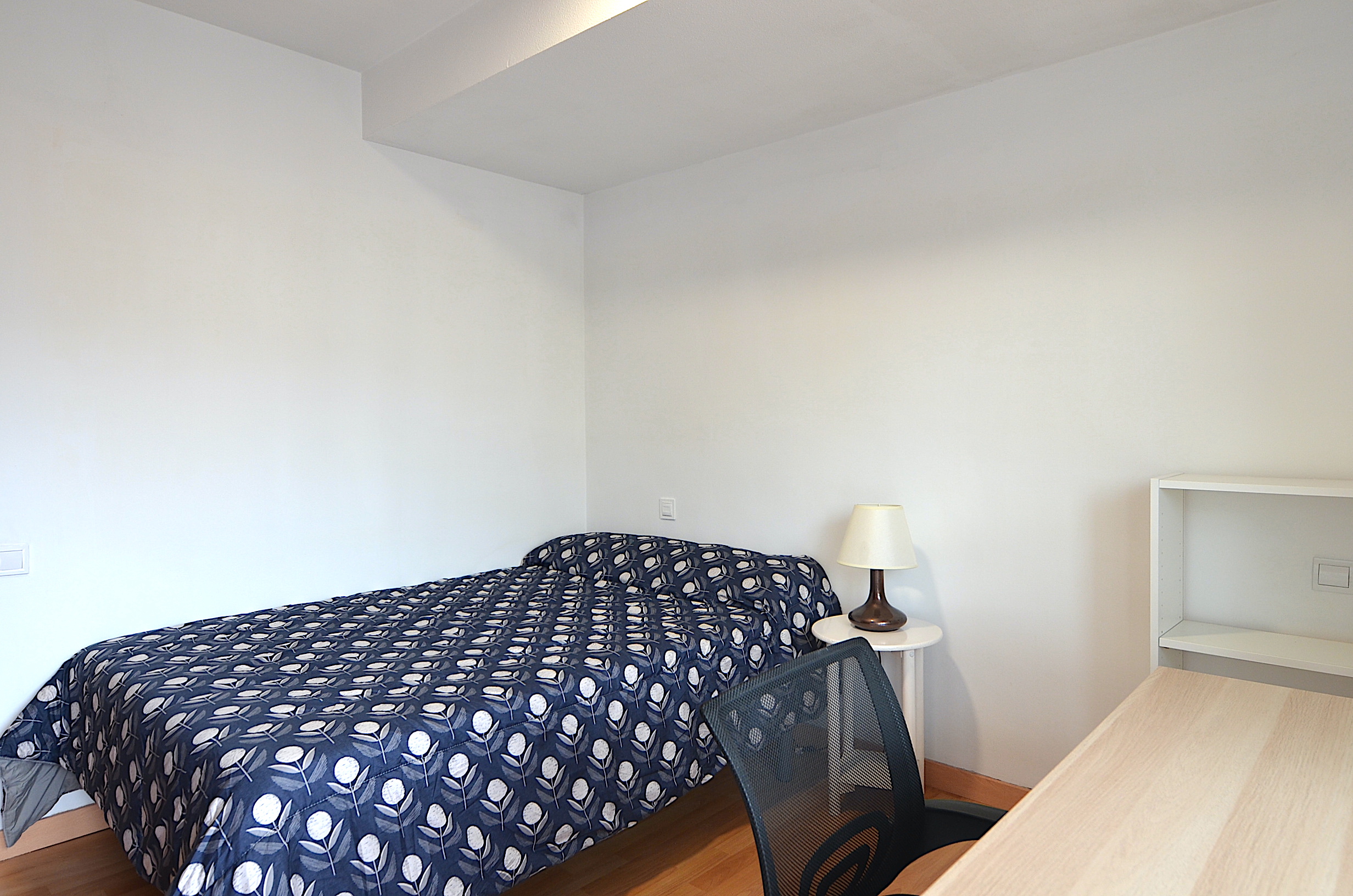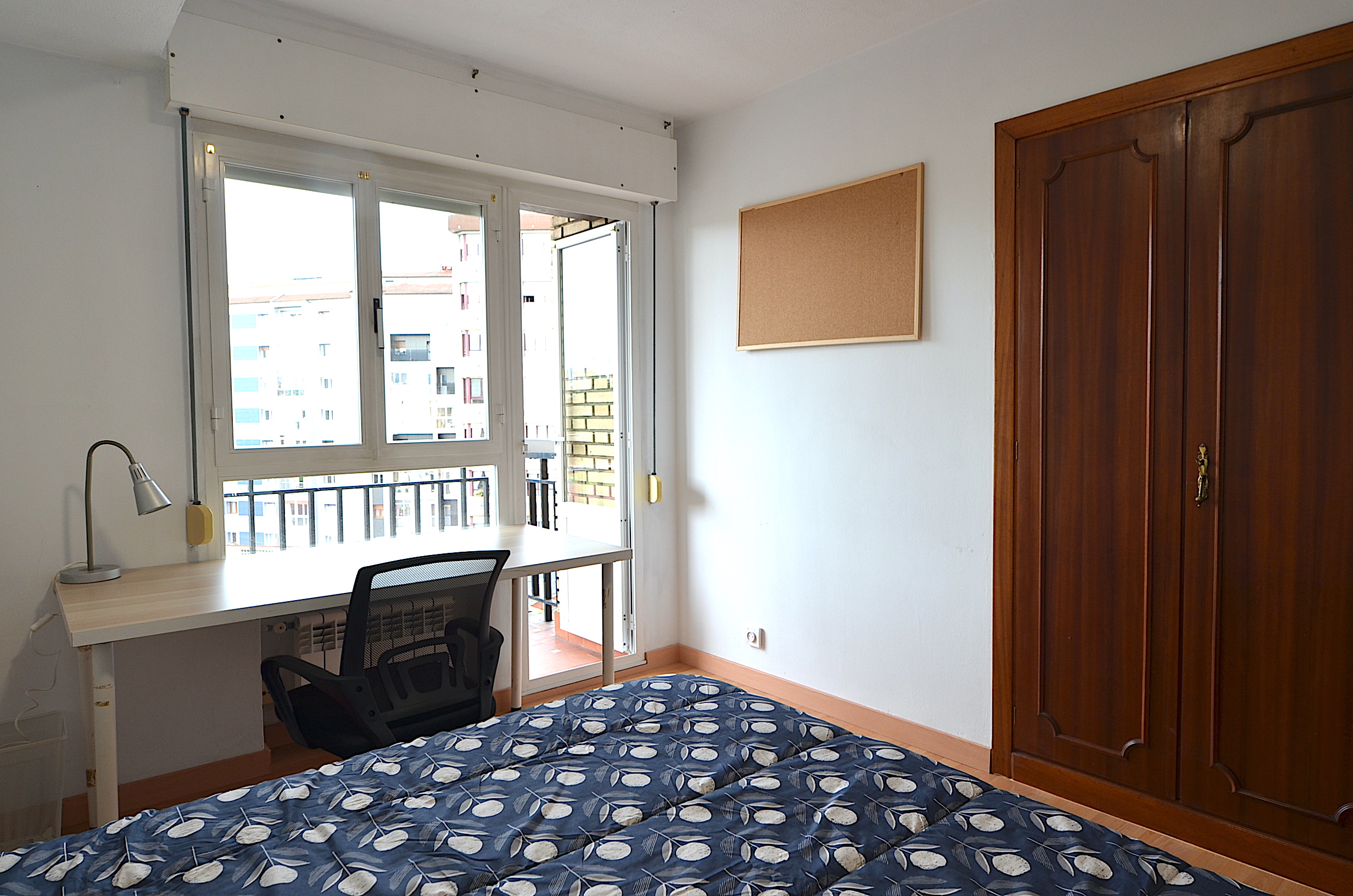 Todas las habitaciones disponen de cama doble matrimonial de 135cm., amplia mesa de estudio, silla ergonómica, estanteria para libros, flexo, papelera y corcho. Una de las habitaciones tiene otra terraza.