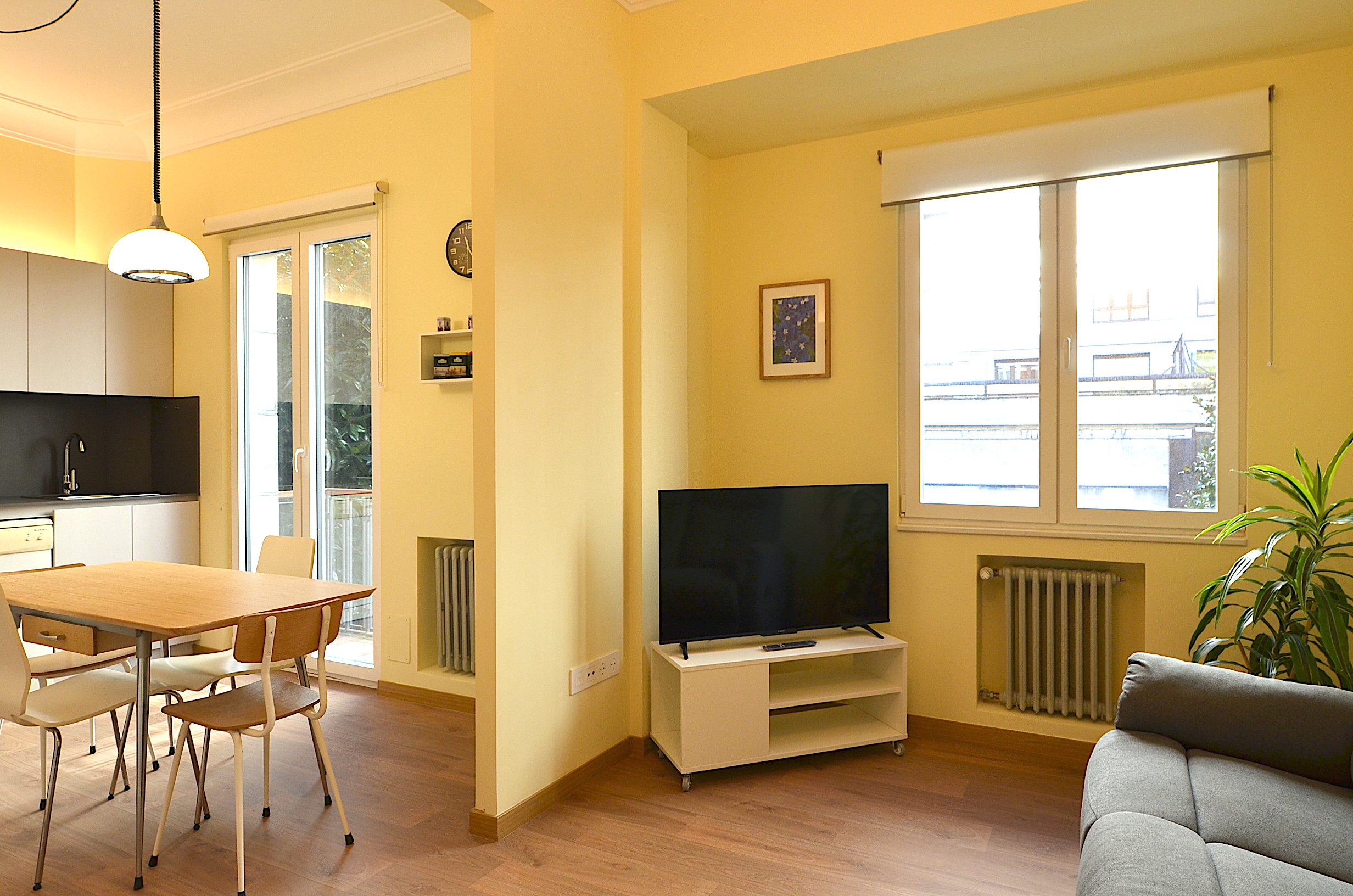 Piso totalmente reformado y nuevo a estrenar. Se divide en salón abierto a la zona de comedor y cocina, 3 amplias habitaciones, una de ellas con baño privado, otro baño en el pasillo, y un cuarto de lavado con el sistema de calentamiento del piso.