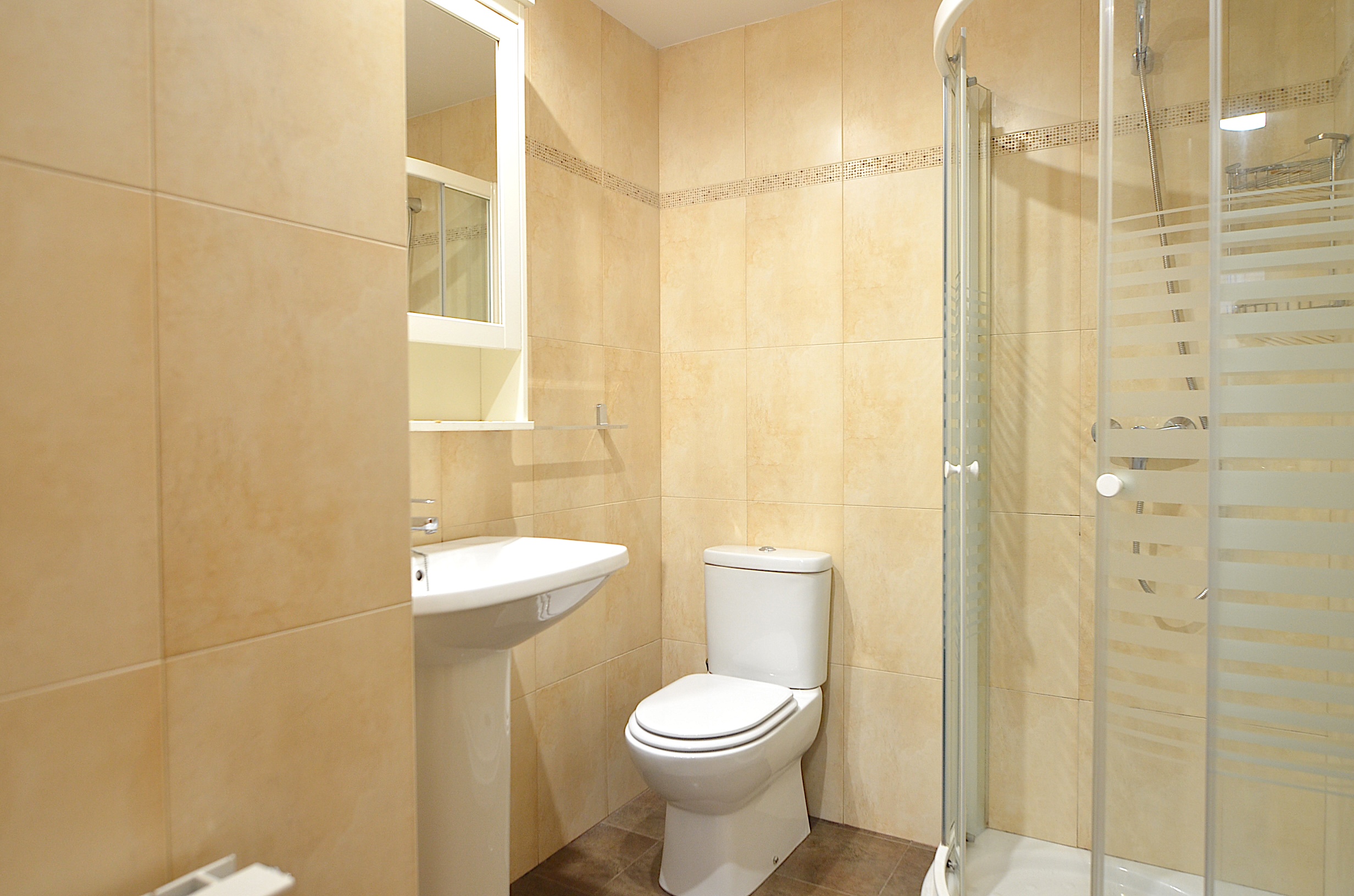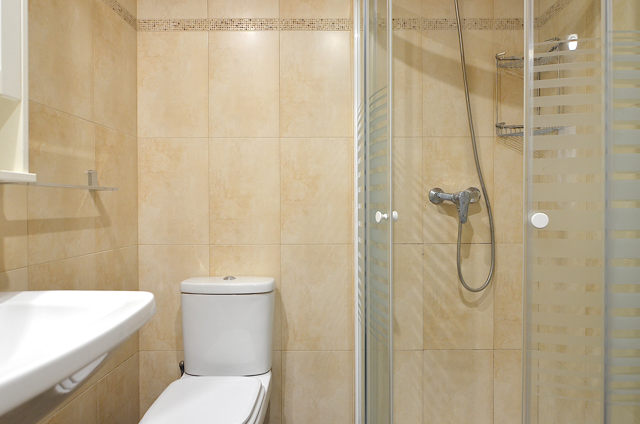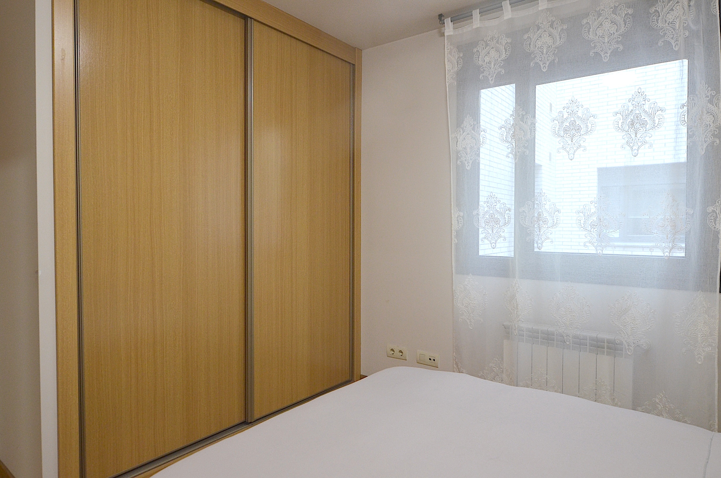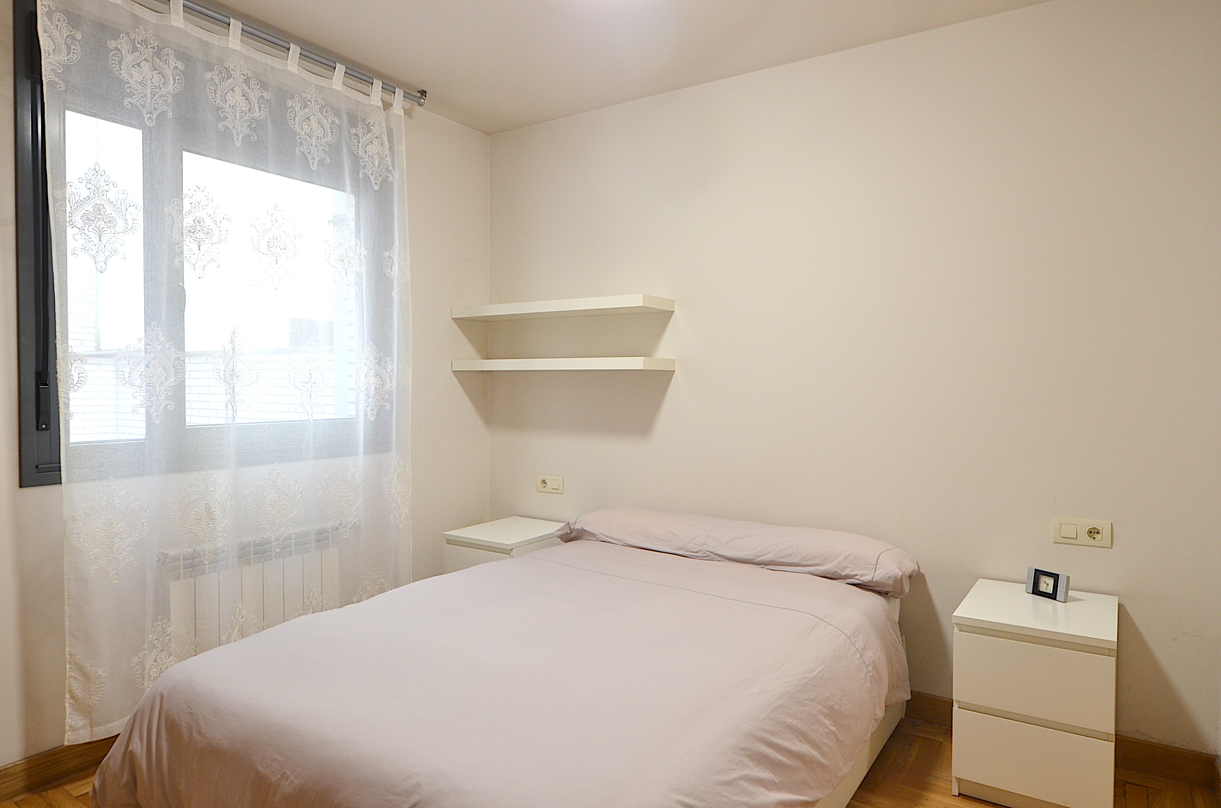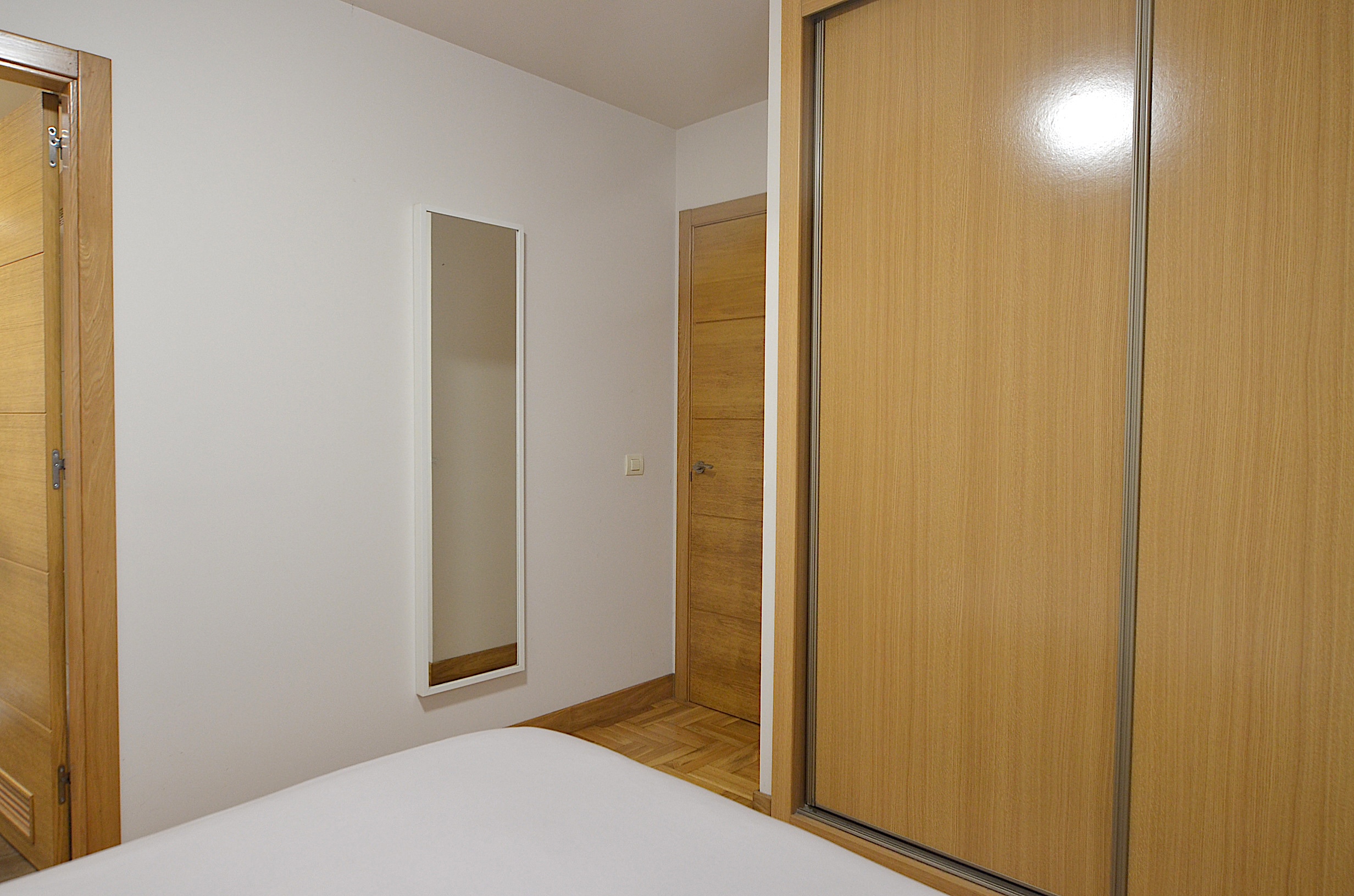 Apartamento individual distribuido en hall de entrada, salón-comedor con zona de estudio, cocina independiente, habitación con cama matrimonial, y cuarto de baño dentro de esta.