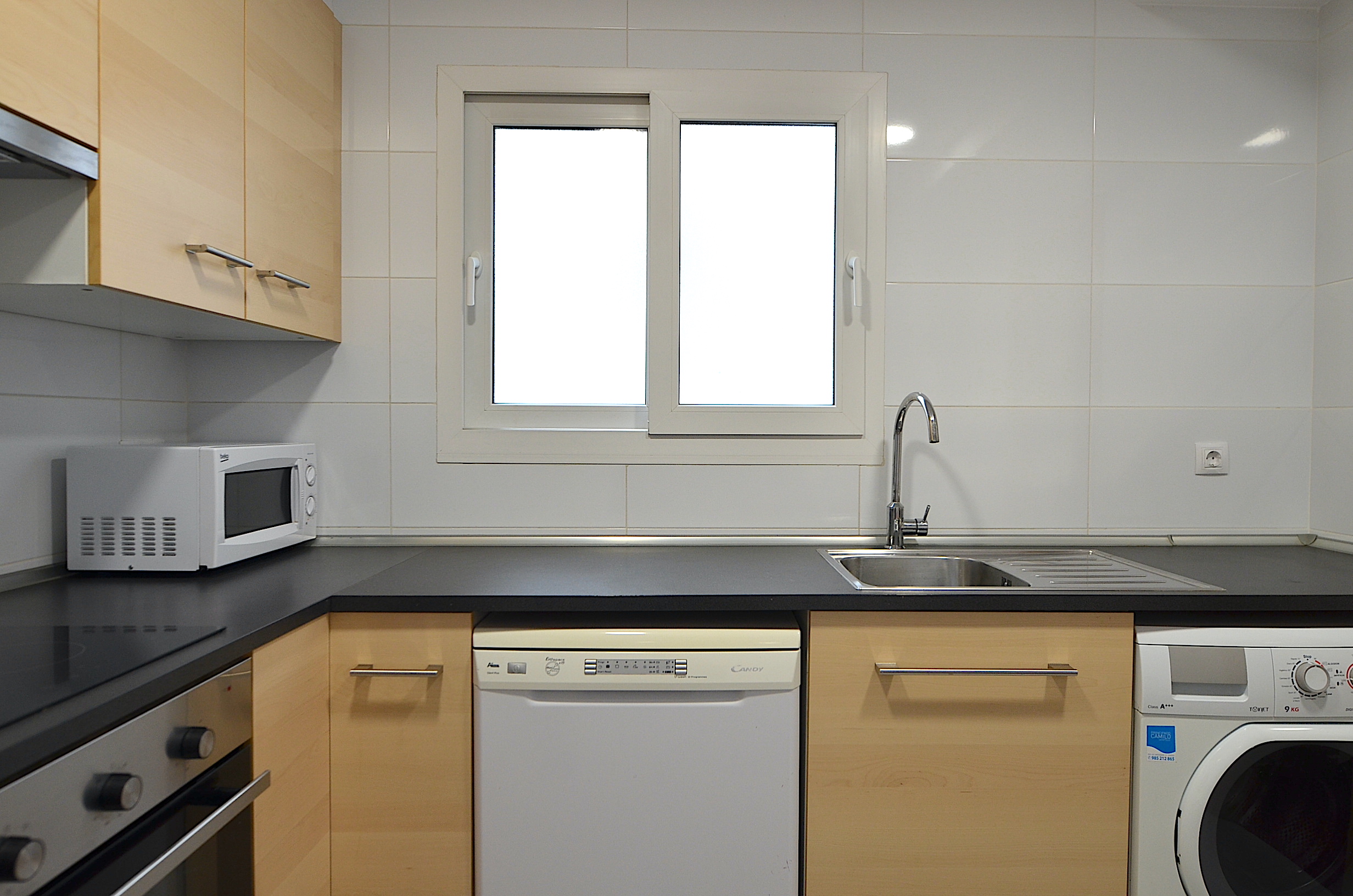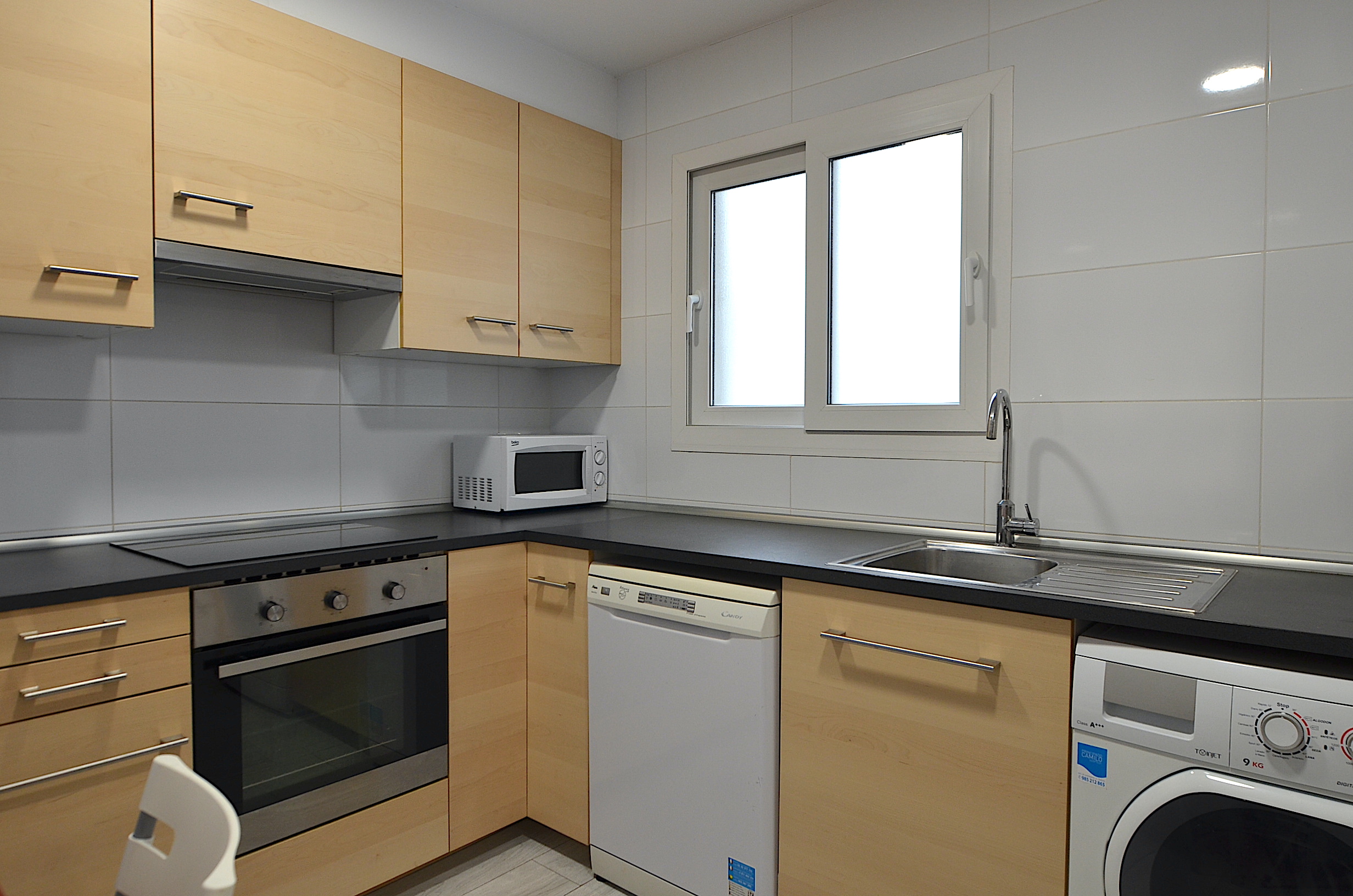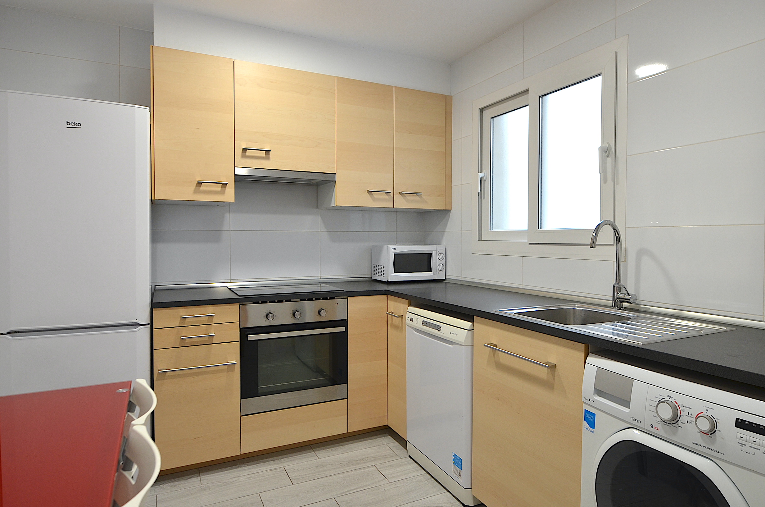 Cocina independiente y completamente equipada con lavaplatos y lavadora, vitrocerámica, horno, nevera combi, microondas y cafetera.