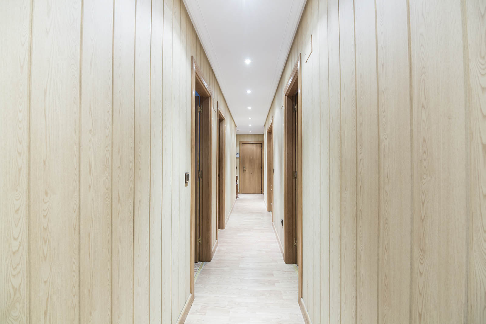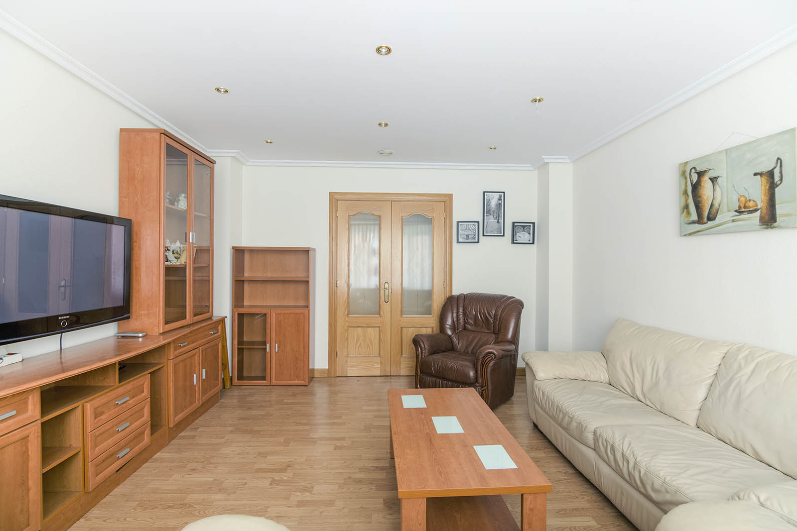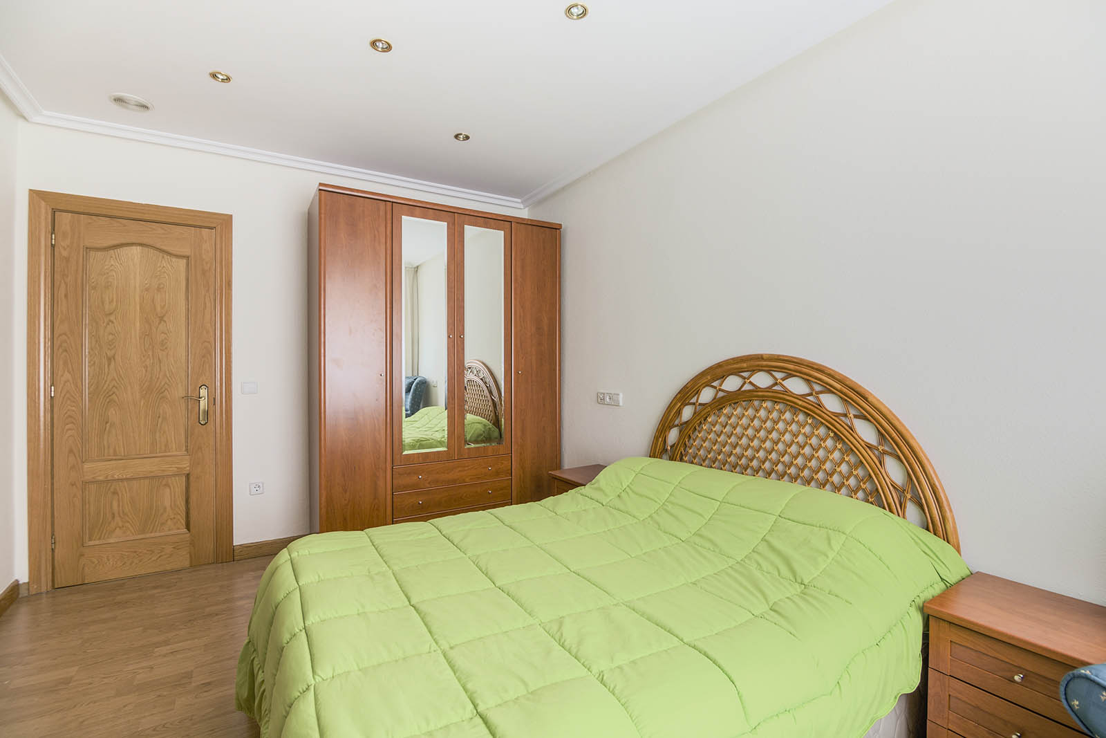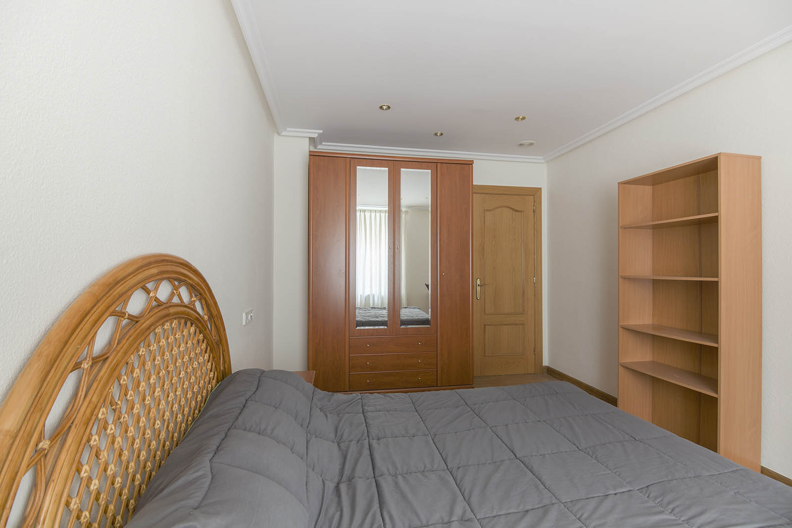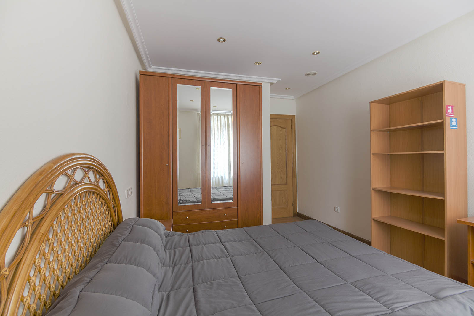 Piso de cuatro habitaciones amplias con cama grande, mesa de estudio y silla ergonóminca.situado en planta calle. Salón amplio con varios sofás.