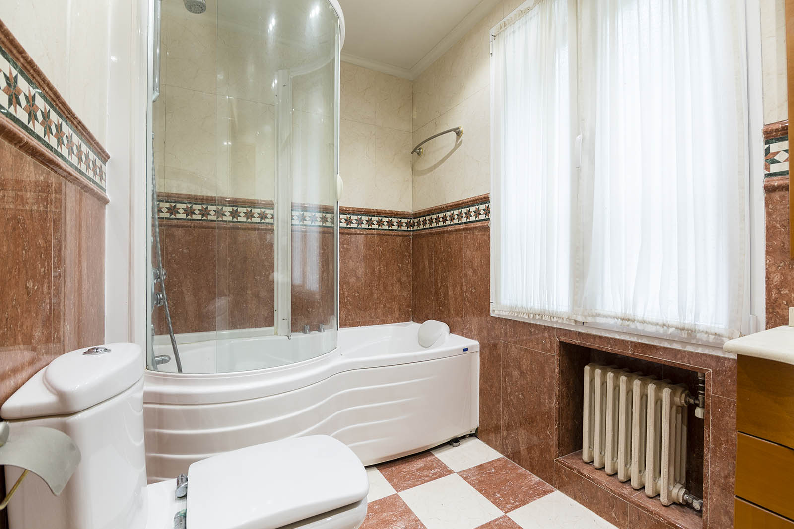 Baño completo con bañera de hidromasaje y un aseo. Cocina totalmente equipada con lavavajillas y lavadora.