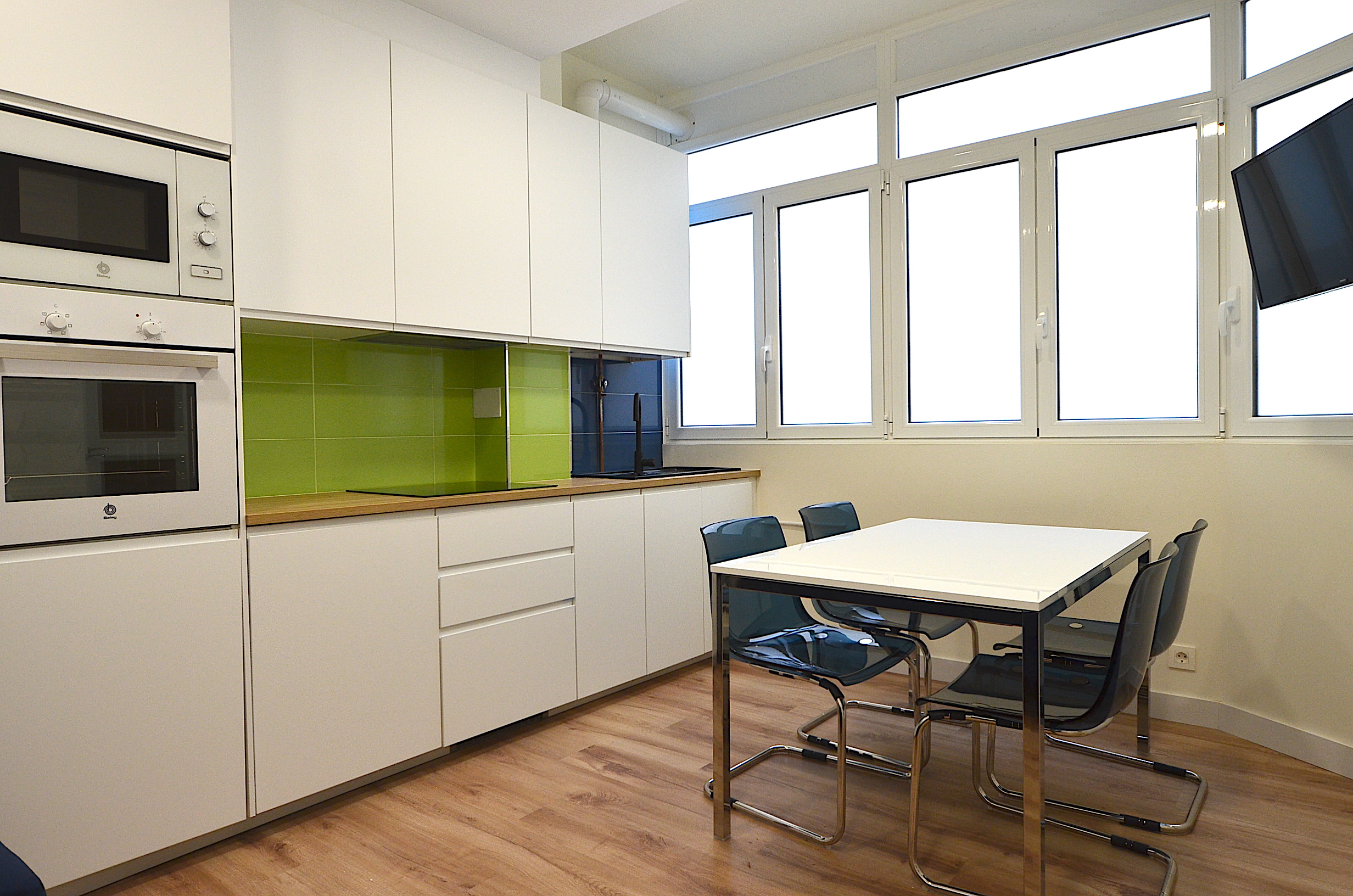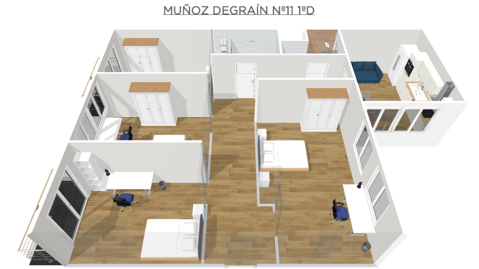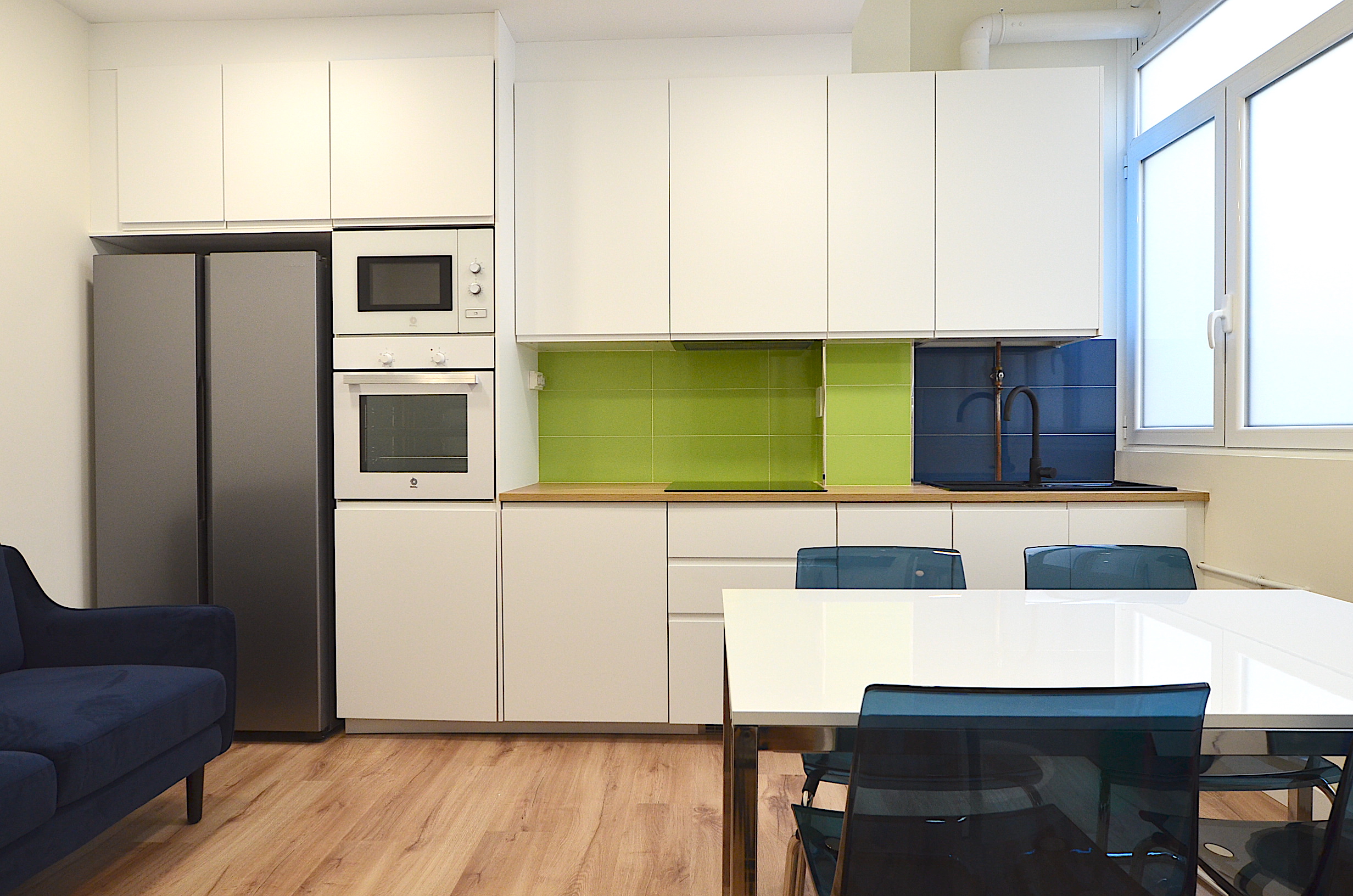 Piso reformado por completo y recién amueblado con un estilo moderno y grandes mesas de estudio.