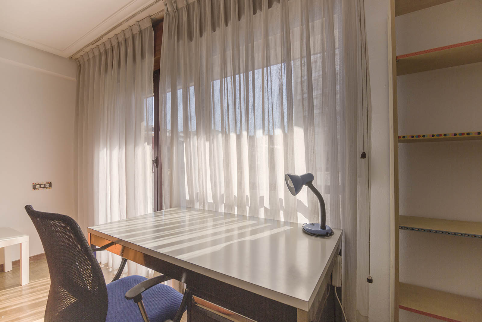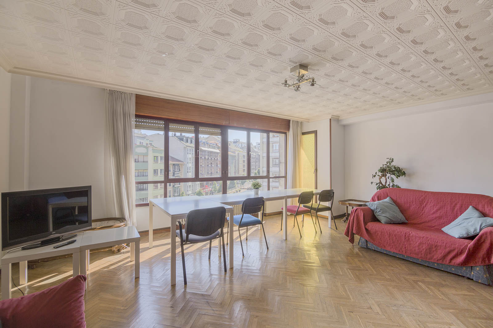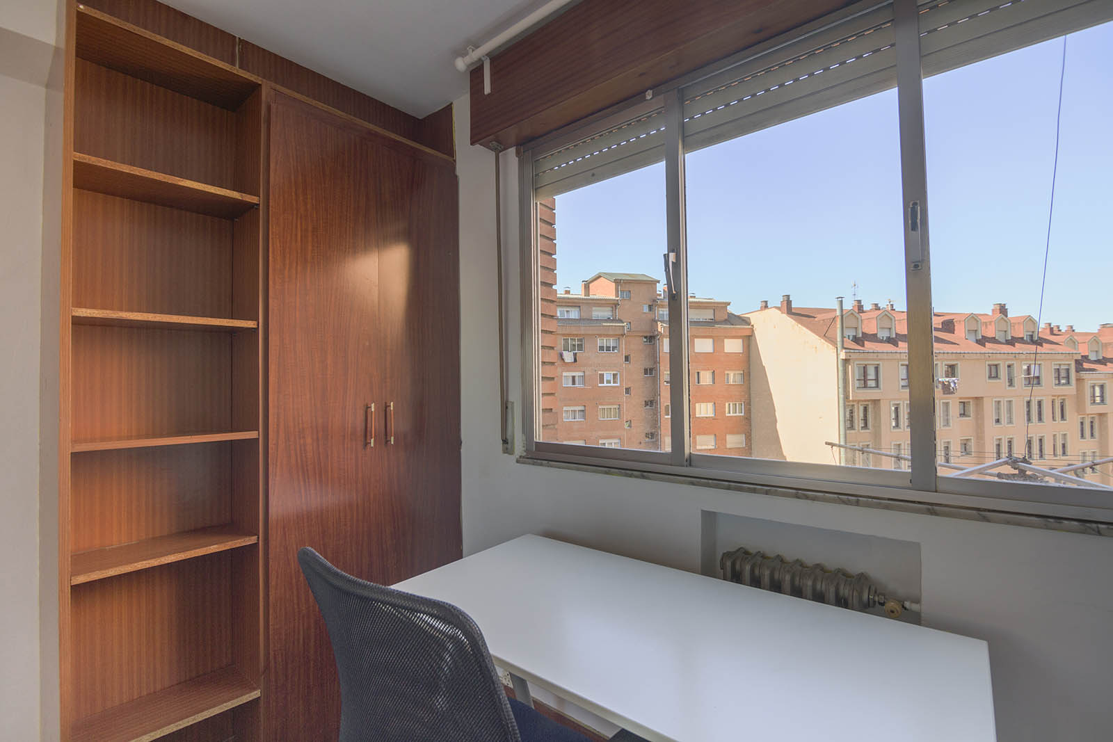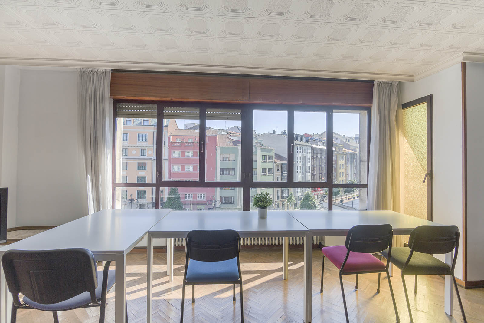 Nuestro piso más grande y más cercano a la Academia Mir Asturias. Cinco habitaciones y cuatro cuartos de baño completos. Gran salón con zona de estudio. Portero físico y recogida de basura diario.