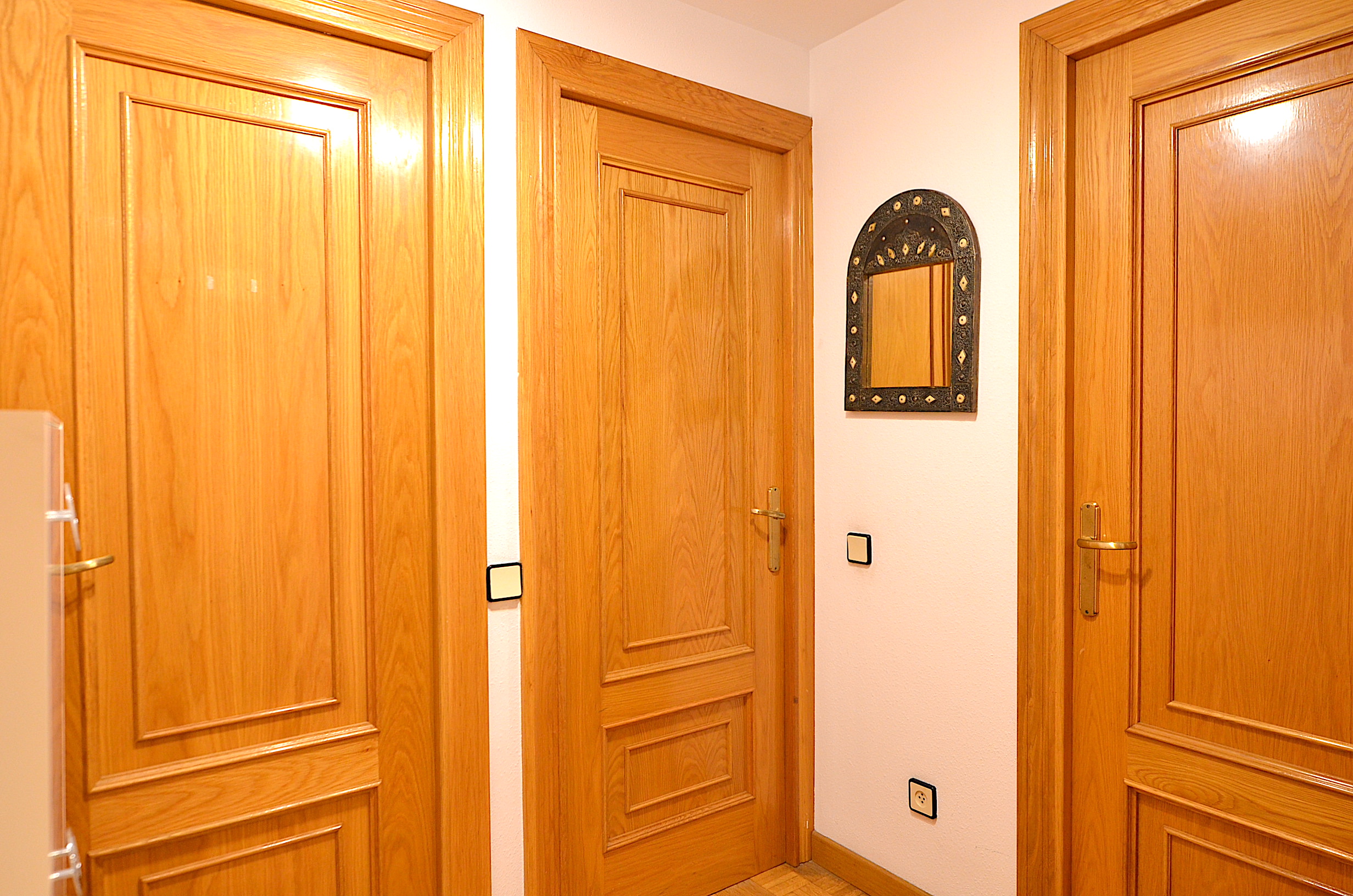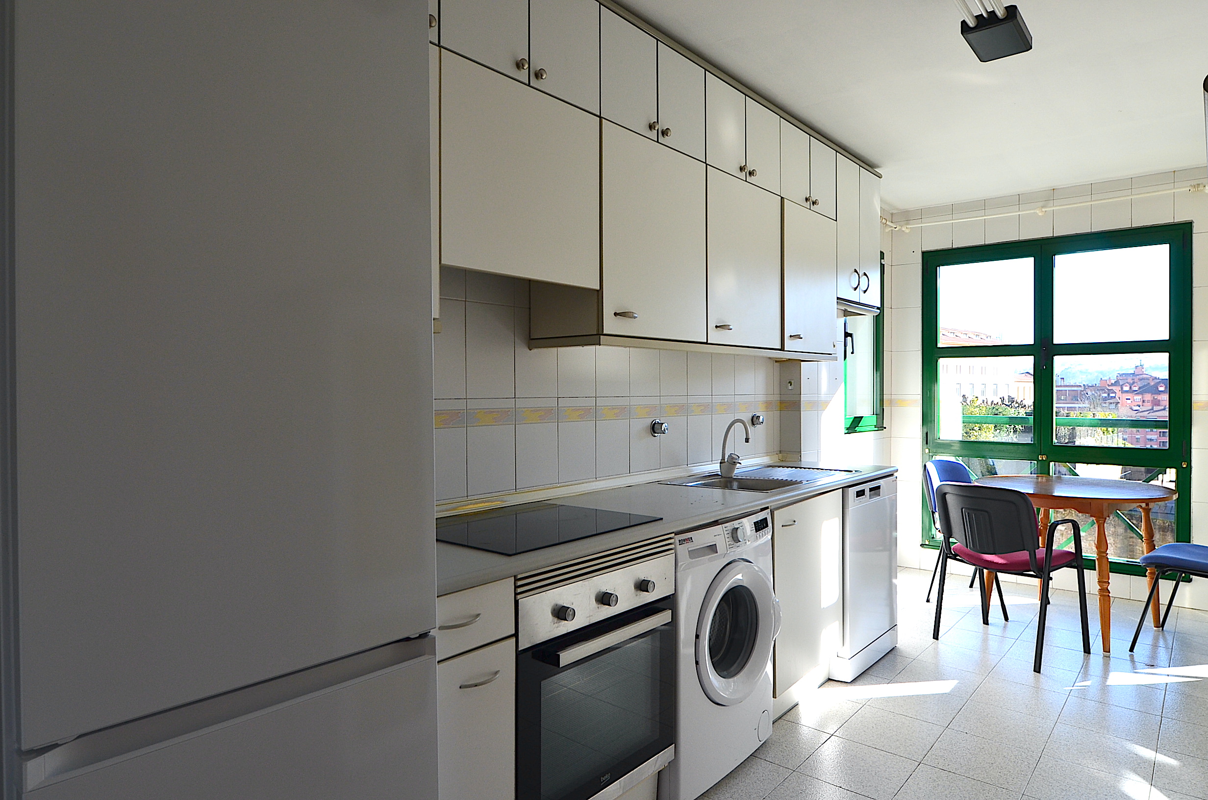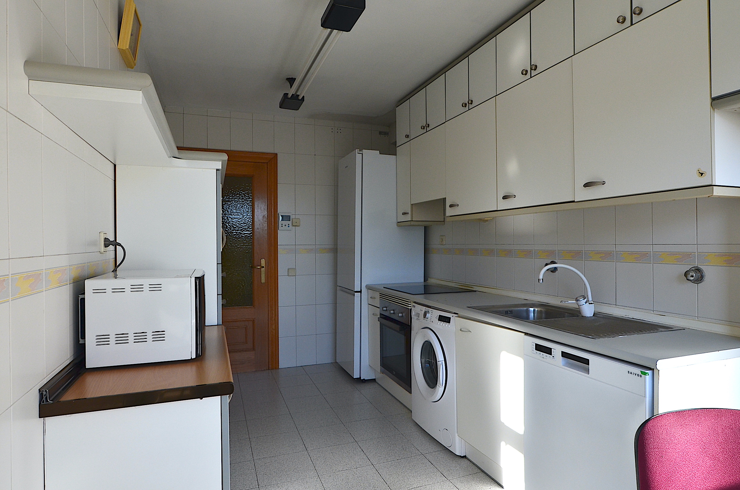 Al entrar nos encontramos con una cocina completamente equipada con lavavajillas, lavadora, salón-comedor con un gran ventanal. Un hall central reparte las tres habitaciones, dos habitaciones con un cuarto de baño completo para compartir, y la tercera habitación con baño privado.