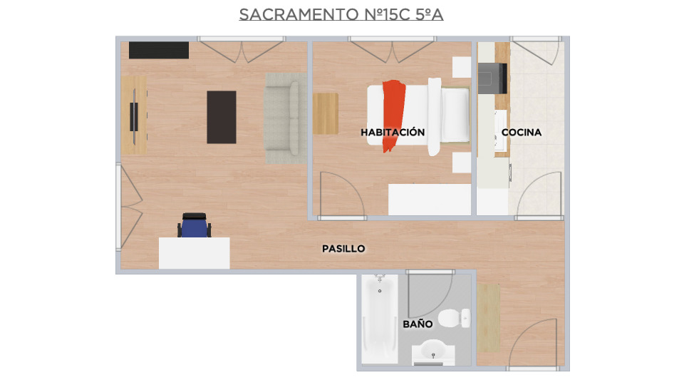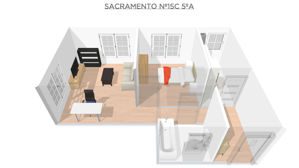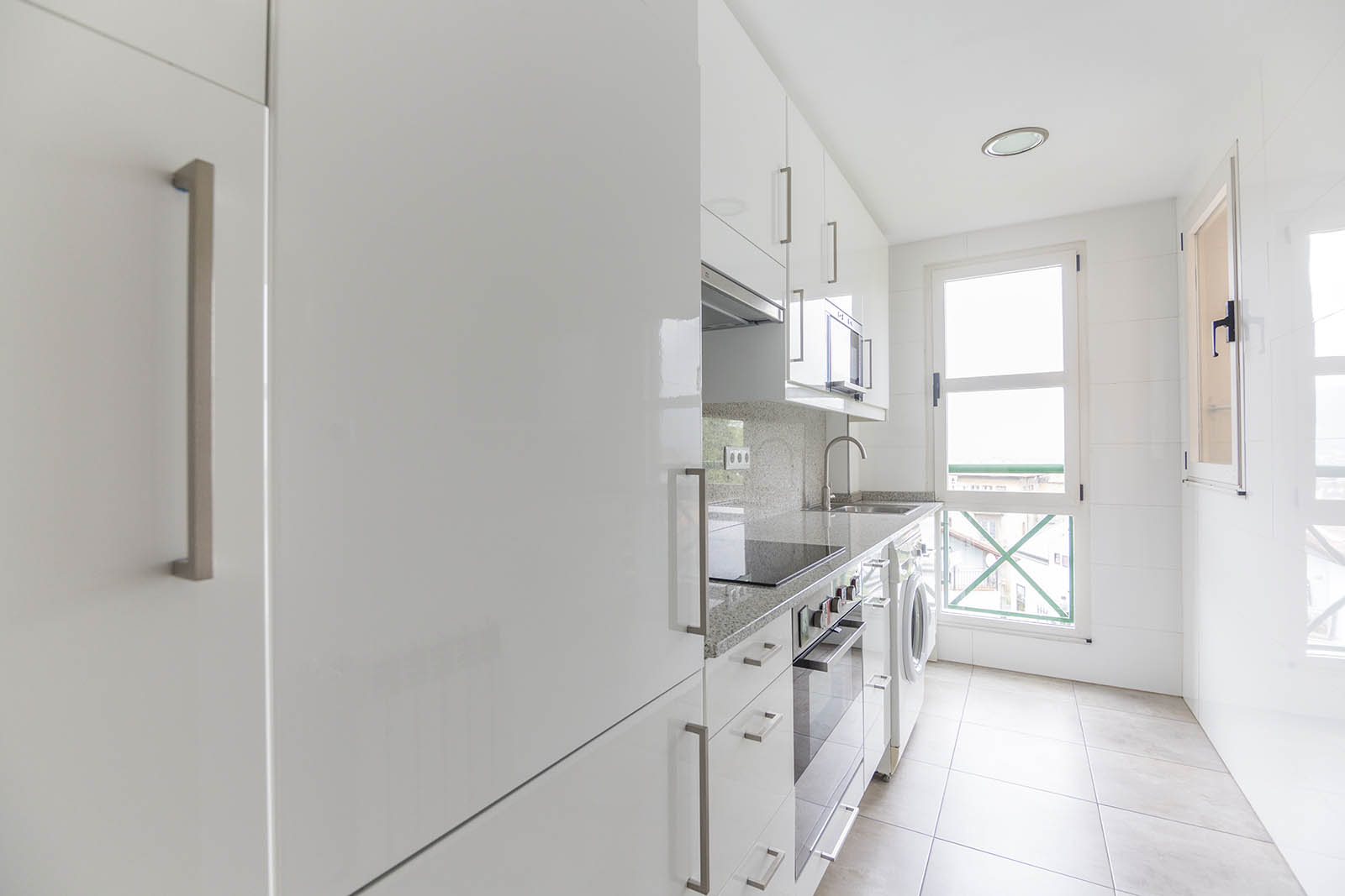 Apartamento de lujo completamente exterior. Dispone de una cocina independiente totalmente equipada, una habitación con cama de matrimonio y armario empotrado, y un baño completo.