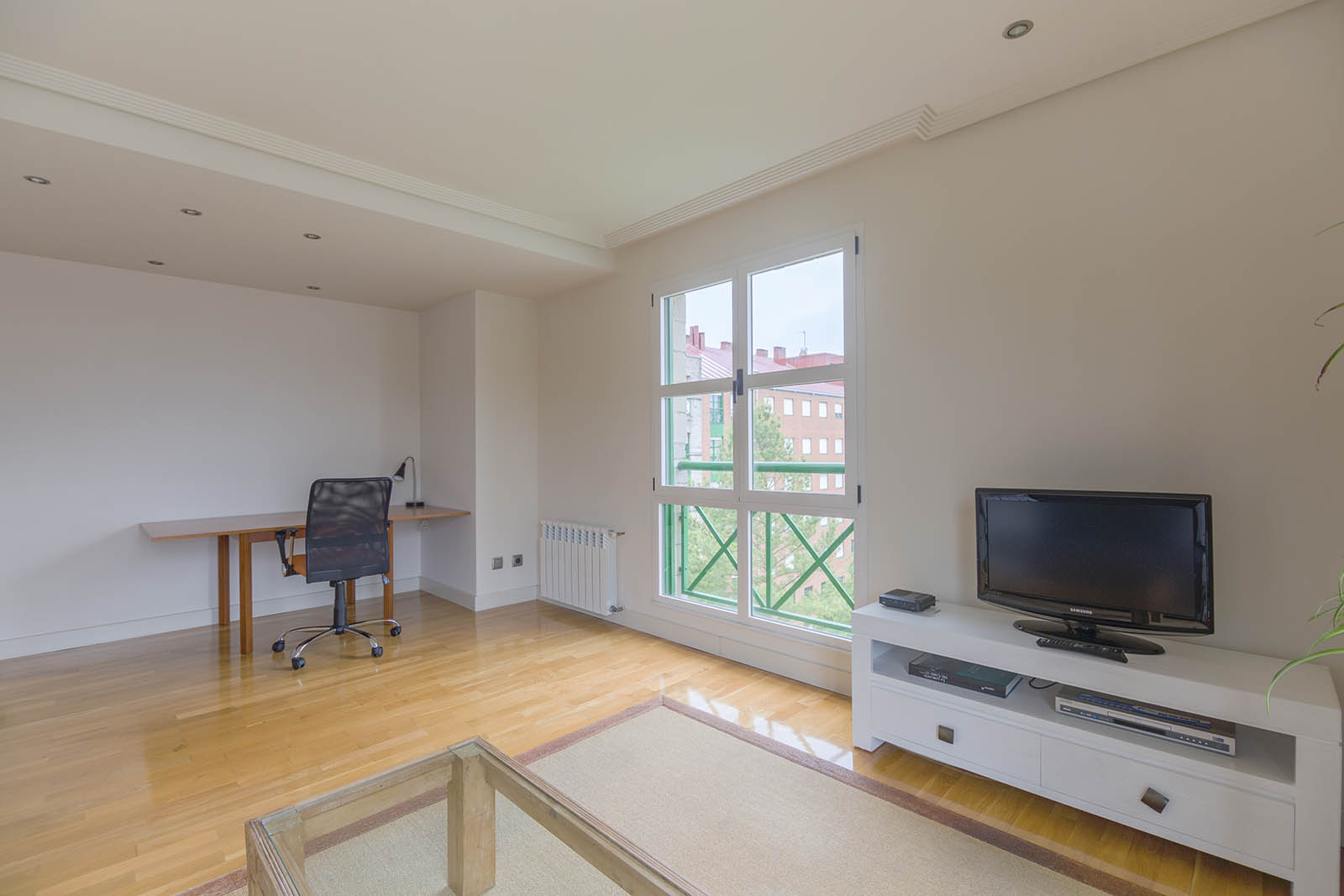Muy luminoso y silencioso. Con mobiliario nuevo y moderno. La zona de estudio se encuentra ubicada en el salón. Portero físico con recogida de basura diaria y calefacción central. Un lujo de piso para preparar el MIR.