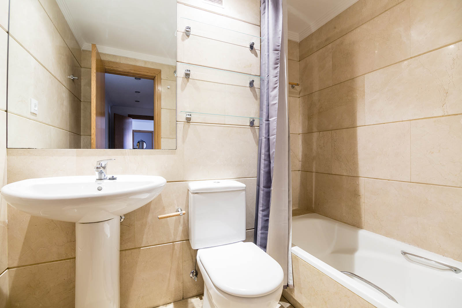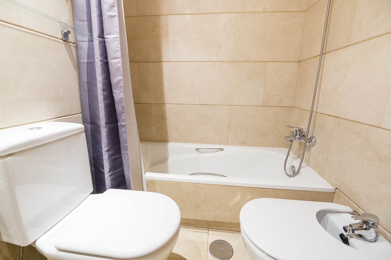 Baño con acabados de calidad y bañera, buenas calidades en todo el edificio. Portero físico con recogida de basura diario.