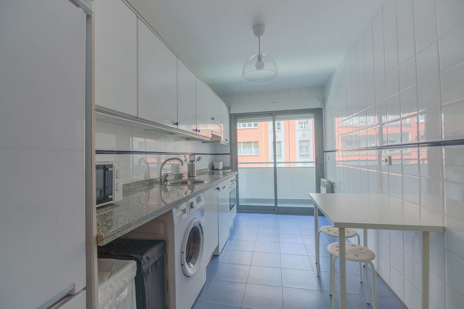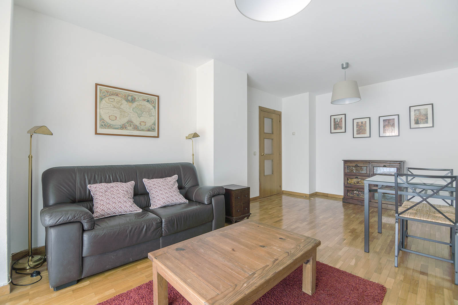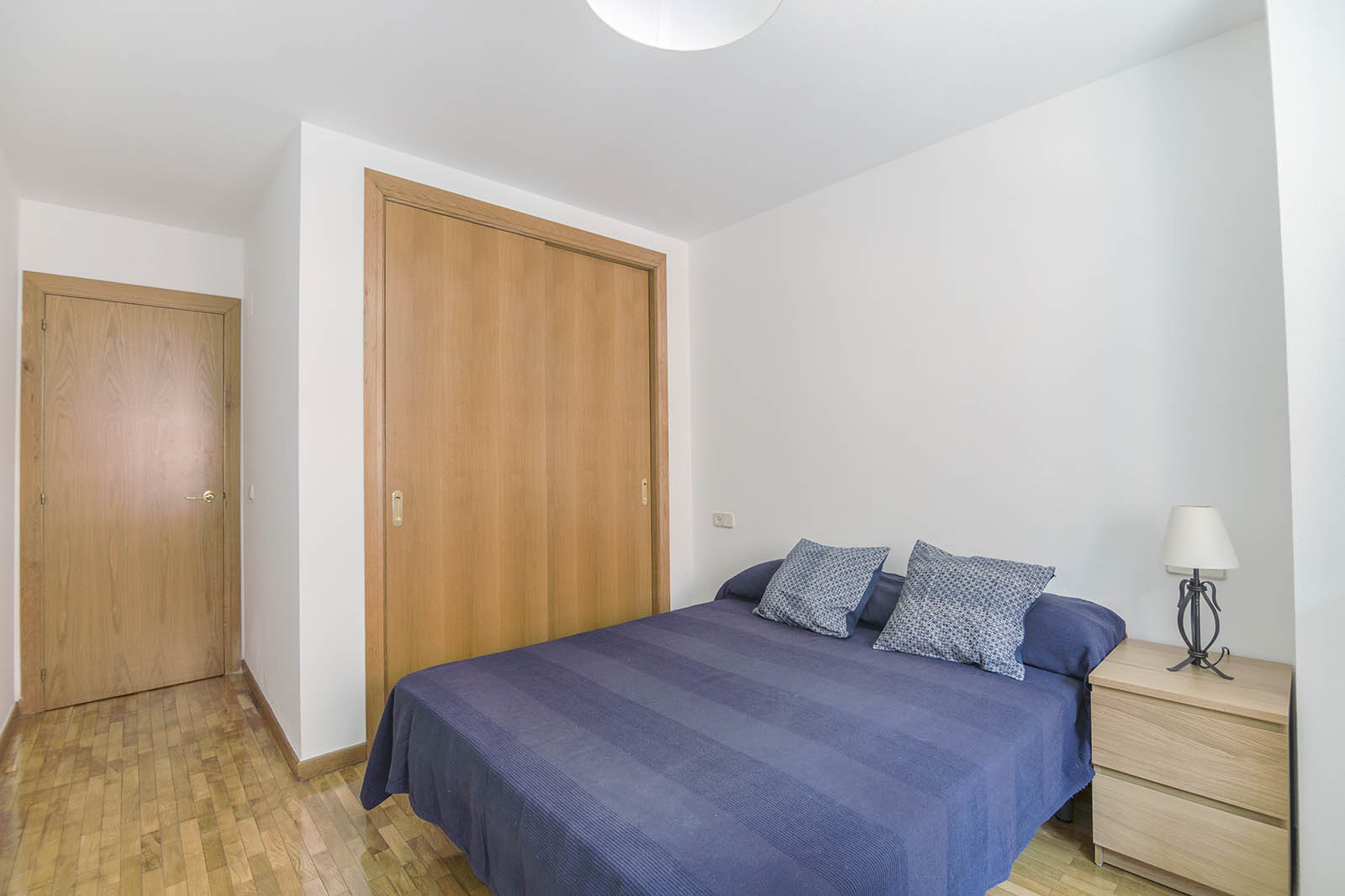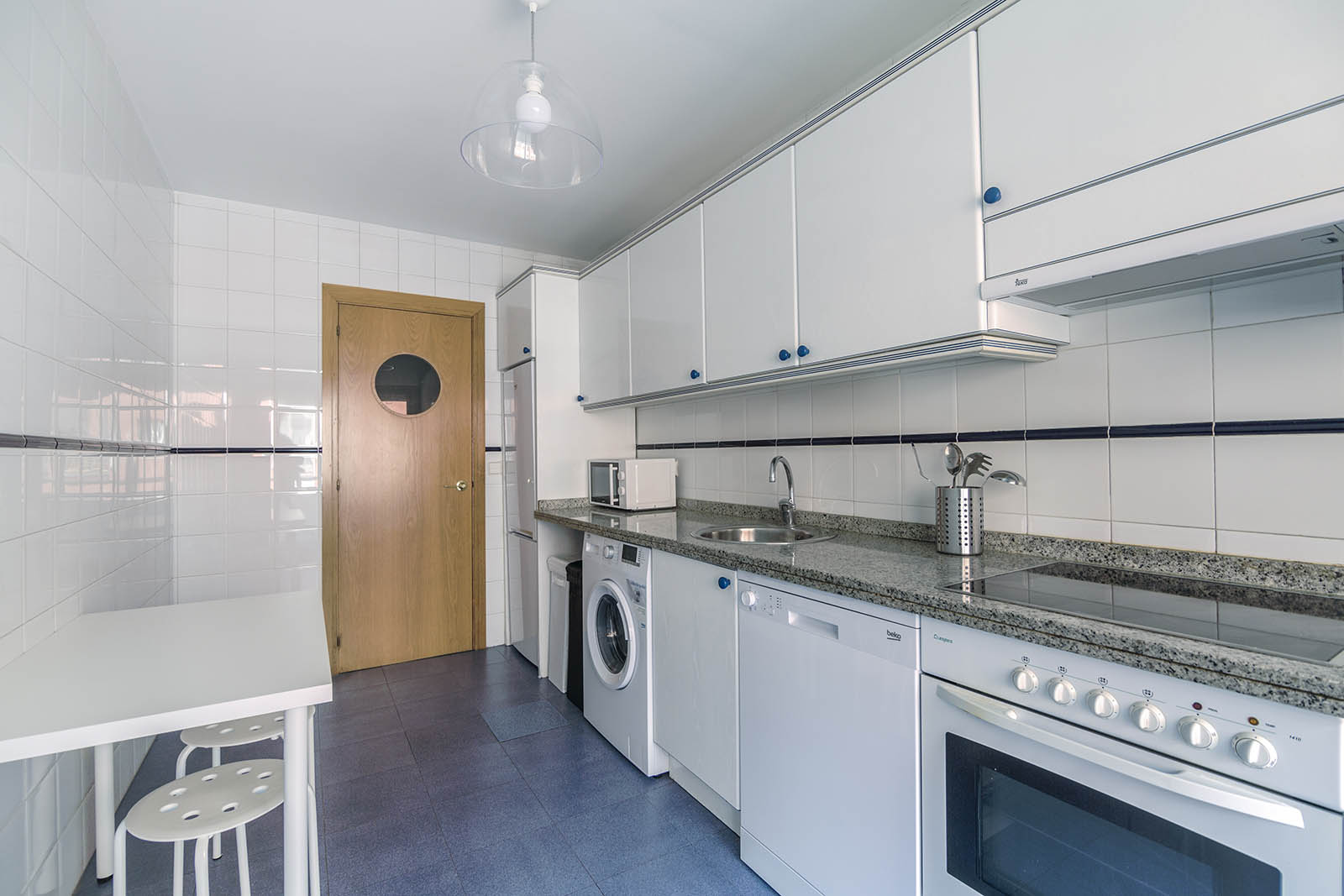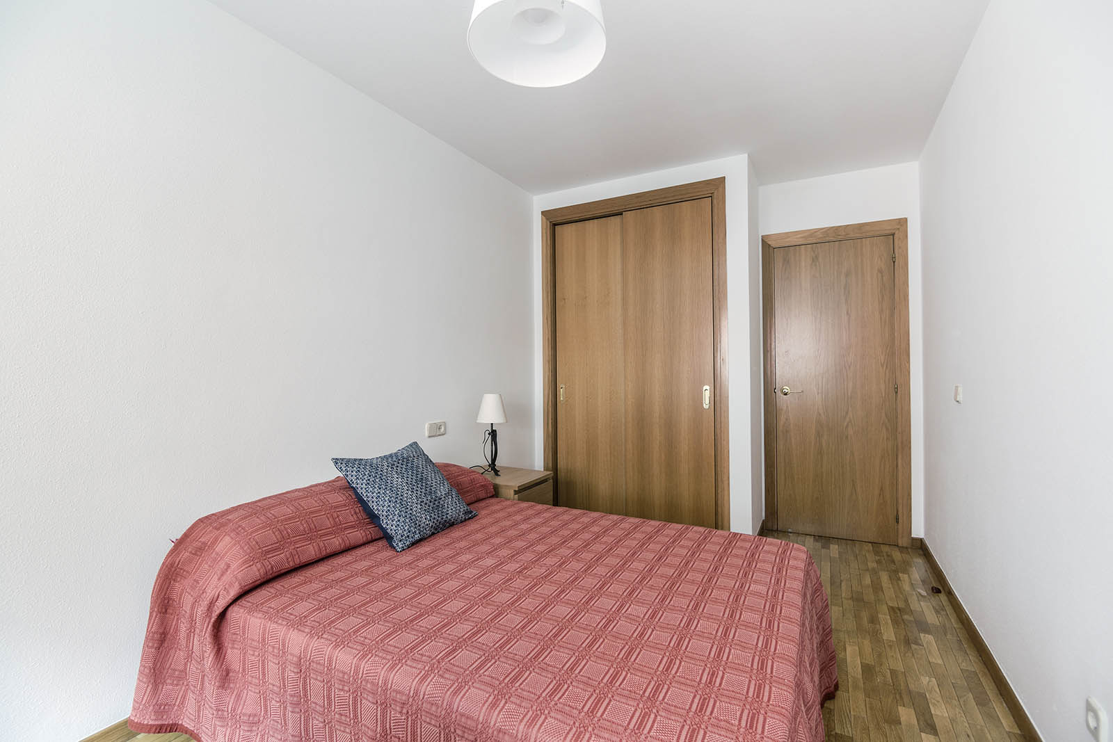 Piso luminoso y tranquilo. Dos habitaciones amplias, con cama matrimonial y armarios empotrados. Terraza exterior en el salón y otra pequeña a patio en la cocina.