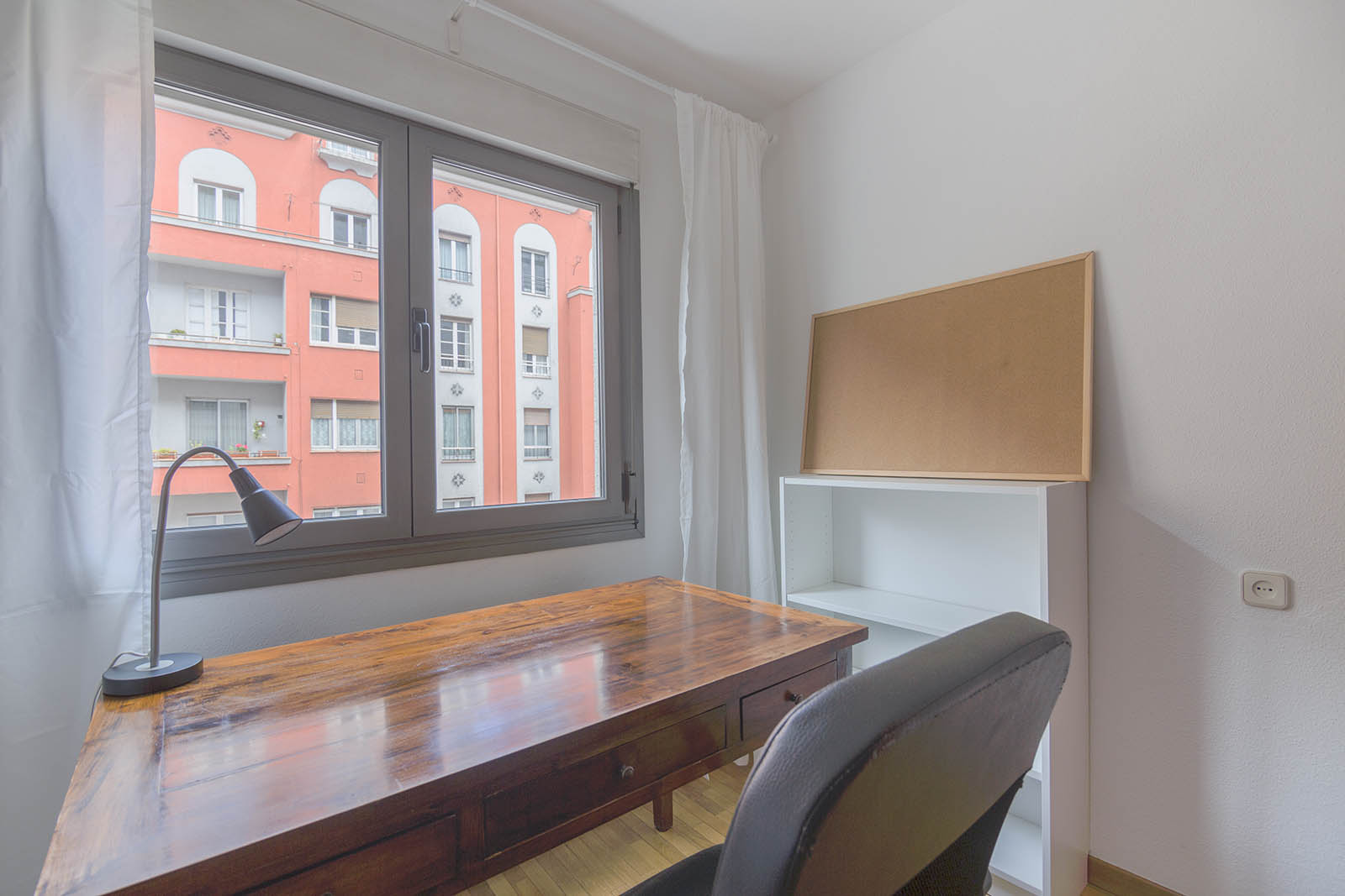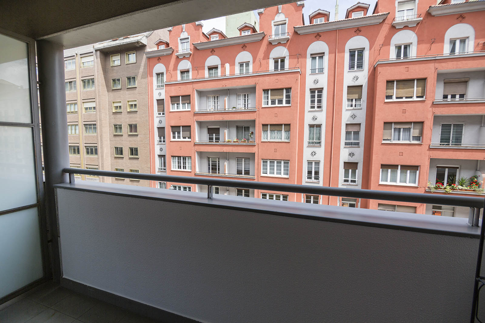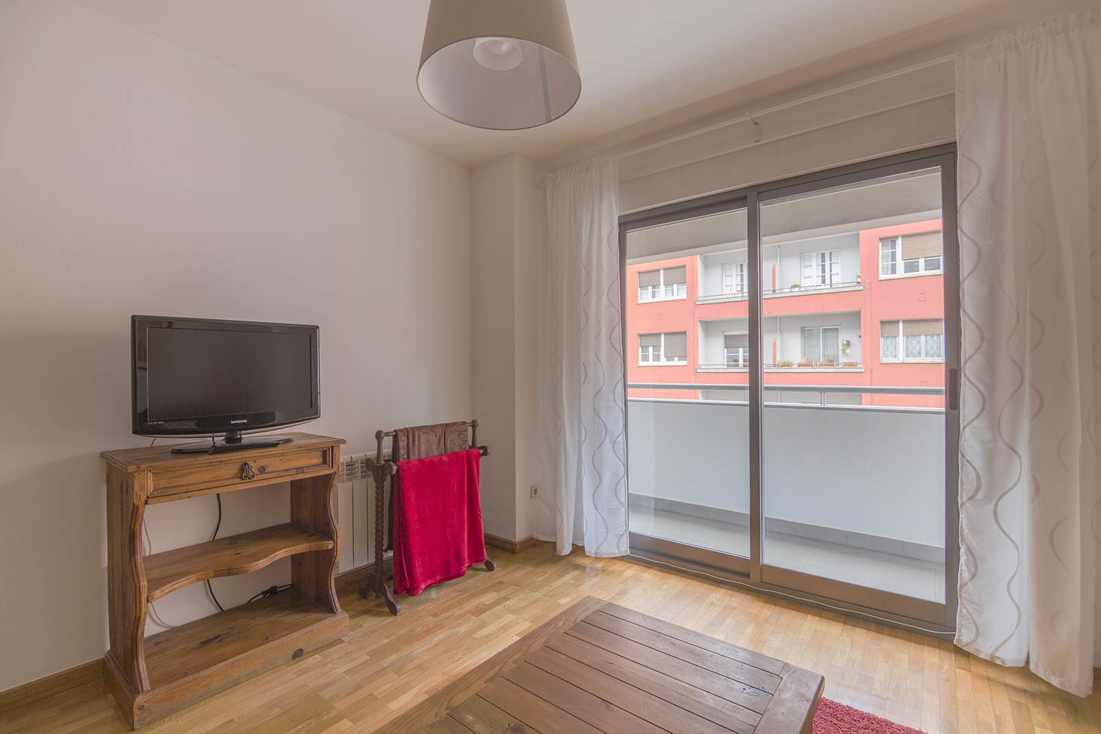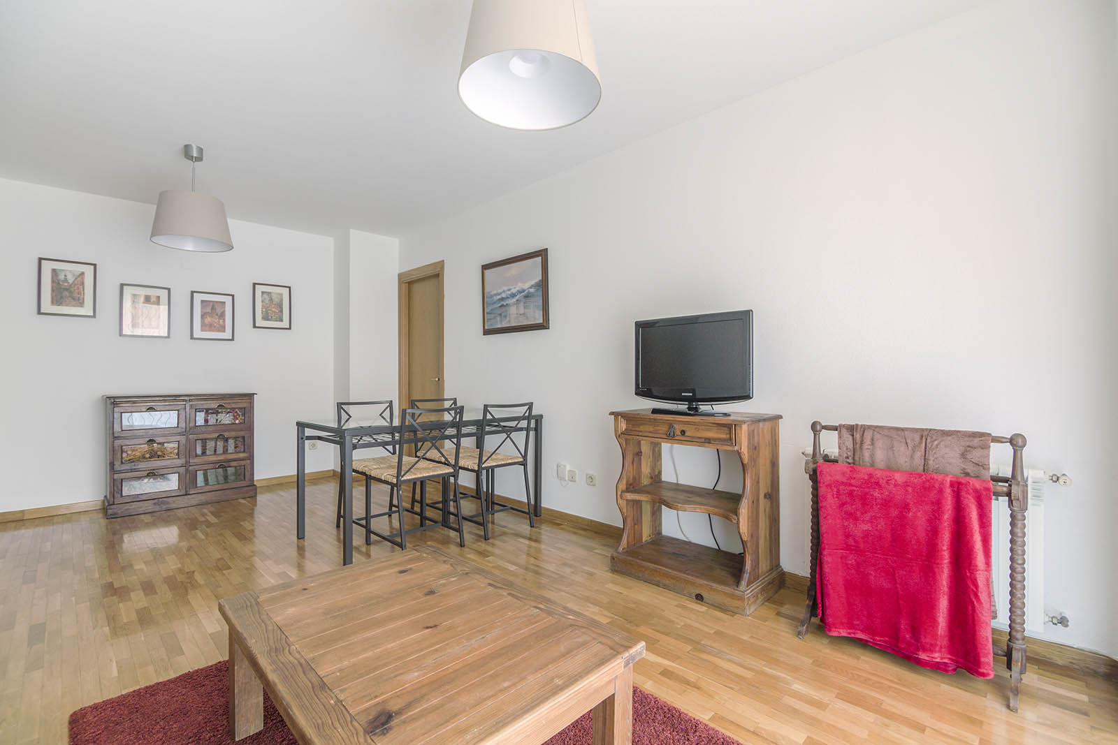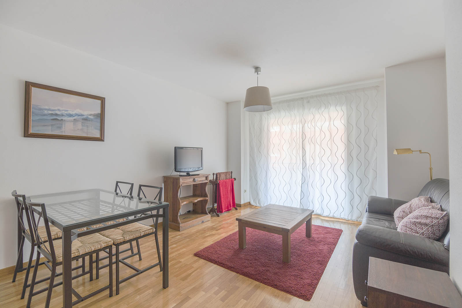 Piso luminoso y tranquilo. Dos habitaciones amplias, con cama matrimonial y armarios empotrados. Terraza exterior en el salón y otra pequeña a patio en la cocina.