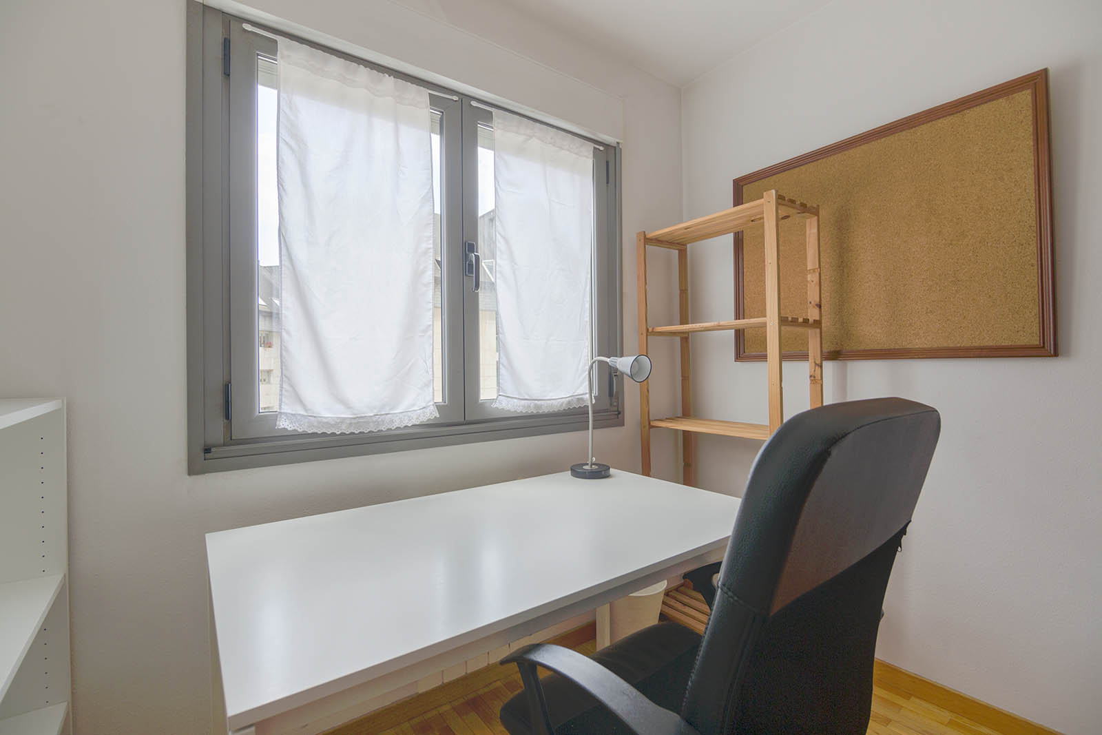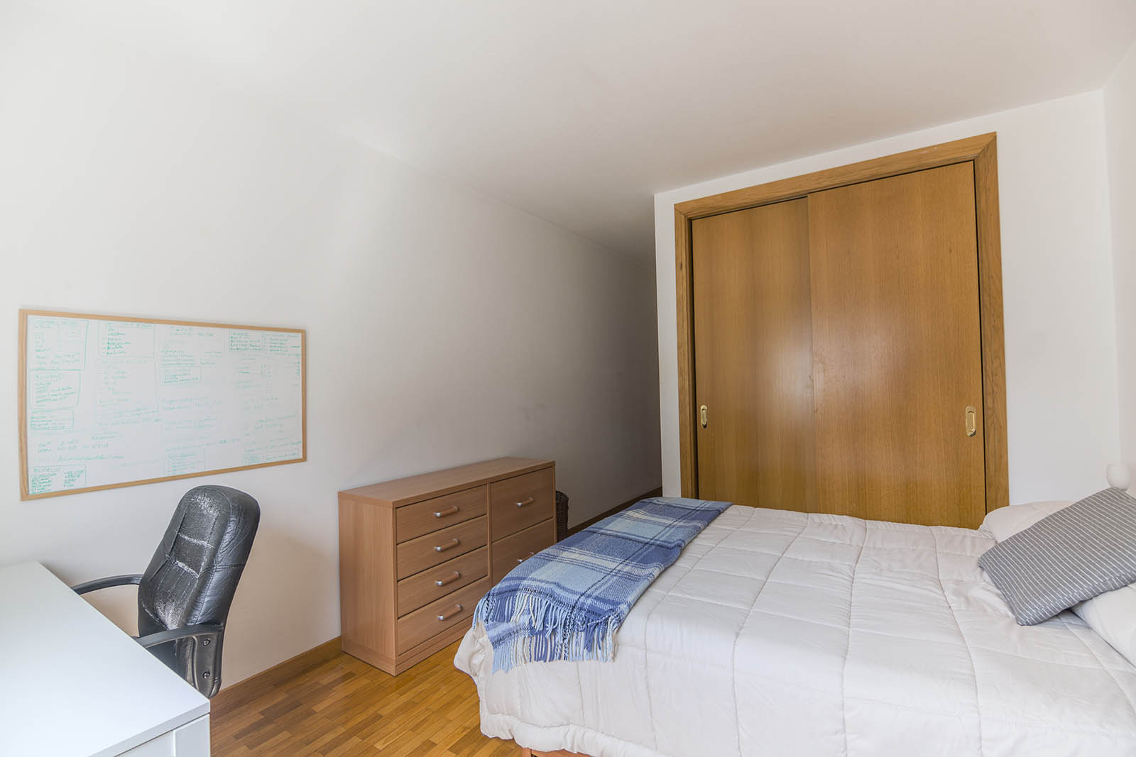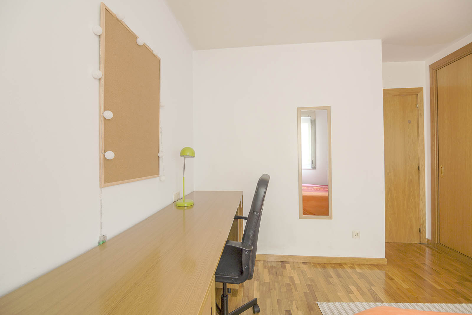 Piso muy luminoso y tranquilo. Tres habitaciones amplias y dos baños, uno de ellos dentro de la habitación principal. Todas las habitaciones tienen cama grande y armarios empotrados, la habitación 3 es interior pero tiene una mesa de casi 3m, el sueño de cualquier estudiante.