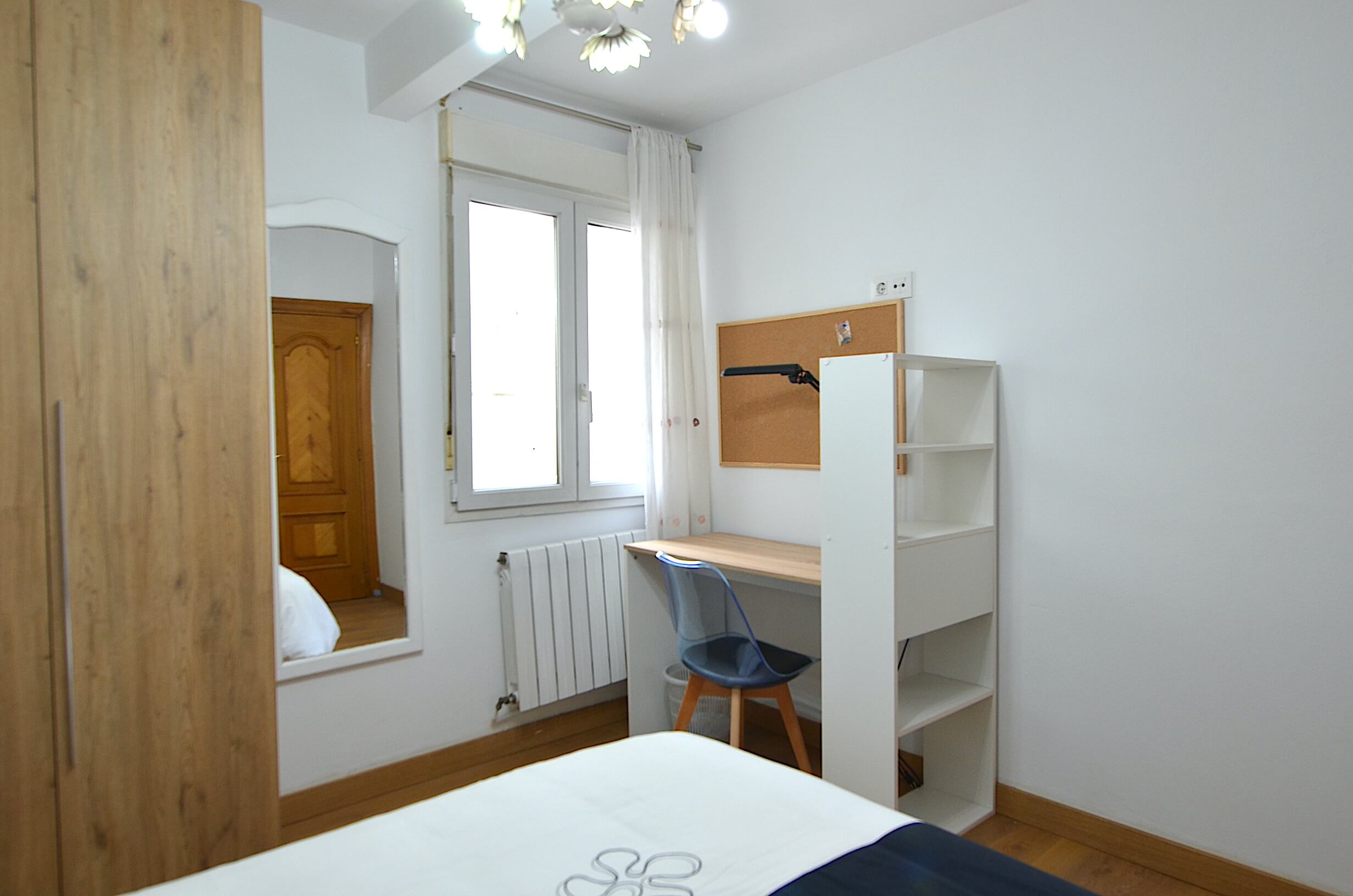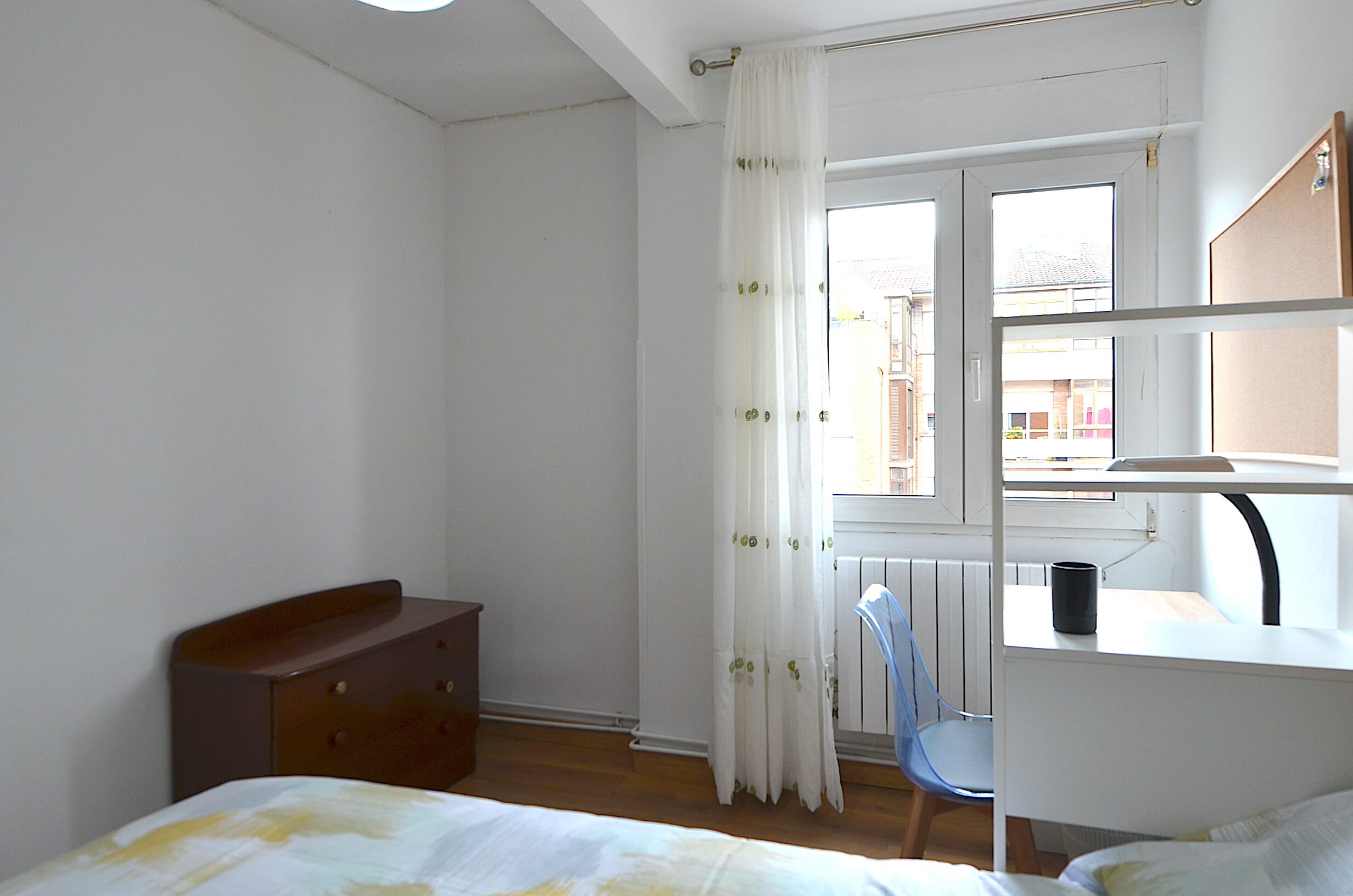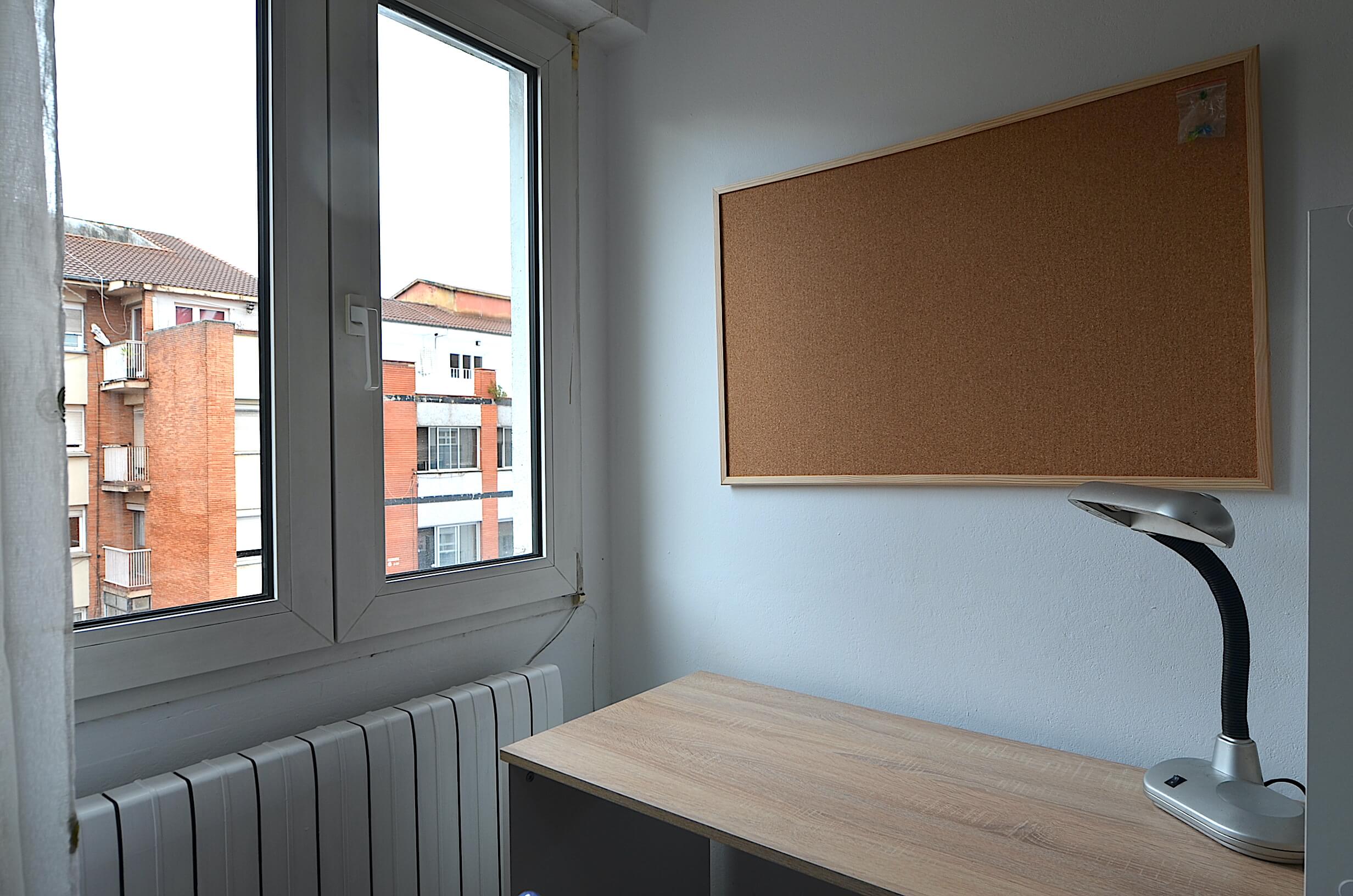 Las dos habitaciones disponen de zona de estudio con mesa, silla, estanteria, flexo, corcho, papelera, etc…