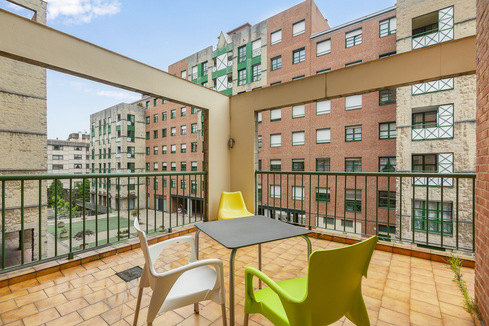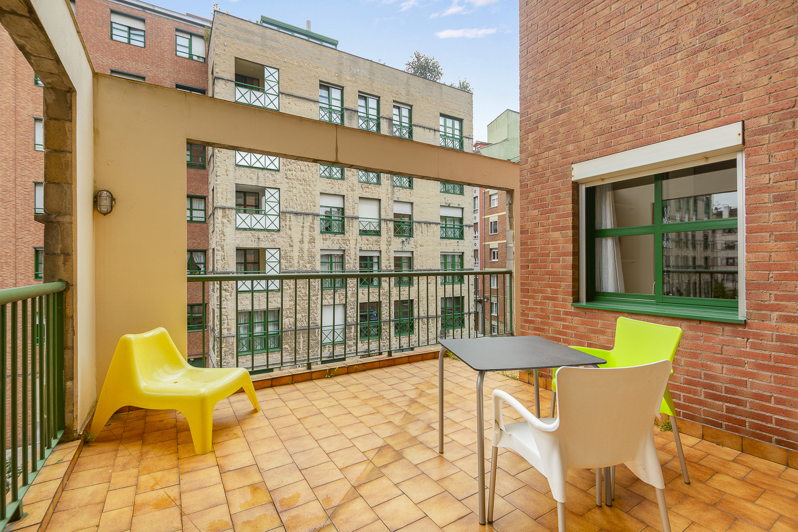 Nuestra Residencia está situada en la calle Sacramento nº15A, a 100 metros o 3 min. a pie de la Academia Mir Asturias. Se trata de un edificio de seis plantas y 55 habitaciones individuales, todas ellas equipadas con baño privado.