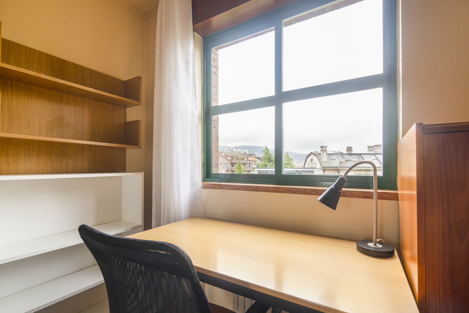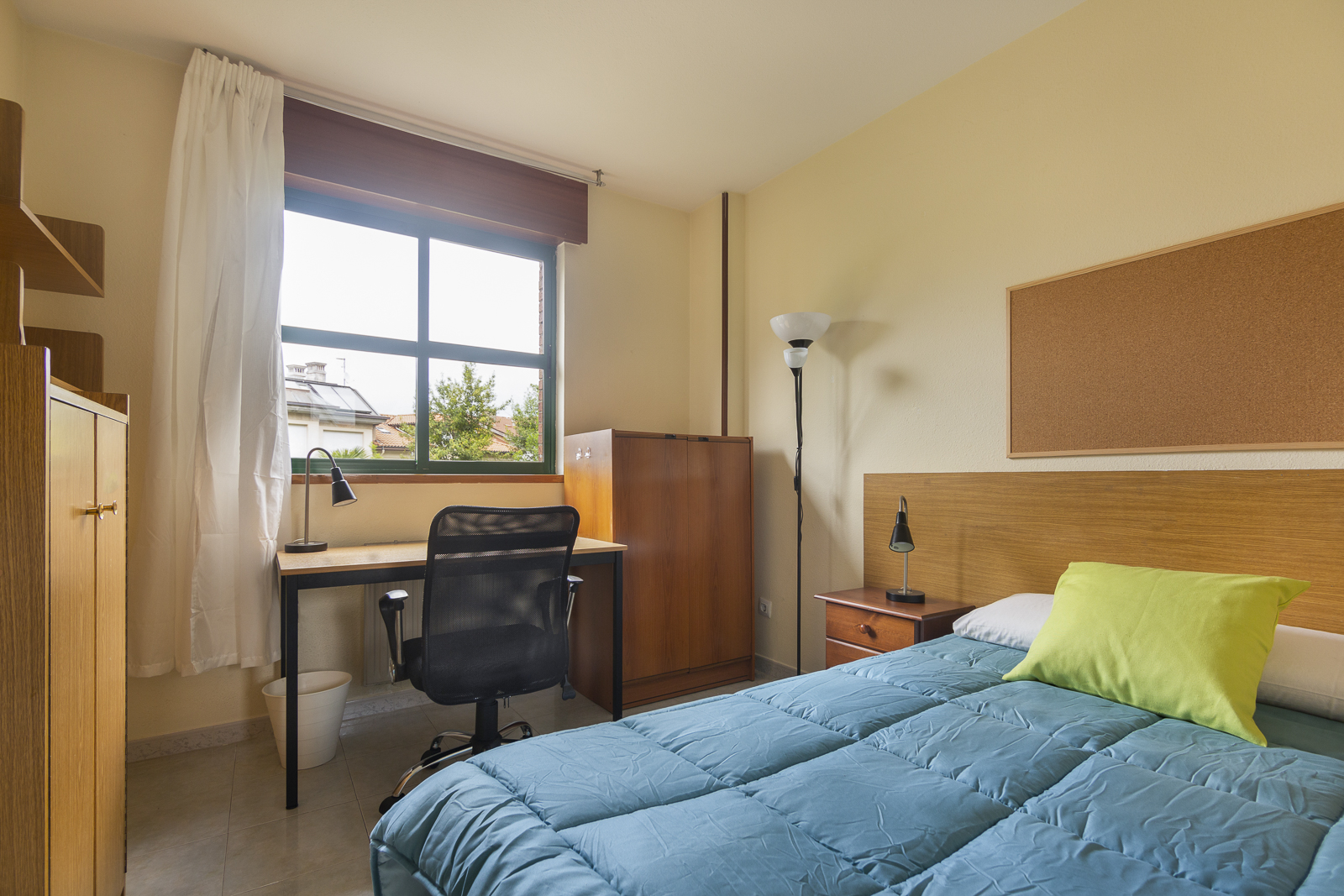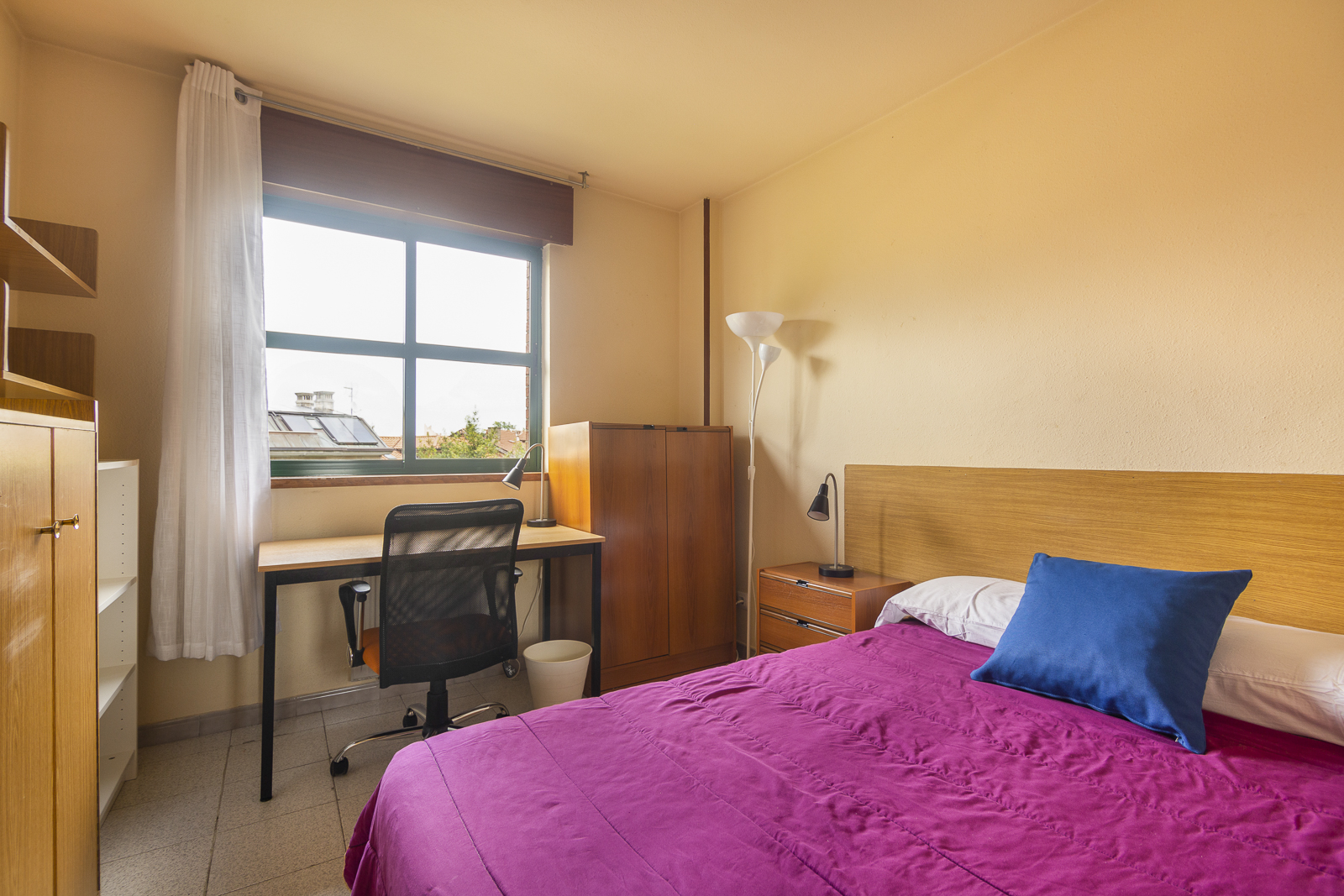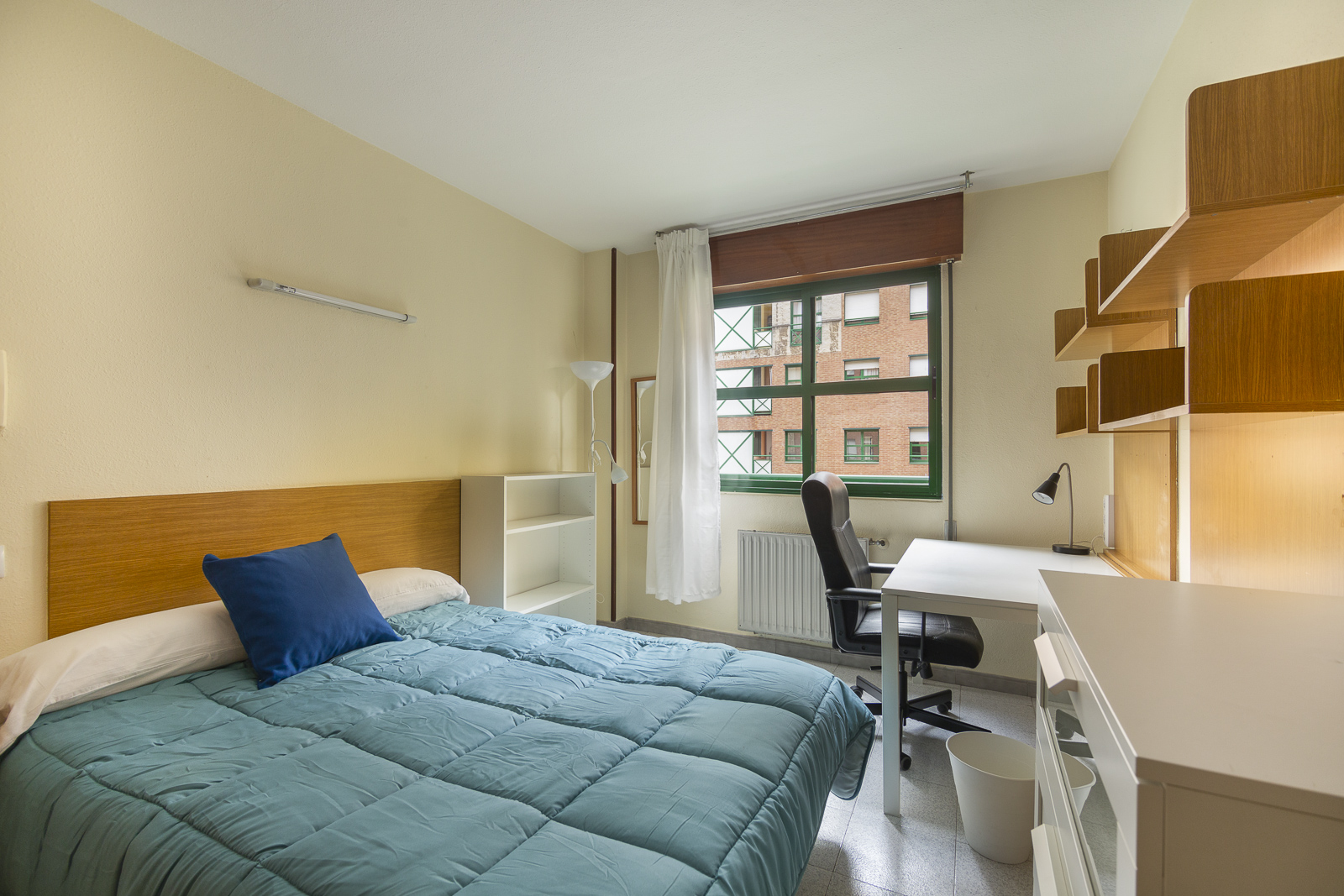 Todas las habitaciones de la Residencia son individuales y están equipadas con mesa de estudio grande, silla ergonómica, estantería, papelera, panel de corcho y flexo.