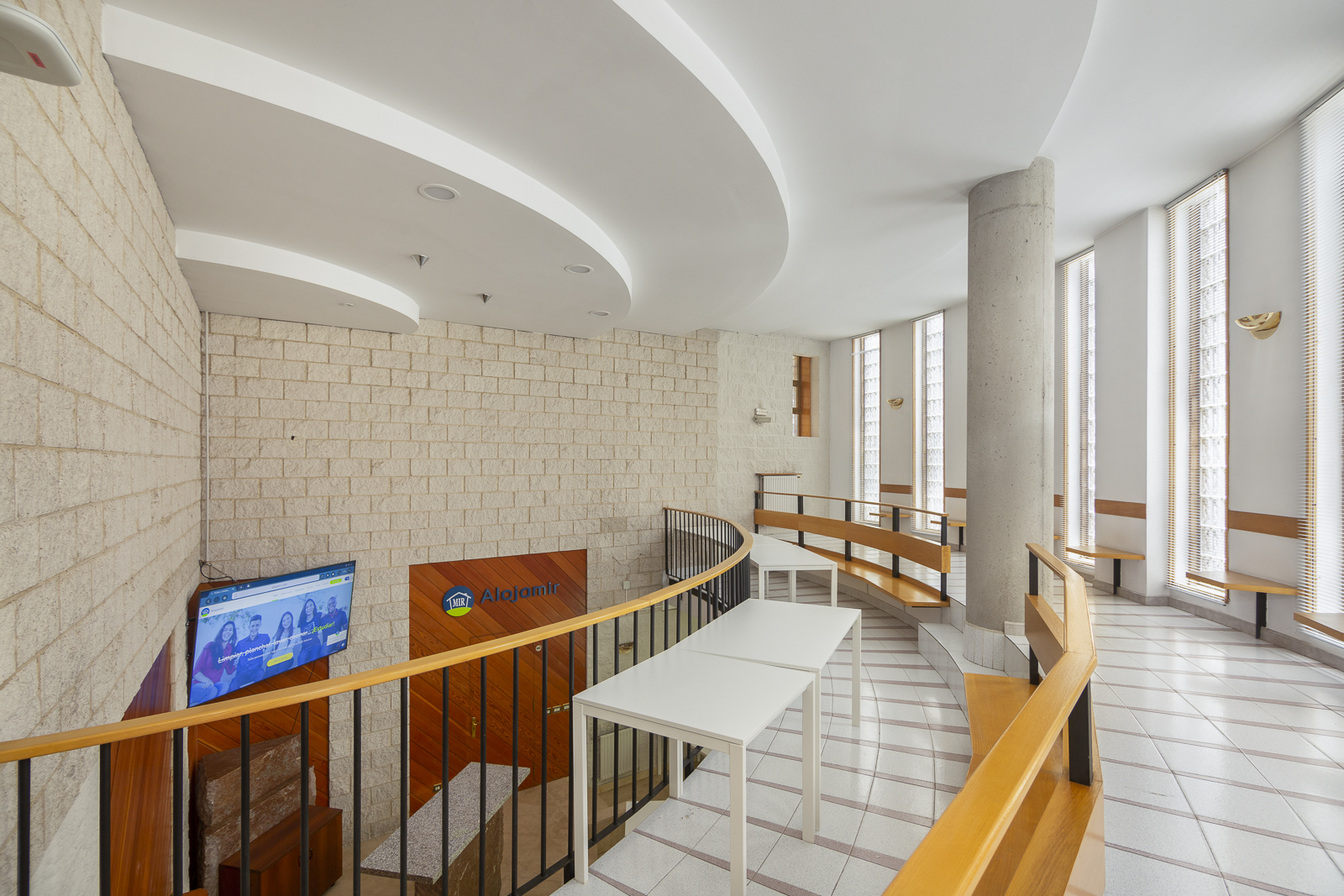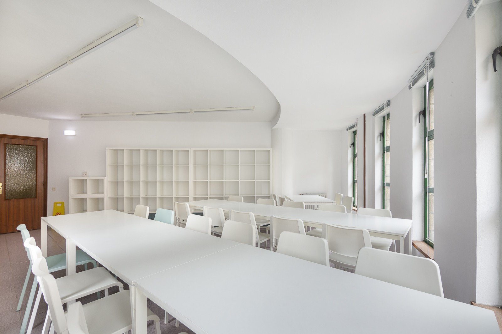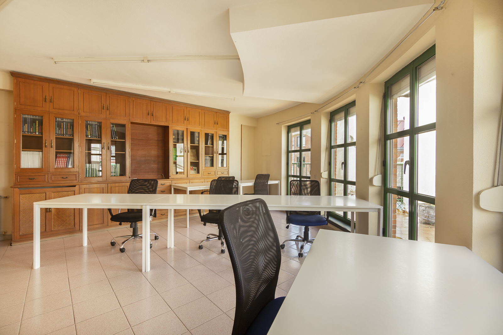 Existen un total de seis salas de estudio, una por cada planta, y un salón principal con televisión panorámica que se puede utilizar para el estudio o para seguir las clases online.