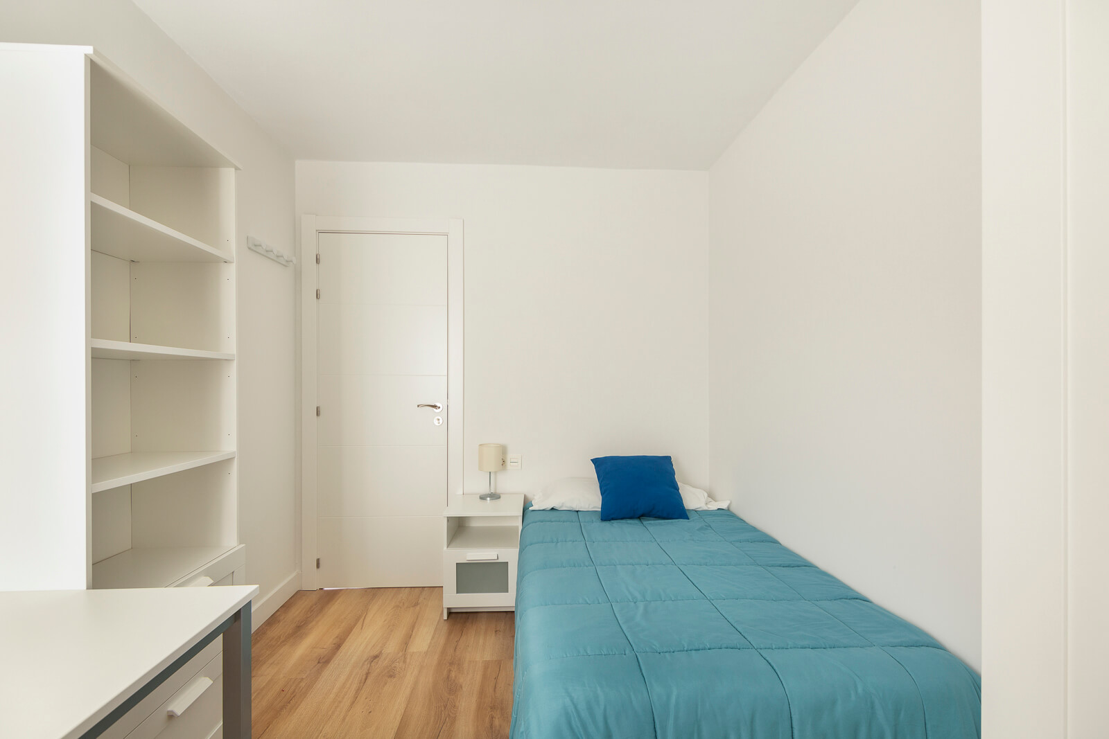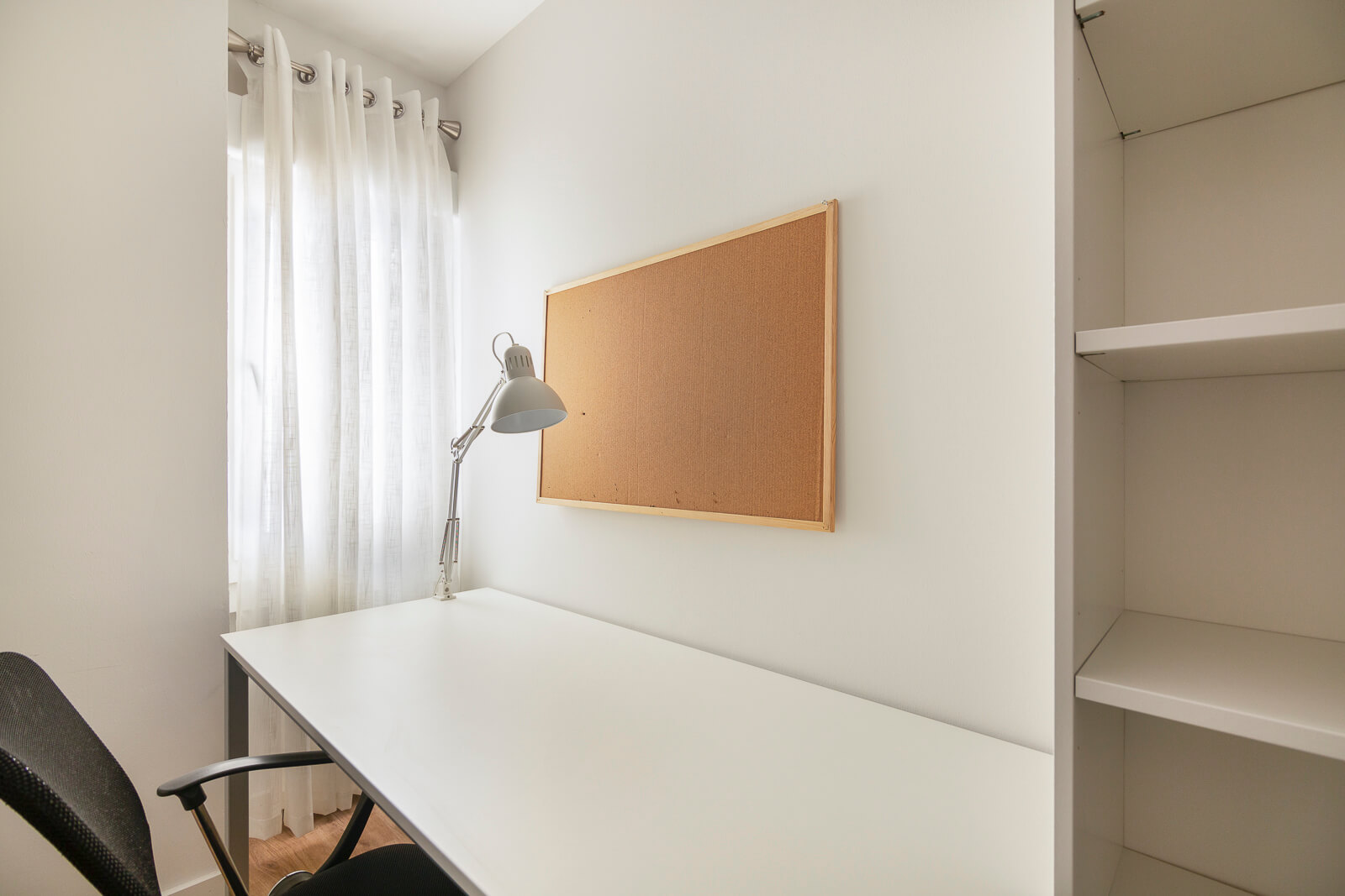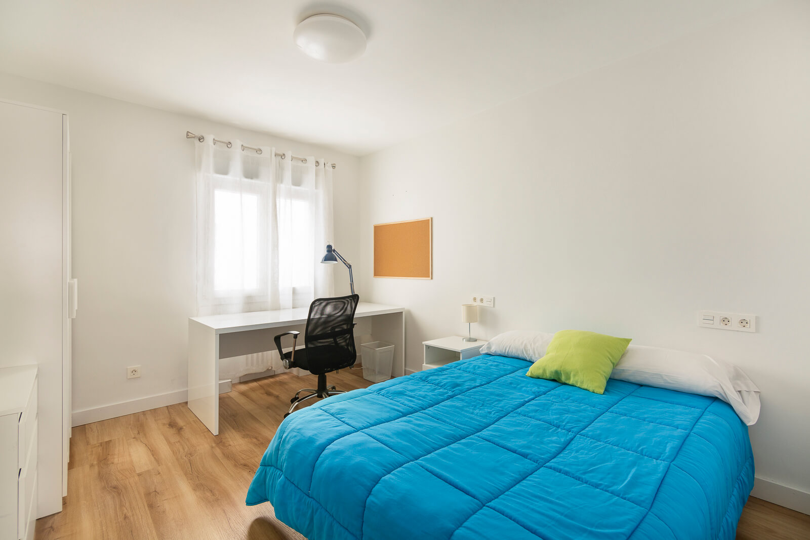 Todas las habitaciones disponen de mobiliario perfectamente adaptado al estudio: mesa grande de estudio, silla ergonómica, flexo con bombilla led de gran luminosidad, corcho para apuntes, estantería para almacenaje de libros, y también un armario de tres puertas, una cómoda, mesita, y papelera. Dispone de dos camas dobles de 1,35cm y una cama individual de 1,05cm. También proporcionamos ropa de cama y un juego de toallas.