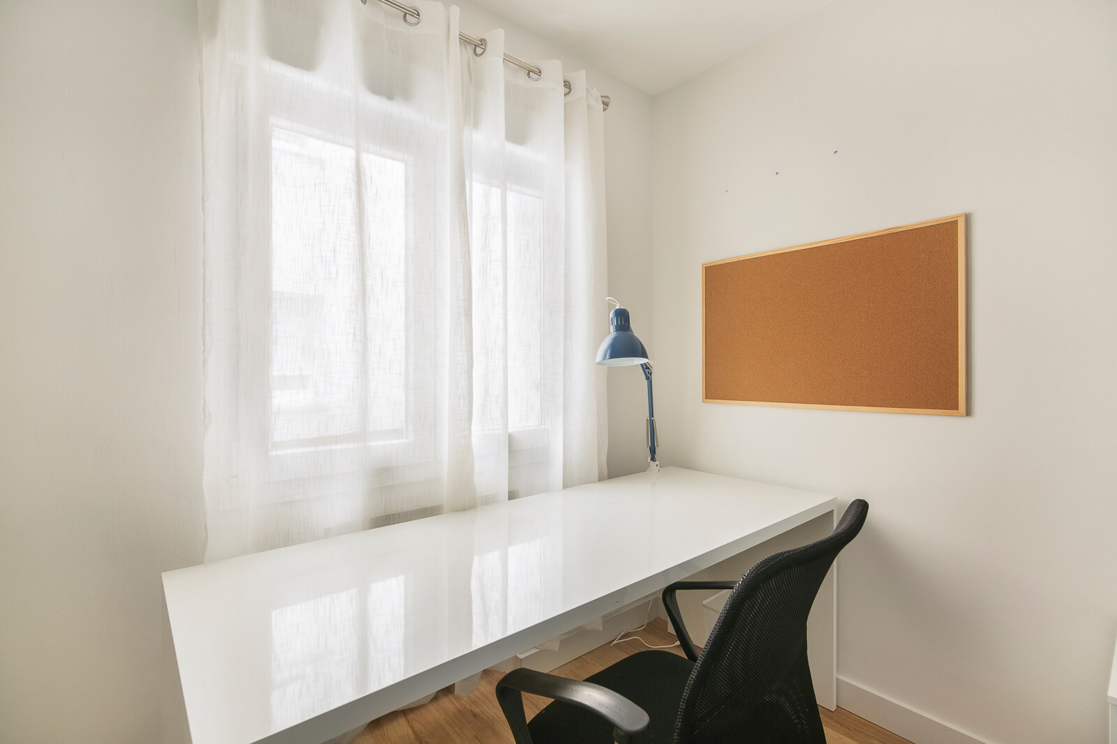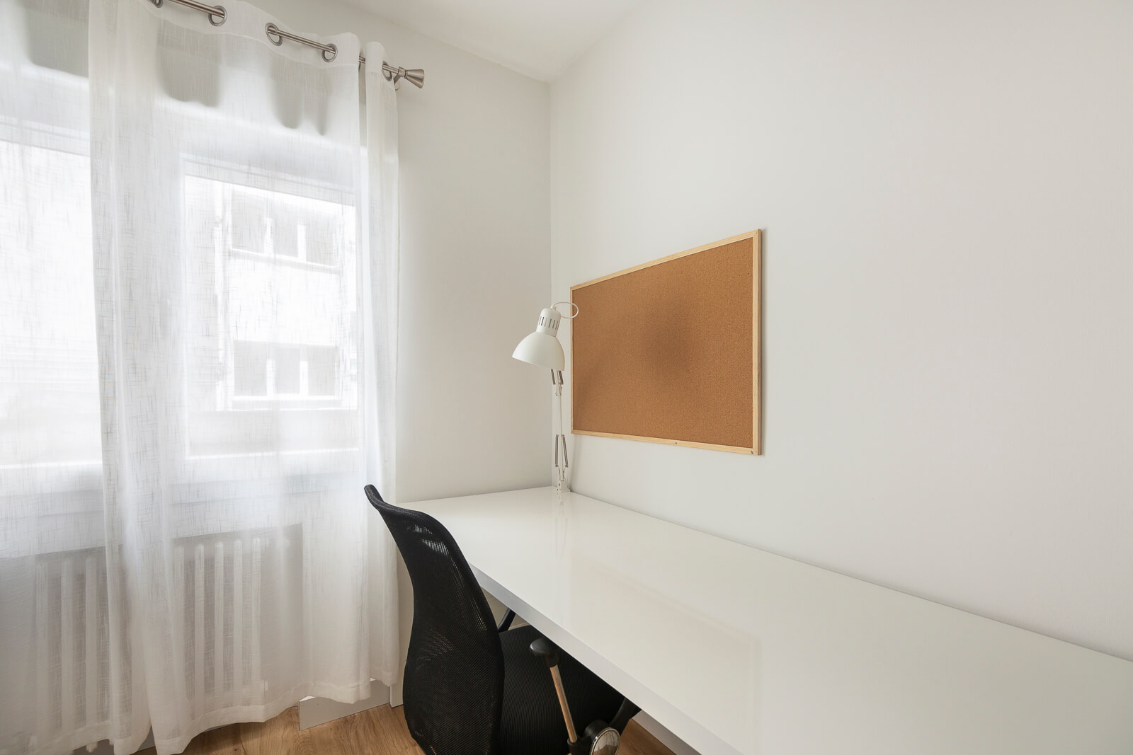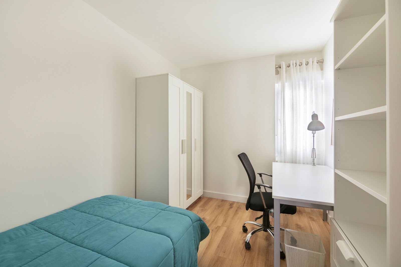 Todas las habitaciones disponen de mobiliario perfectamente adaptado al estudio: mesa grande de estudio, silla ergonómica, flexo con bombilla led de gran luminosidad, corcho para apuntes, estantería para almacenaje de libros, y también un armario de tres puertas, una cómoda, mesita, y papelera. Dispone de dos camas dobles de 1,35cm y una cama individual de 1,05cm. También proporcionamos ropa de cama y un juego de toallas.