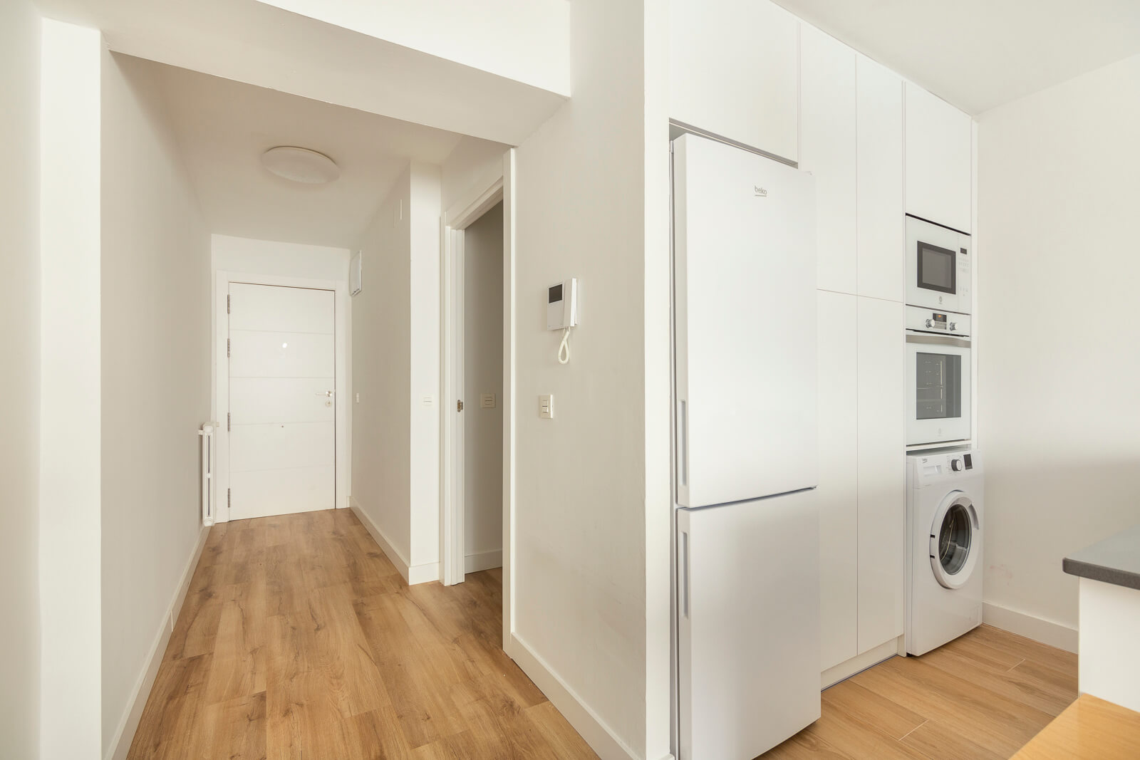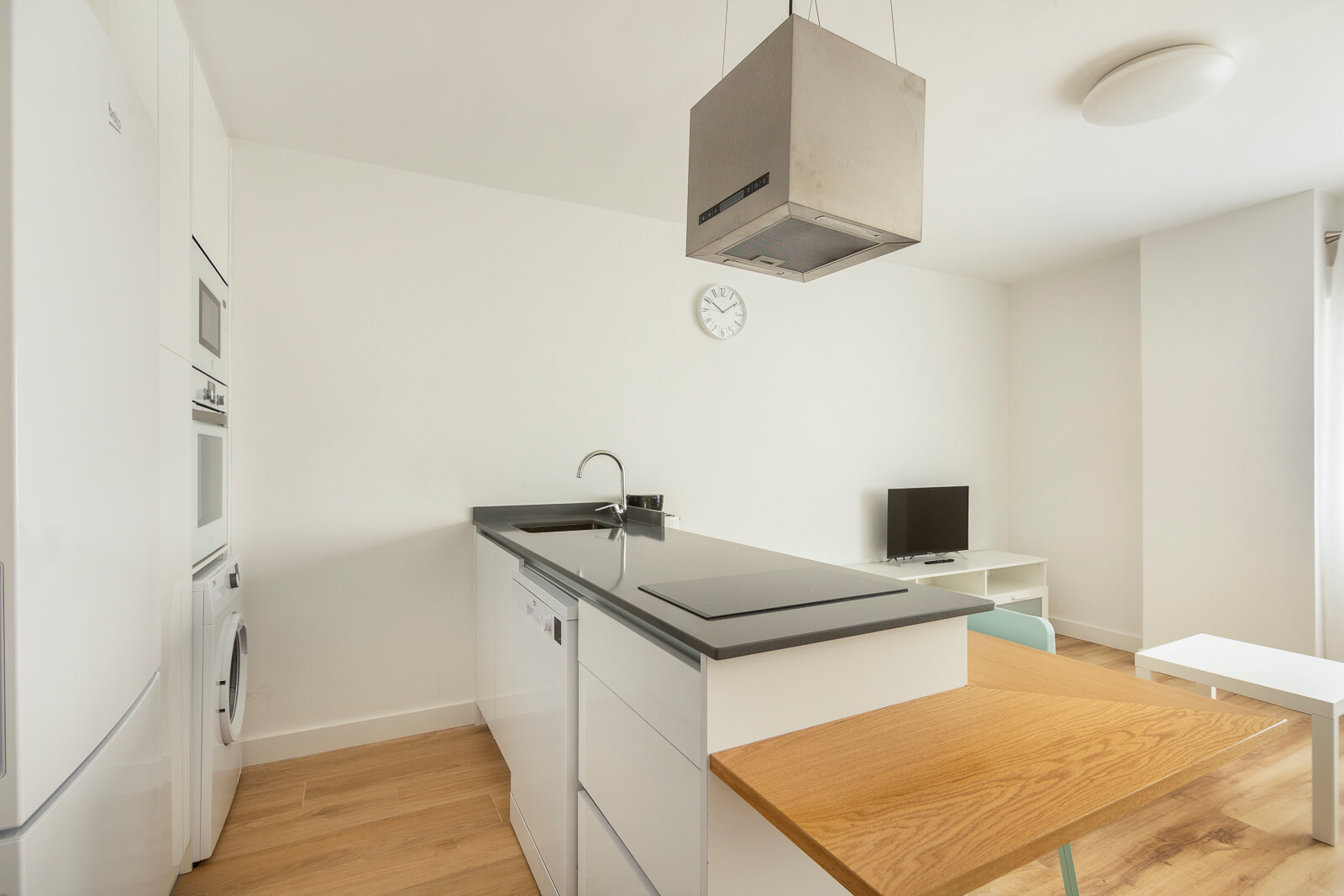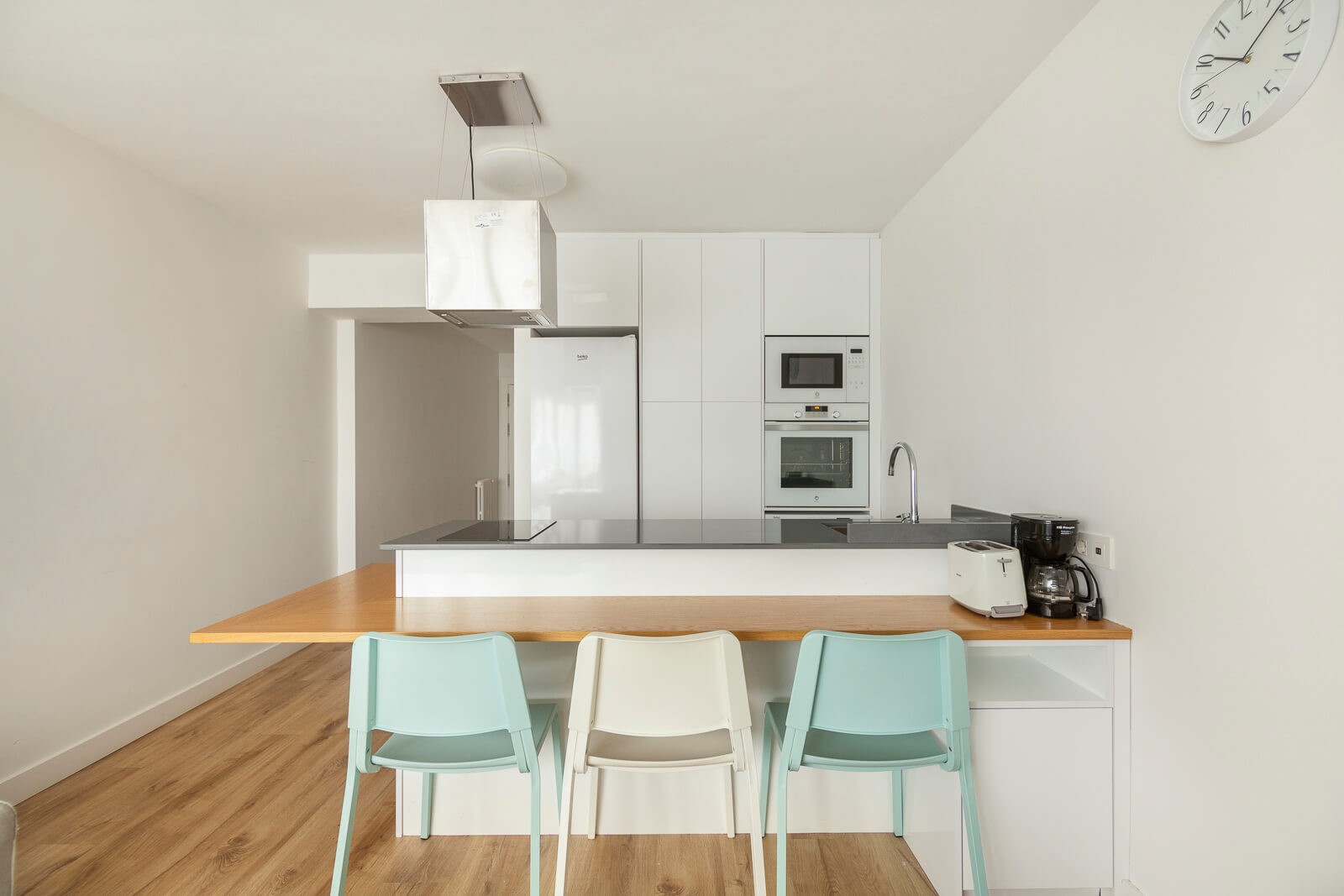 La cocina está equipada con un menaje básico del hogar, y cuenta con nevera, lavavajillas, lavadora, horno, microondas, campana extractora, vitrocerámica digital, cafetera y tostadora. En el salón, una smart tv de pantalla plana para los momentos de relax.