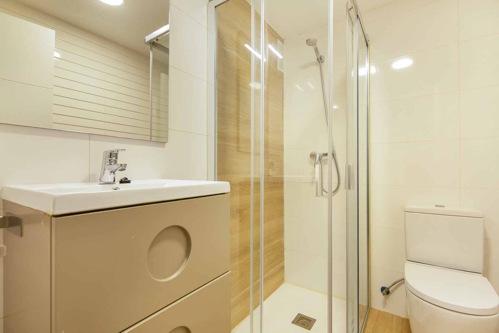 Los cuartos de baño están equipados con plato de ducha cerámico y mampara corredera, lavabo, wc, toallero calefactable y secador de pelo.