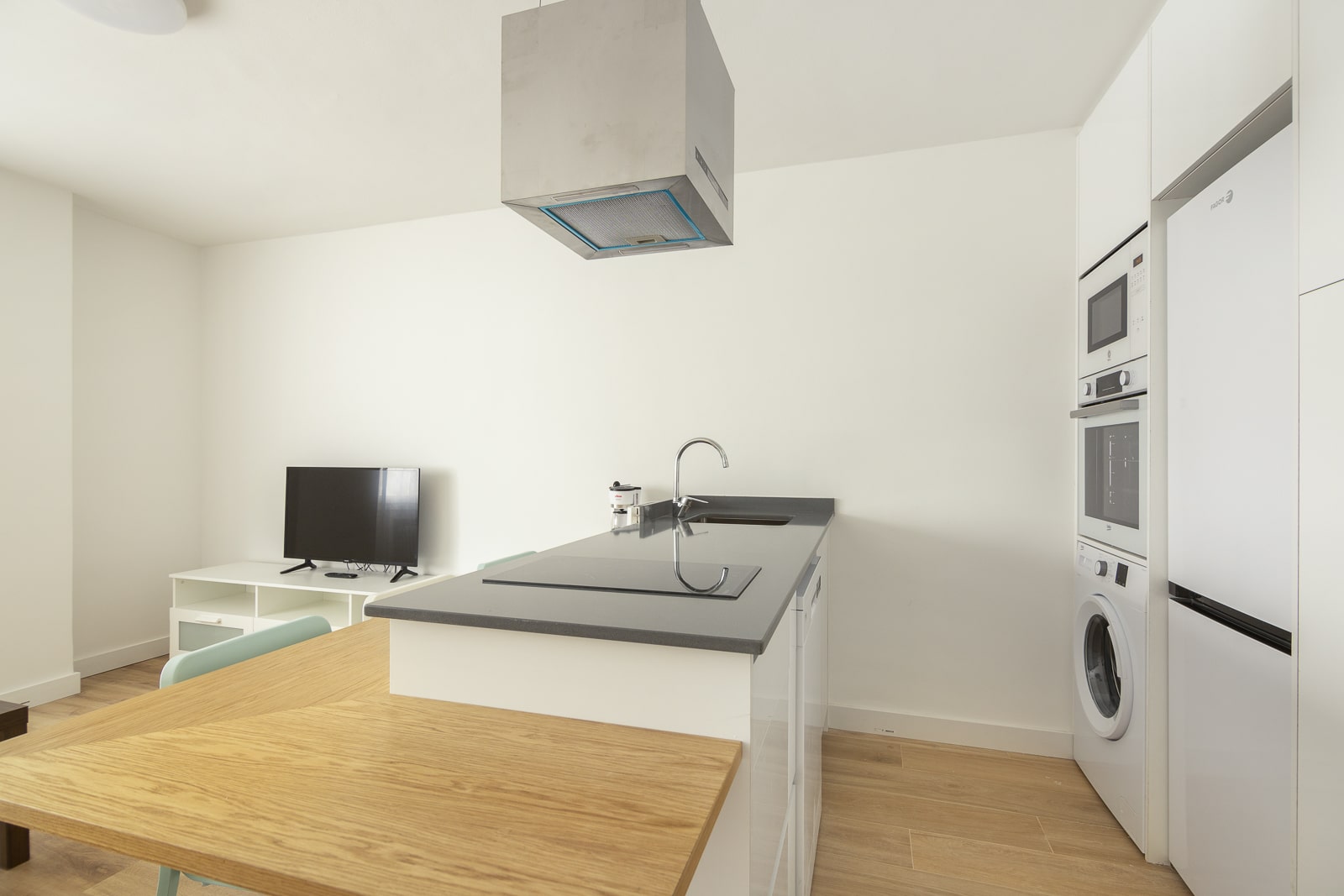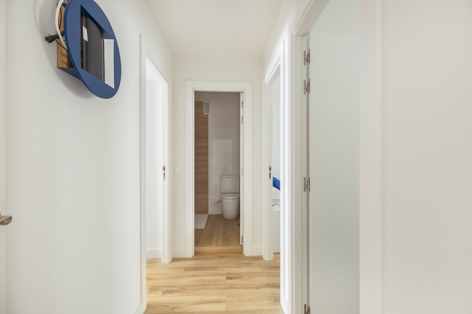 La cocina está equipada con un menaje básico del hogar, y cuenta con nevera, lavavajillas, lavadora, horno, microondas, campana extractora, vitrocerámica digital, cafetera y tostadora. En el salón, una smart tv de pantalla plana para los momentos de relax.