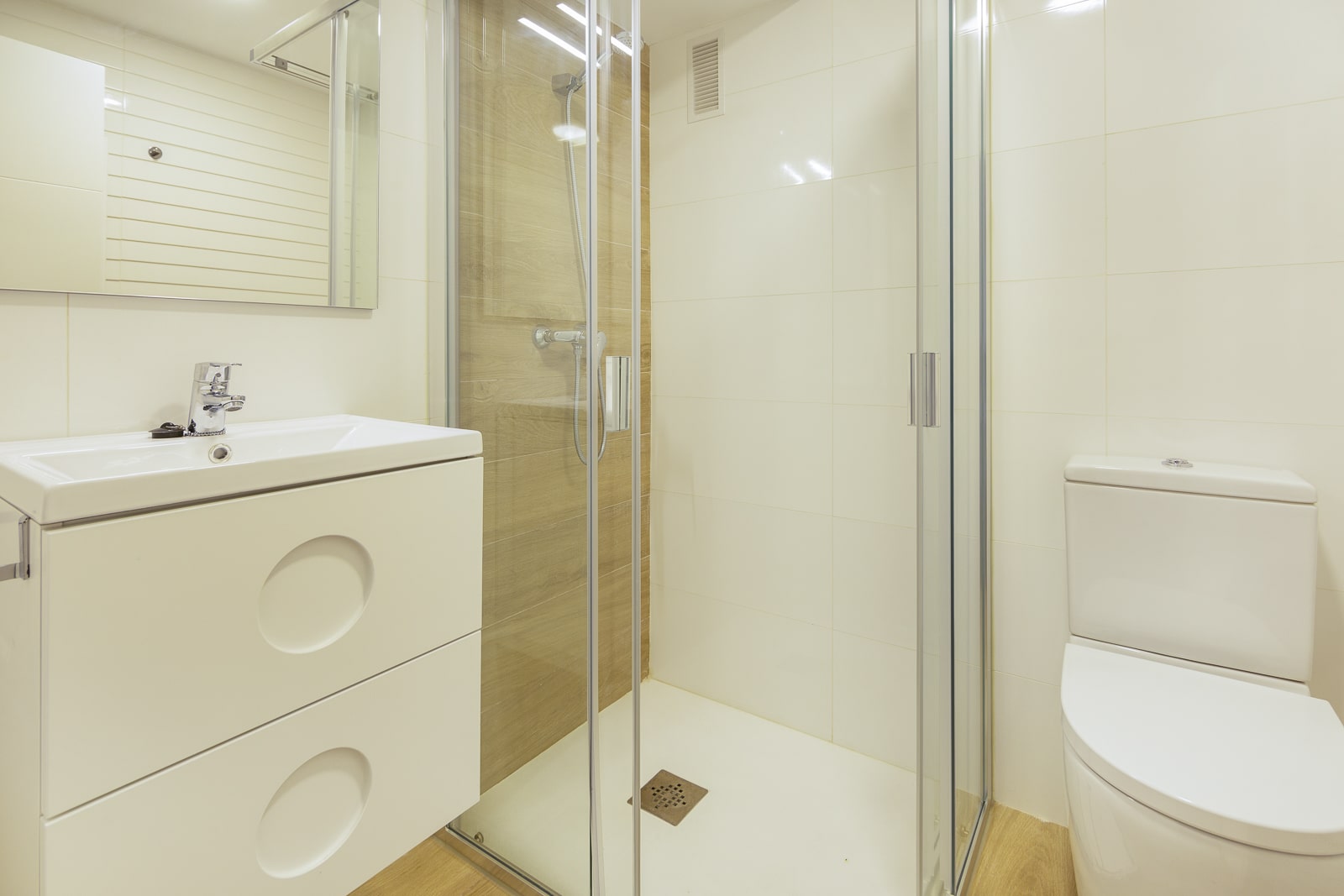 Los cuartos de baño están equipados con plato de ducha cerámico y mampara corredera, lavabo, wc, toallero calefactable y secador de pelo.