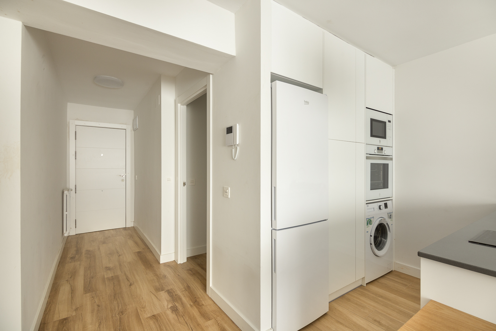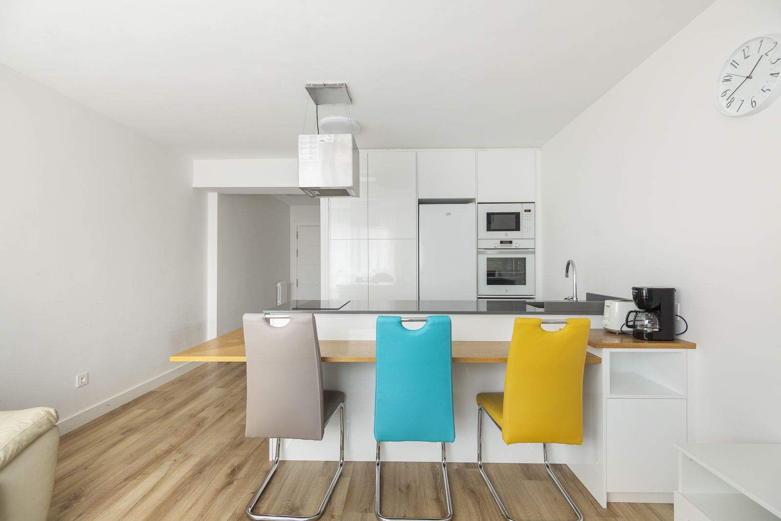 La cocina está equipada con un menaje básico del hogar, y cuenta con nevera, lavavajillas, lavadora, horno, microondas, campana extractora, vitrocerámica digital, cafetera y tostadora. En el salón, una smart tv de pantalla plana para los momentos de relax.