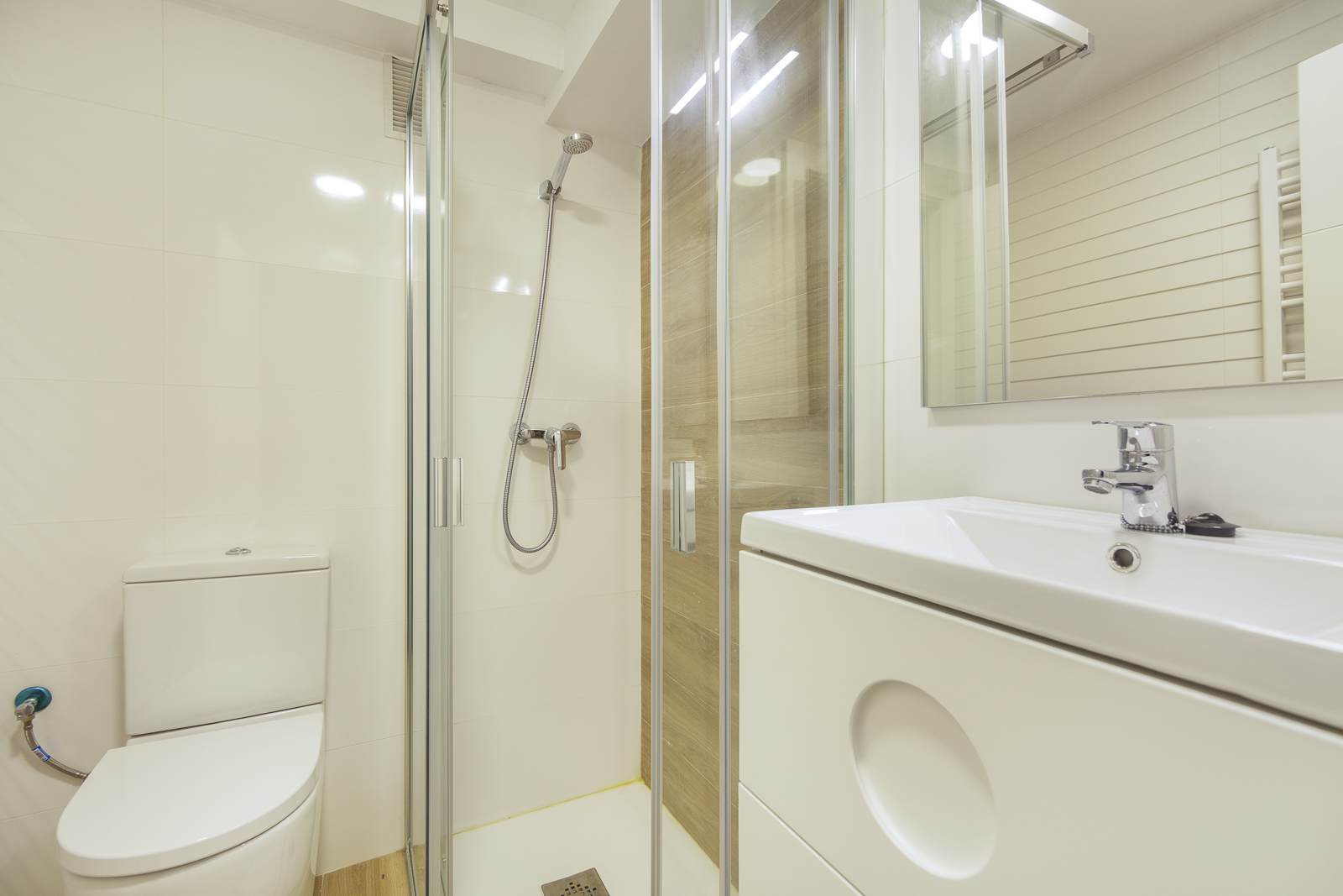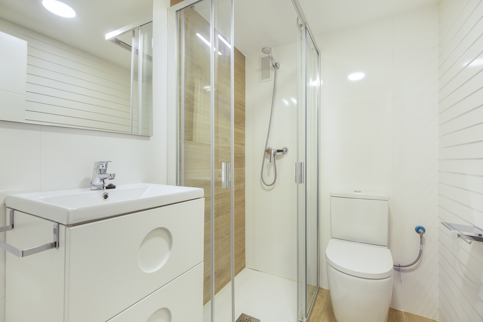 Los cuartos de baño están equipados con plato de ducha cerámico y mampara corredera, lavabo, wc, toallero calefactable y secador de pelo.