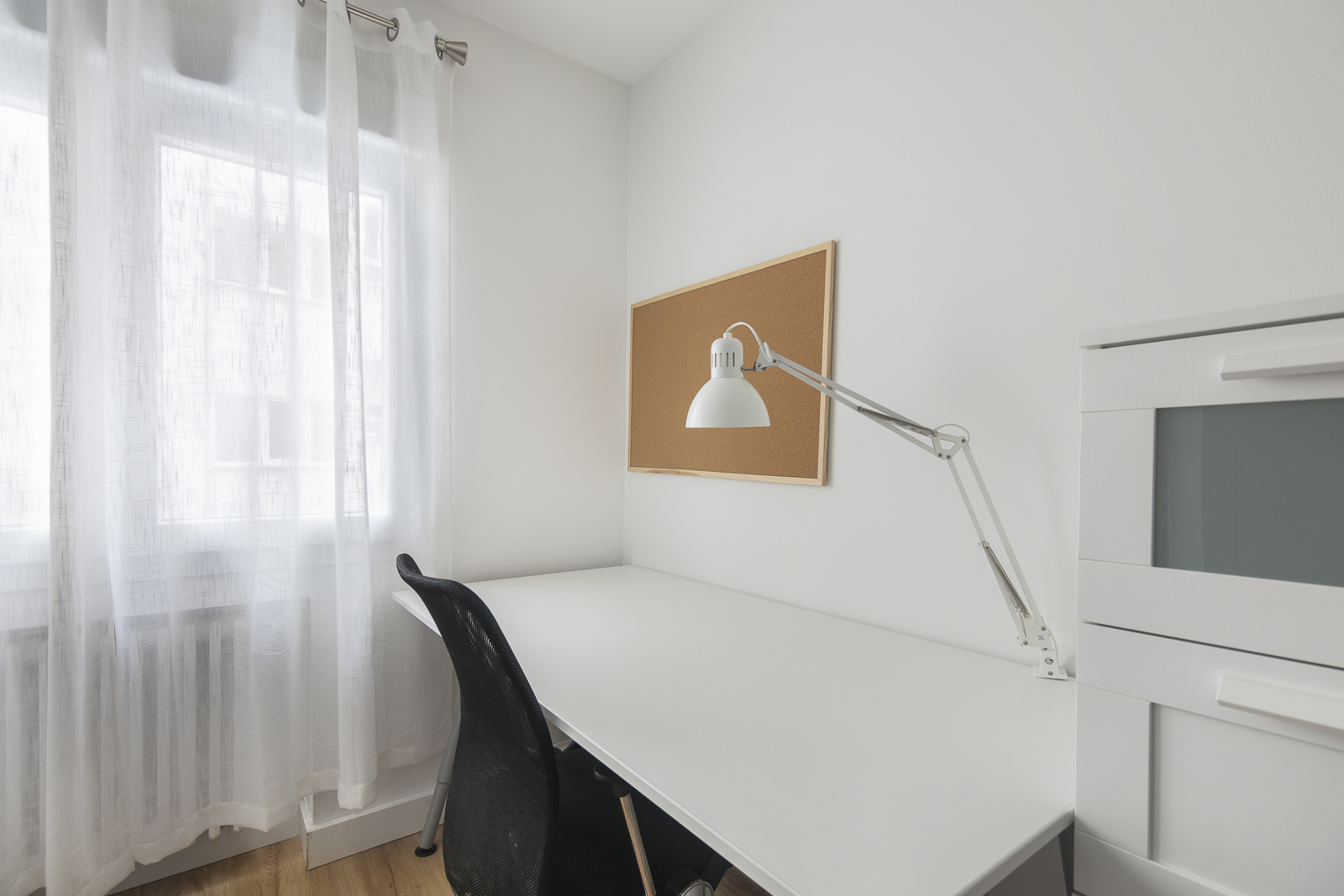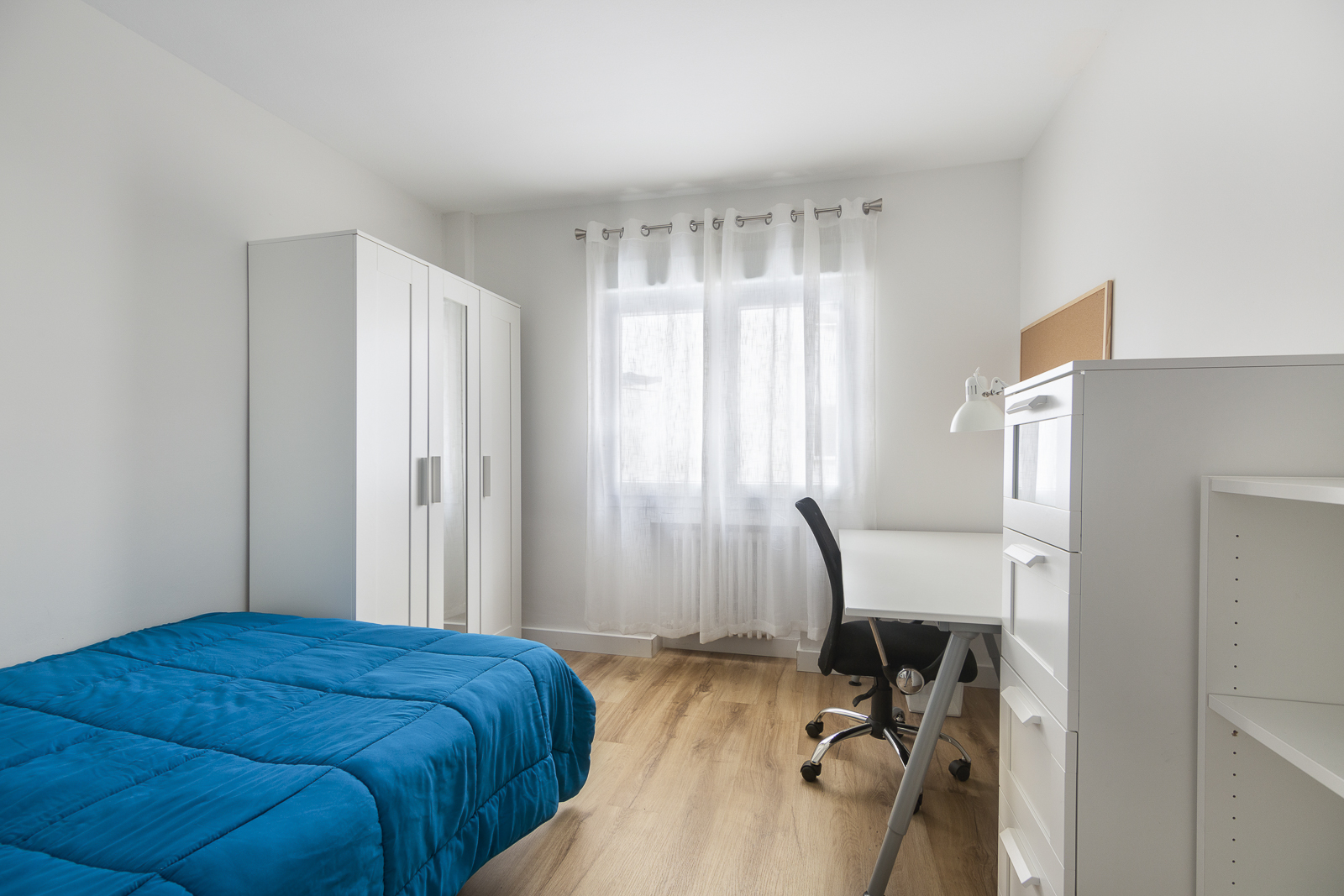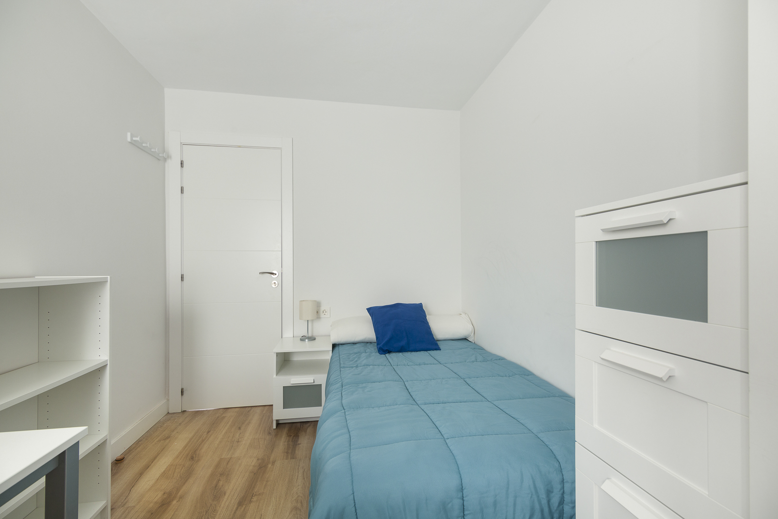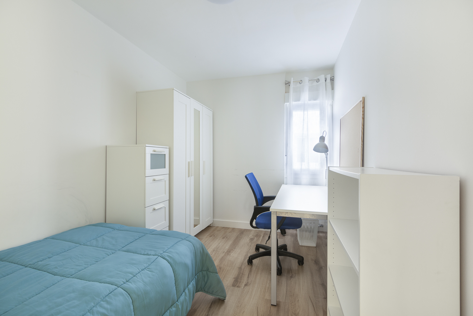 Todas las habitaciones disponen de mobiliario perfectamente adaptado al estudio: mesa grande de estudio, silla ergonómica, flexo con bombilla led de gran luminosidad, corcho para apuntes, estantería para almacenaje de libros, y también un armario de tres puertas, una cómoda, mesita, y papelera. Dispone de dos camas dobles de 1,35cm y otra cama individual de 1,05cm. También proporcionamos ropa de cama y un juego de toallas.