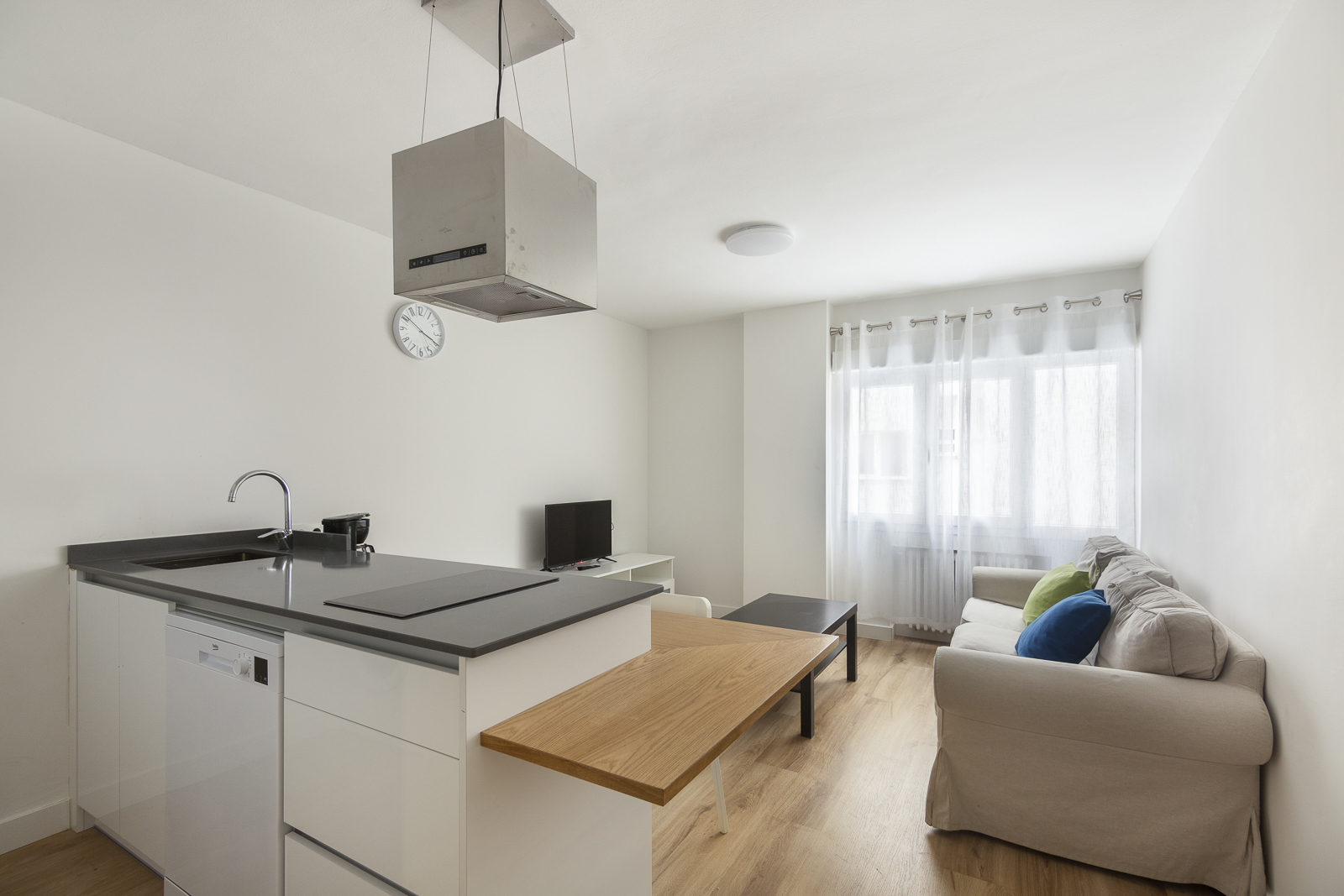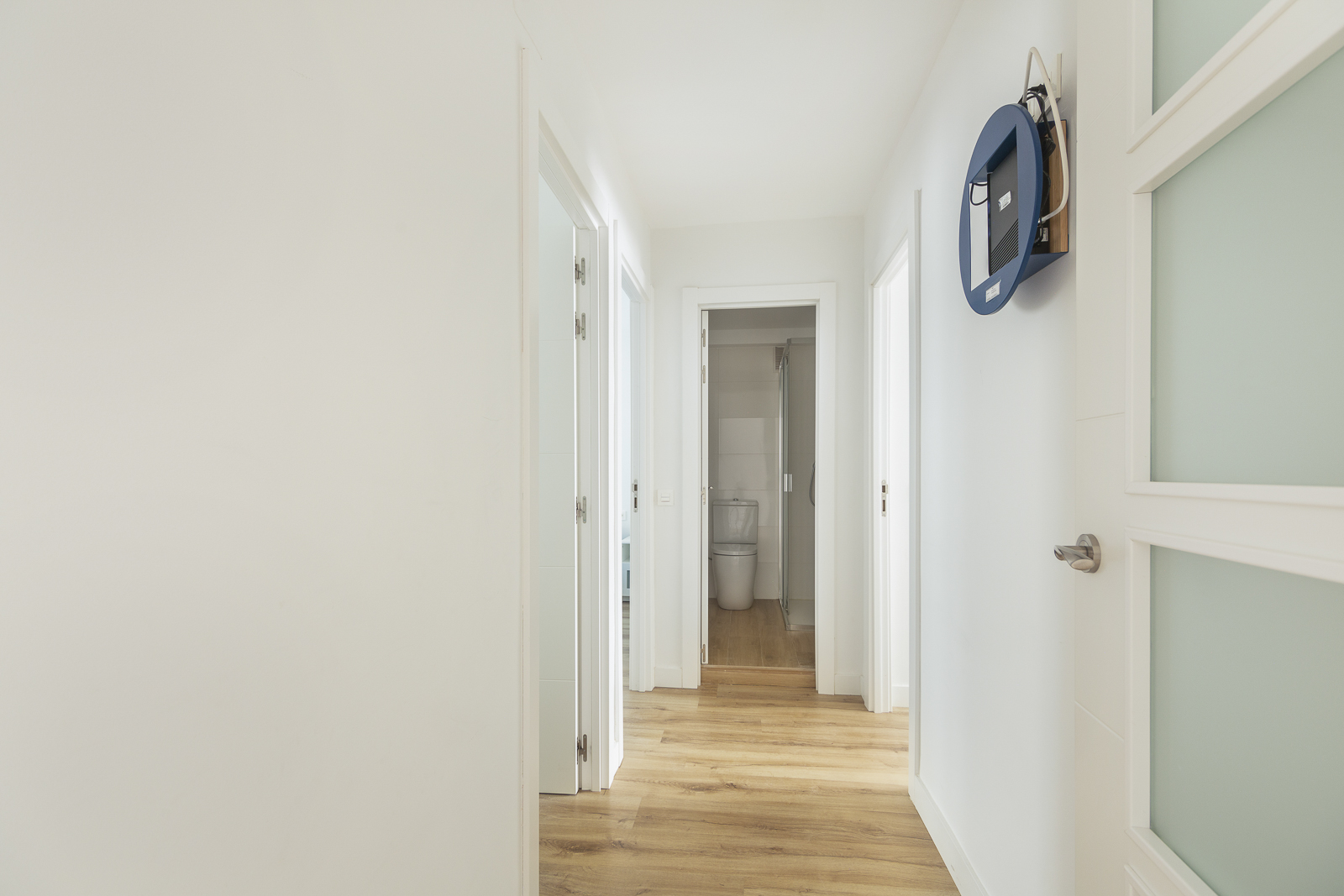 Piso completamente reformado. Salón-cocina moderna con isla central y cocina totalmente equipada. Una habitación con baño privado y otras dos con otro baño para compartir en el pasillo. Tarima flotante en todo el piso, puertas lacadas en blanco con llave en cada habitación para asegurar la intimidad de cada alojado, ventanas de pvc de doble acristalamiento con persiana en cada estancia. Piso totalmente acondicionado para la vida de estudiante.