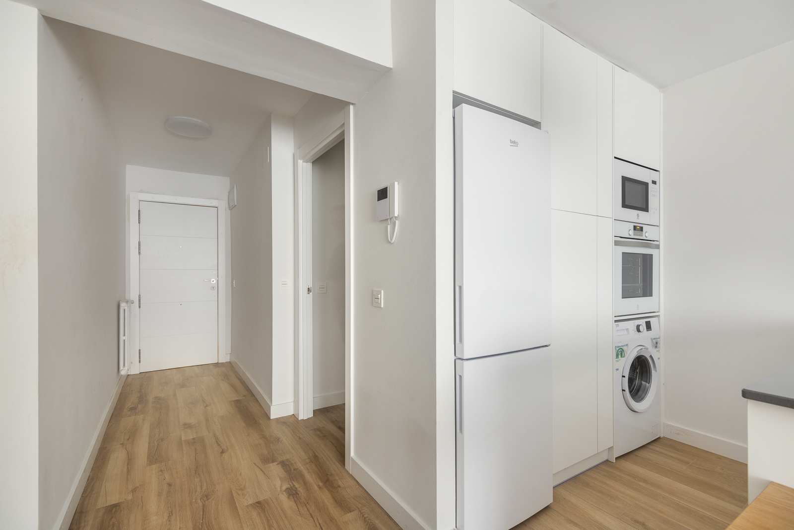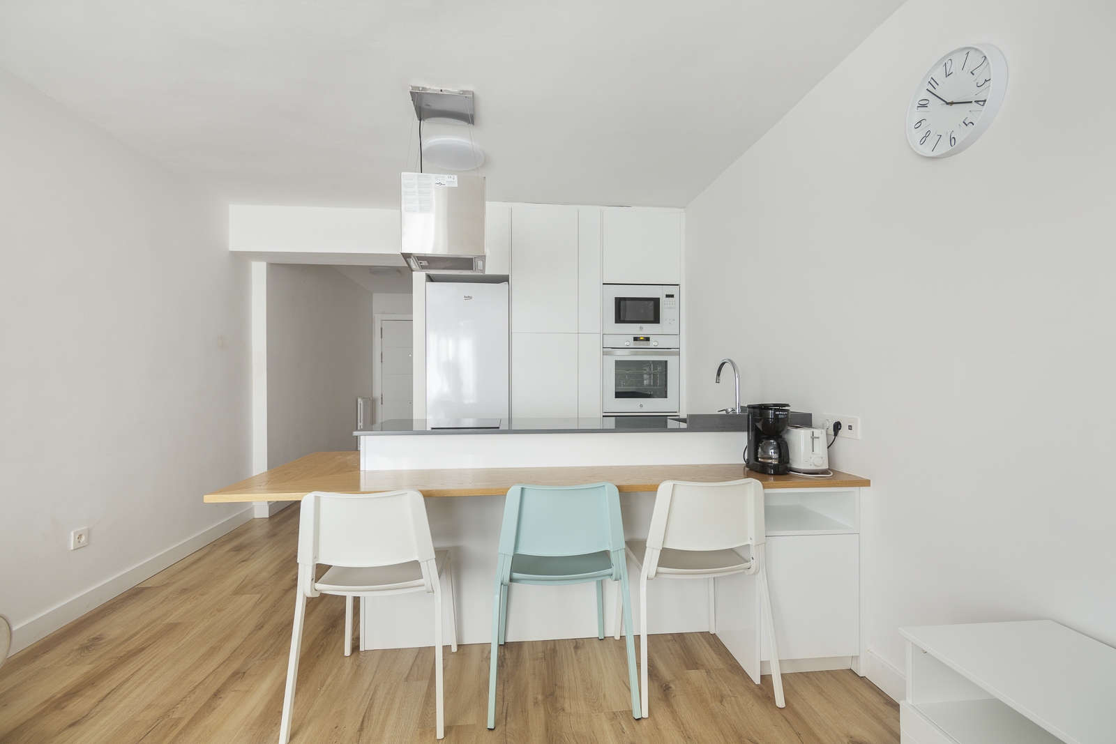 La cocina está equipada con un menaje básico del hogar, y cuenta con nevera, lavavajillas, lavadora, horno, microondas, campana extractora, vitrocerámica digital, cafetera y tostadora. En el salón, una smart tv de pantalla plana para los momentos de relax.