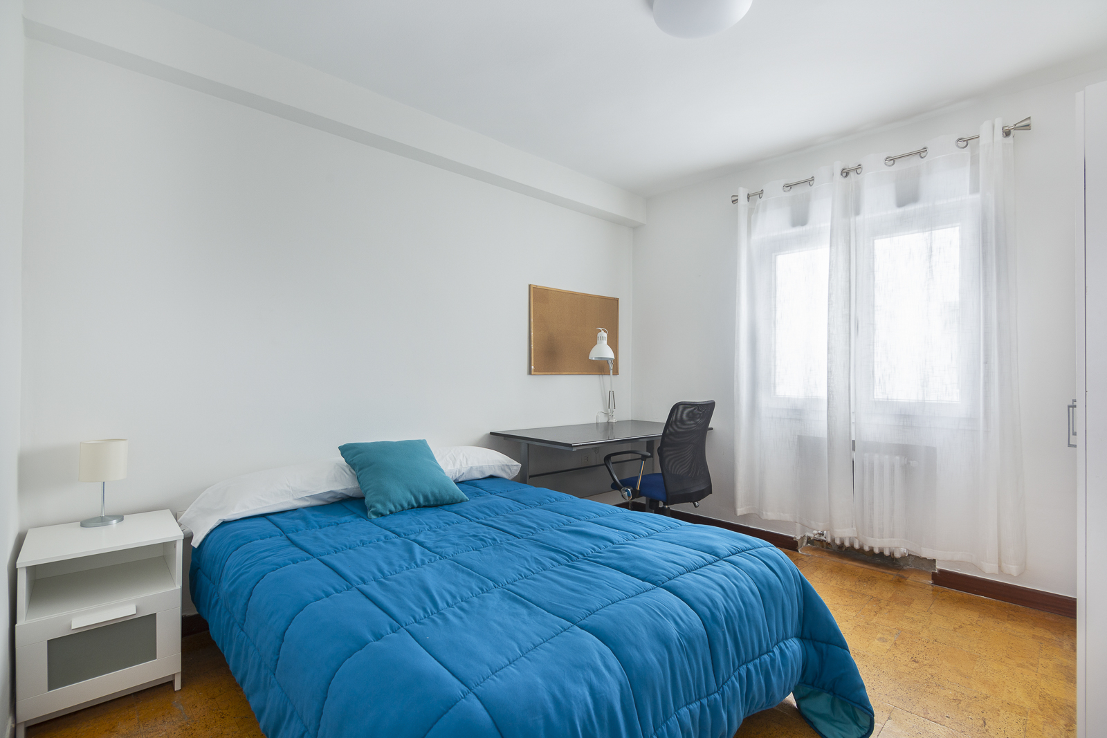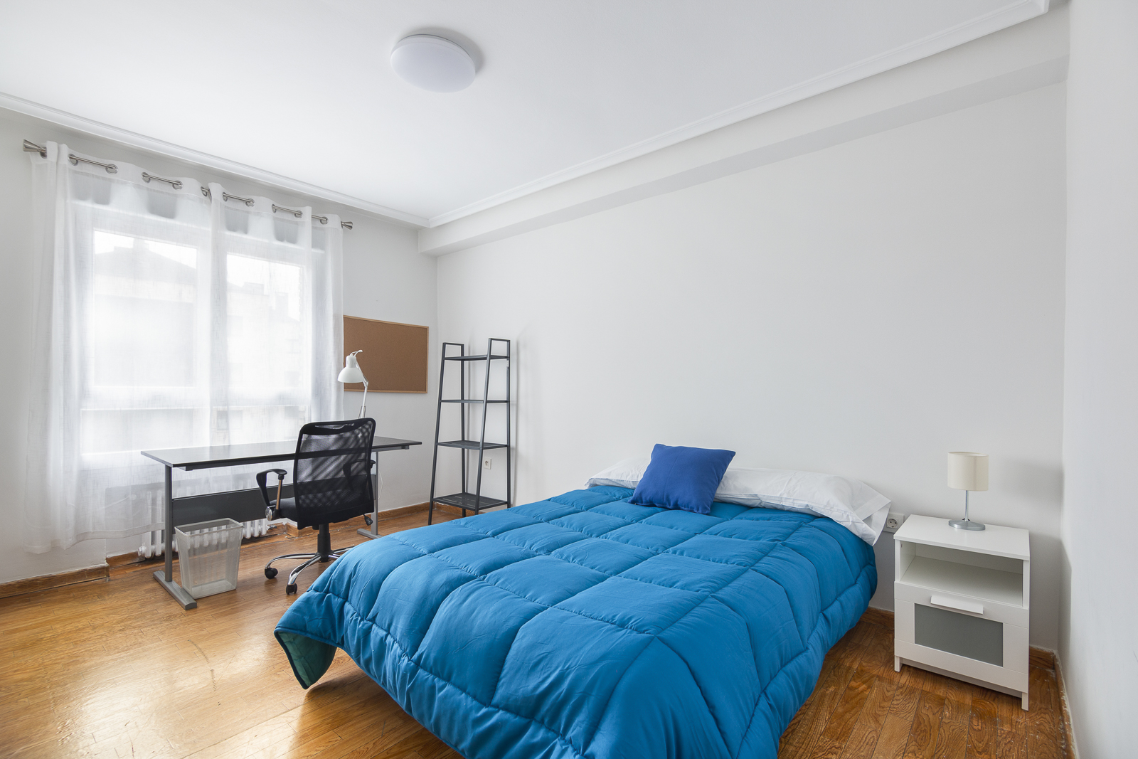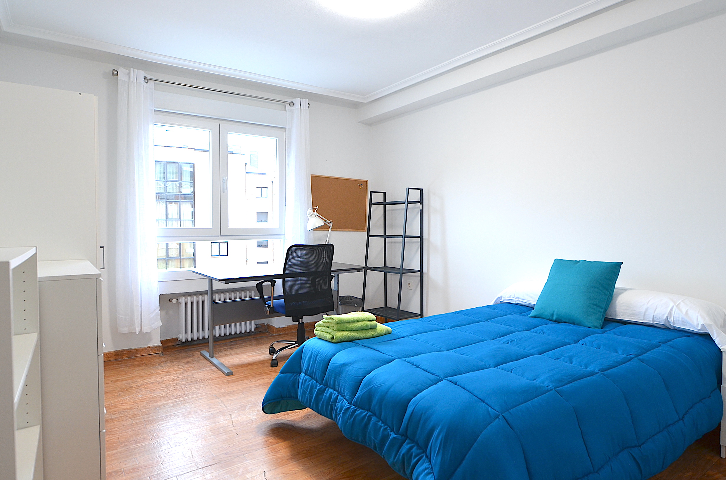 Las habitaciones disponen de mobiliario perfectamente adaptado al estudio: mesa grande de estudio, silla ergonómica, flexo con bombilla led de gran luminosidad, corcho para apuntes, estantería para almacenaje de libros, y también un armario de tres puertas, una cómoda, mesita, y papelera. Cada habitación cuenta con una cama doble de 1,35cm. También proporcionamos ropa de cama y un juego de toallas.