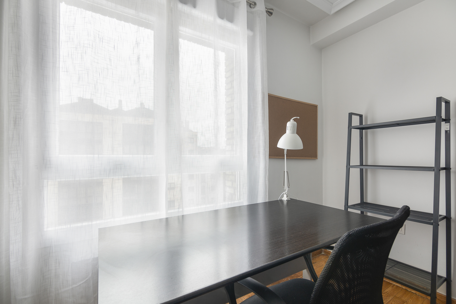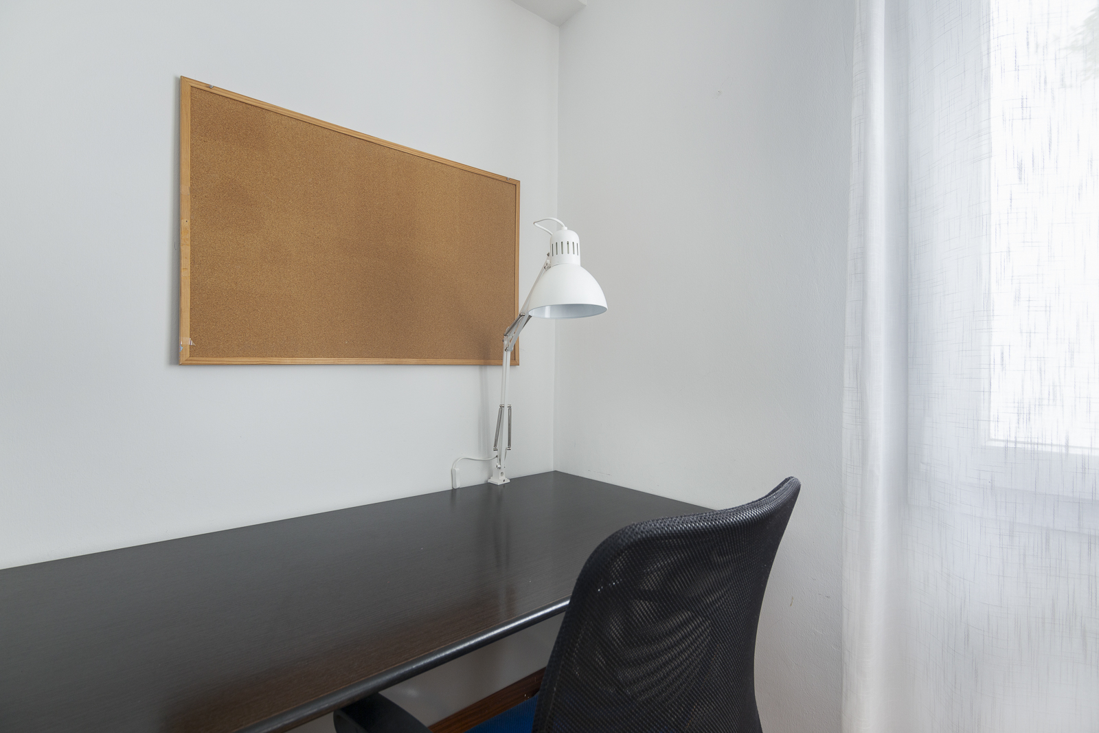 Las habitaciones disponen de mobiliario perfectamente adaptado al estudio: mesa grande de estudio, silla ergonómica, flexo con bombilla led de gran luminosidad, corcho para apuntes, estantería para almacenaje de libros, y también un armario de tres puertas, una cómoda, mesita, y papelera. Cada habitación cuenta con una cama doble de 1,35cm. También proporcionamos ropa de cama y un juego de toallas.
