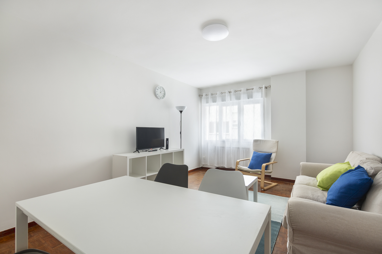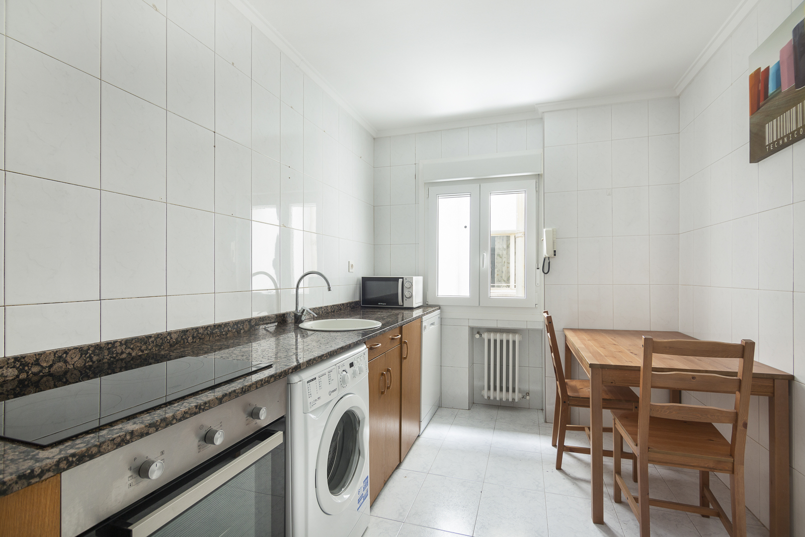 Piso completamente reformado. Salón-cocina moderna con isla central y cocina totalmente equipada. Una habitación con baño privado y otras dos con otro baño para compartir en el pasillo. Tarima flotante en todo el piso, puertas lacadas en blanco con llave en cada habitación para asegurar la intimidad de cada alojado, ventanas de pvc de doble acristalamiento con persiana en cada estancia. Piso totalmente acondicionado para la vida de estudiante.